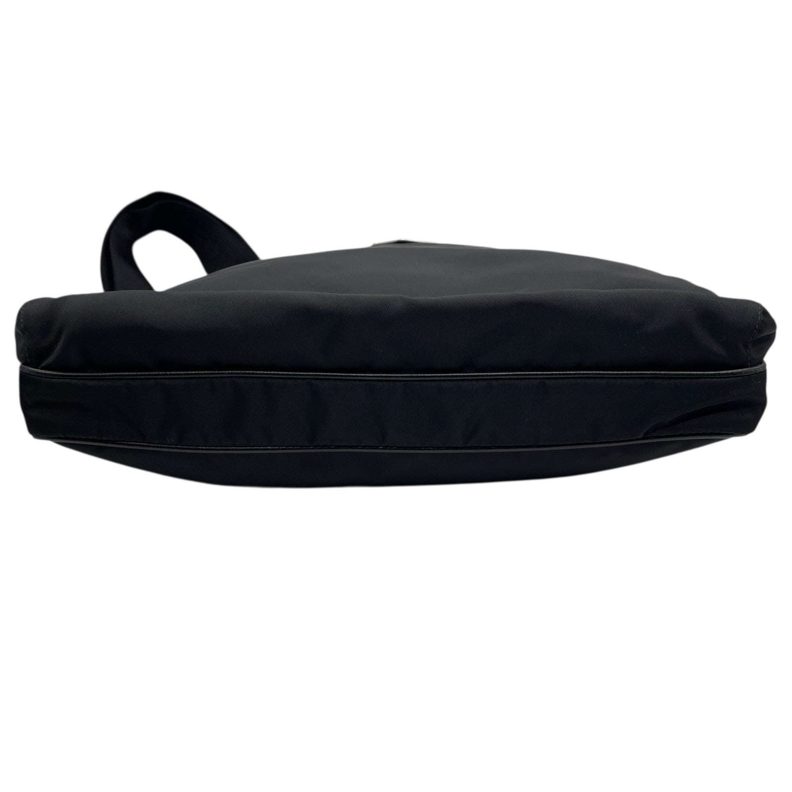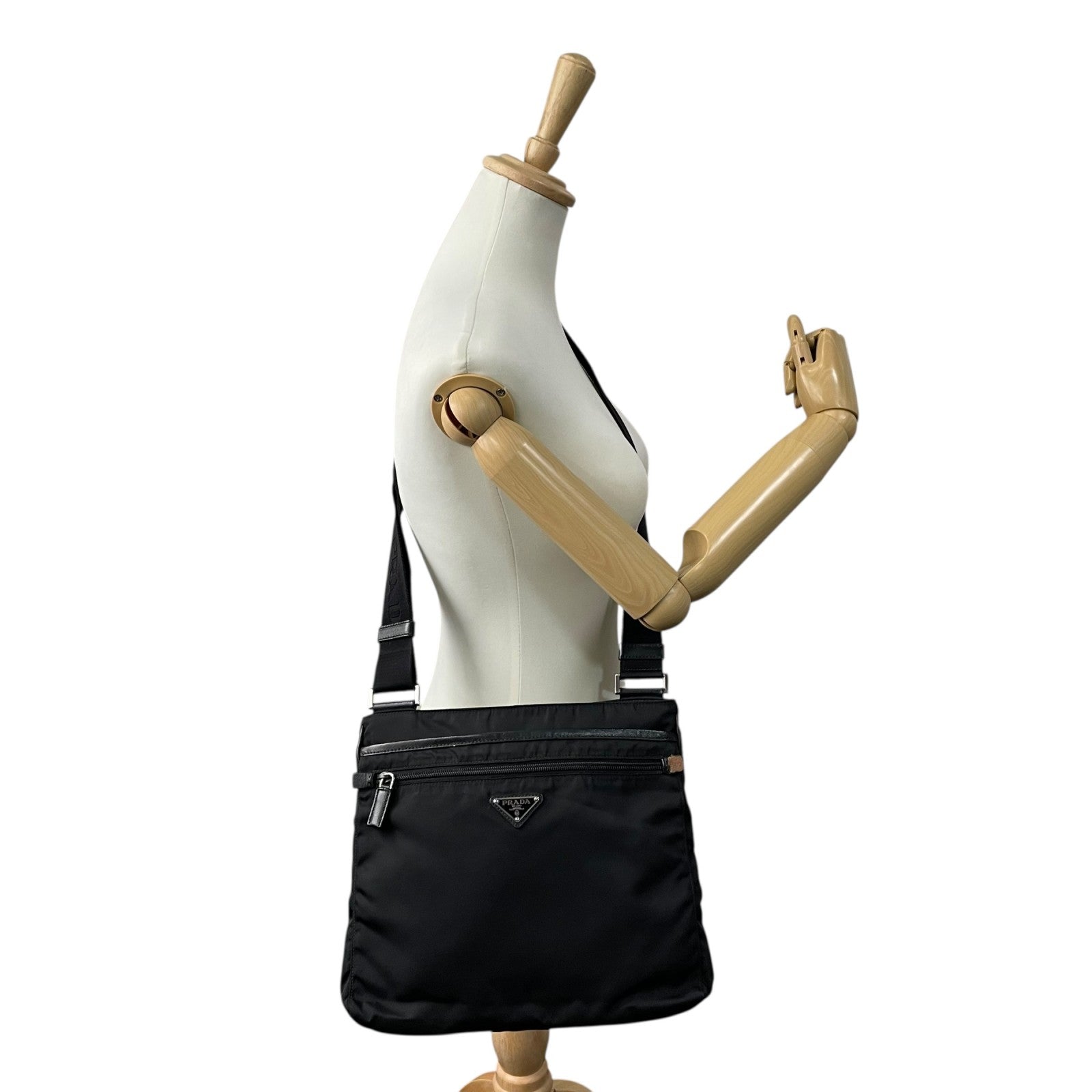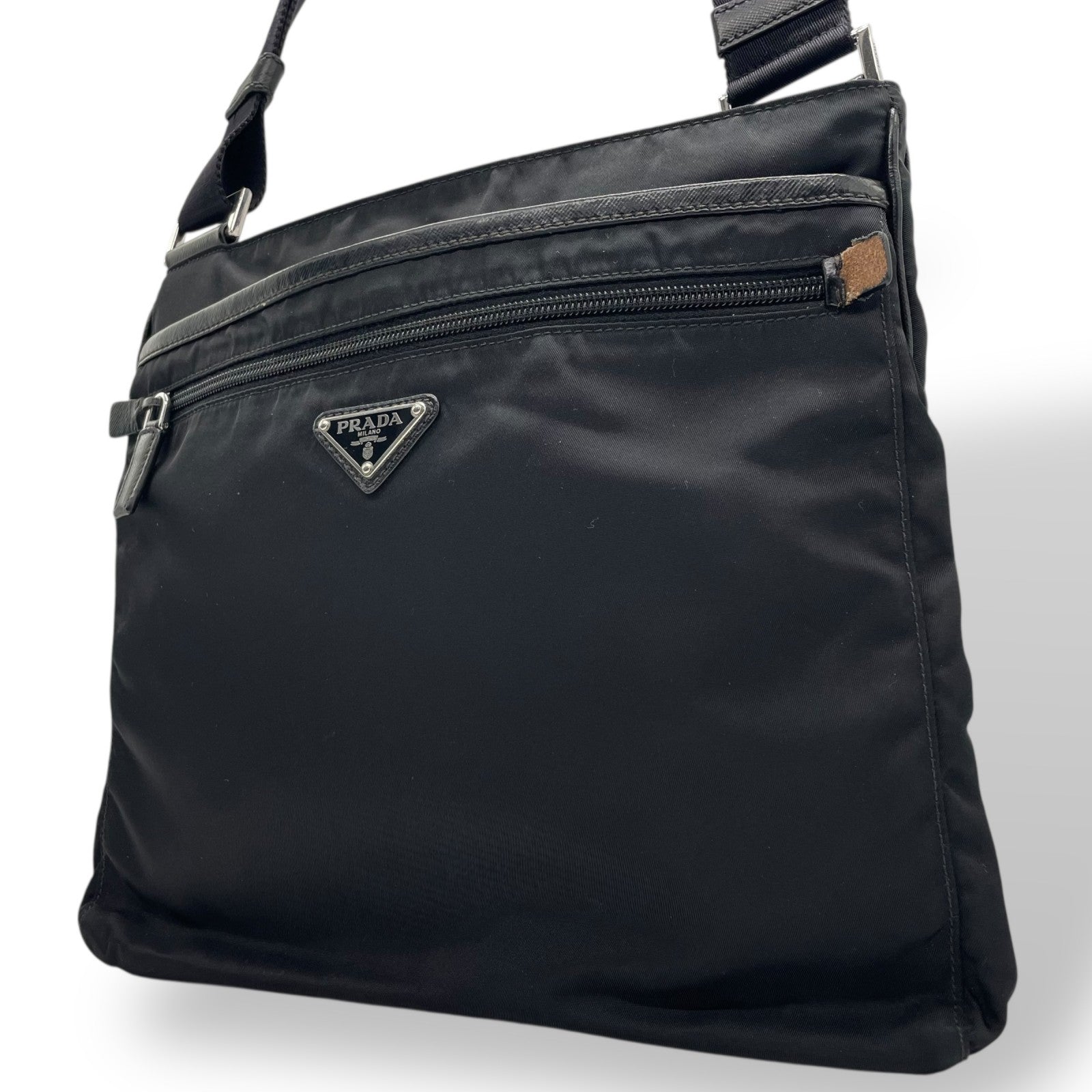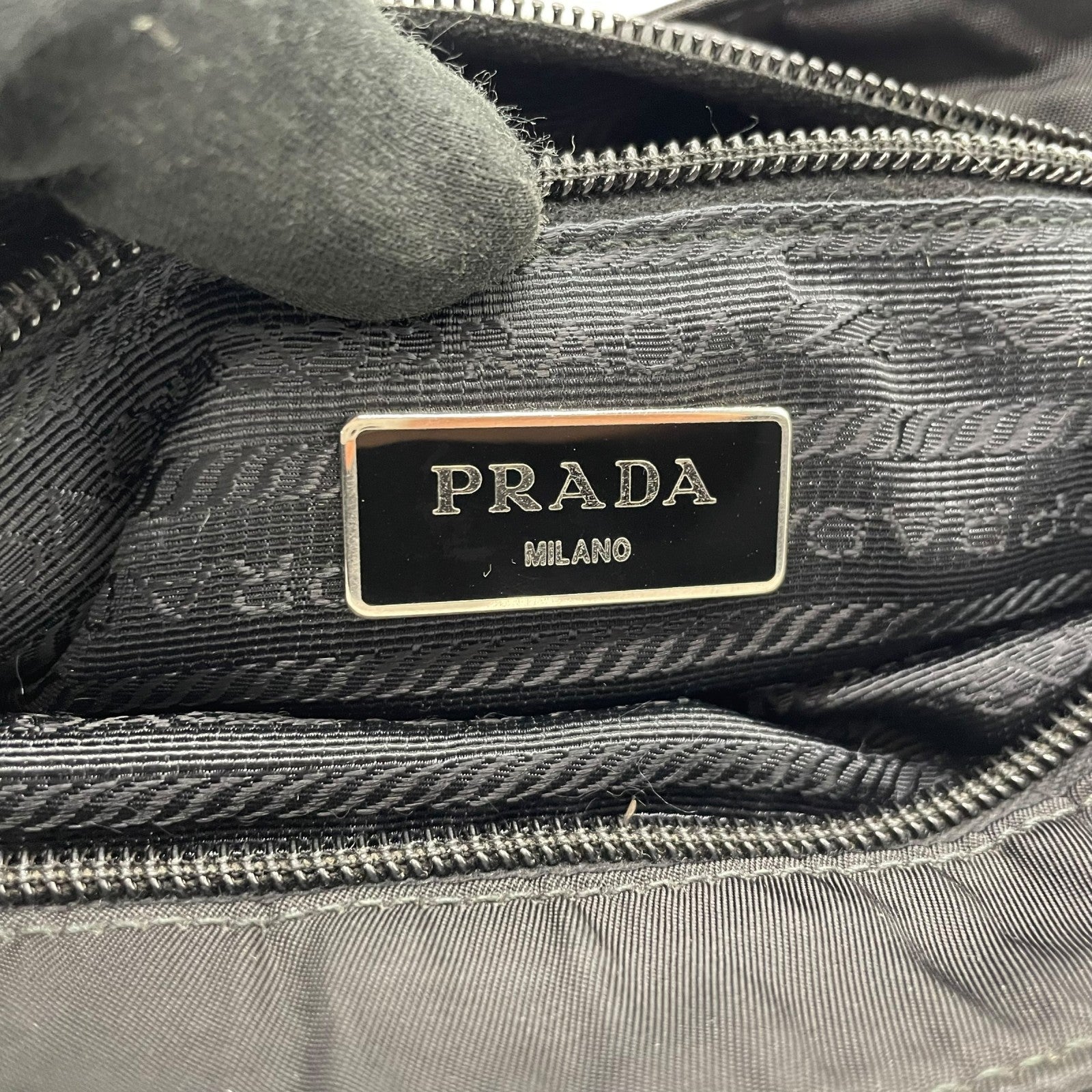 Authentic PRADA Black Shoulder Bag Triangular Logo Plate Nylon Leather Silver Hardware Adjustable Strap Men's Women's
