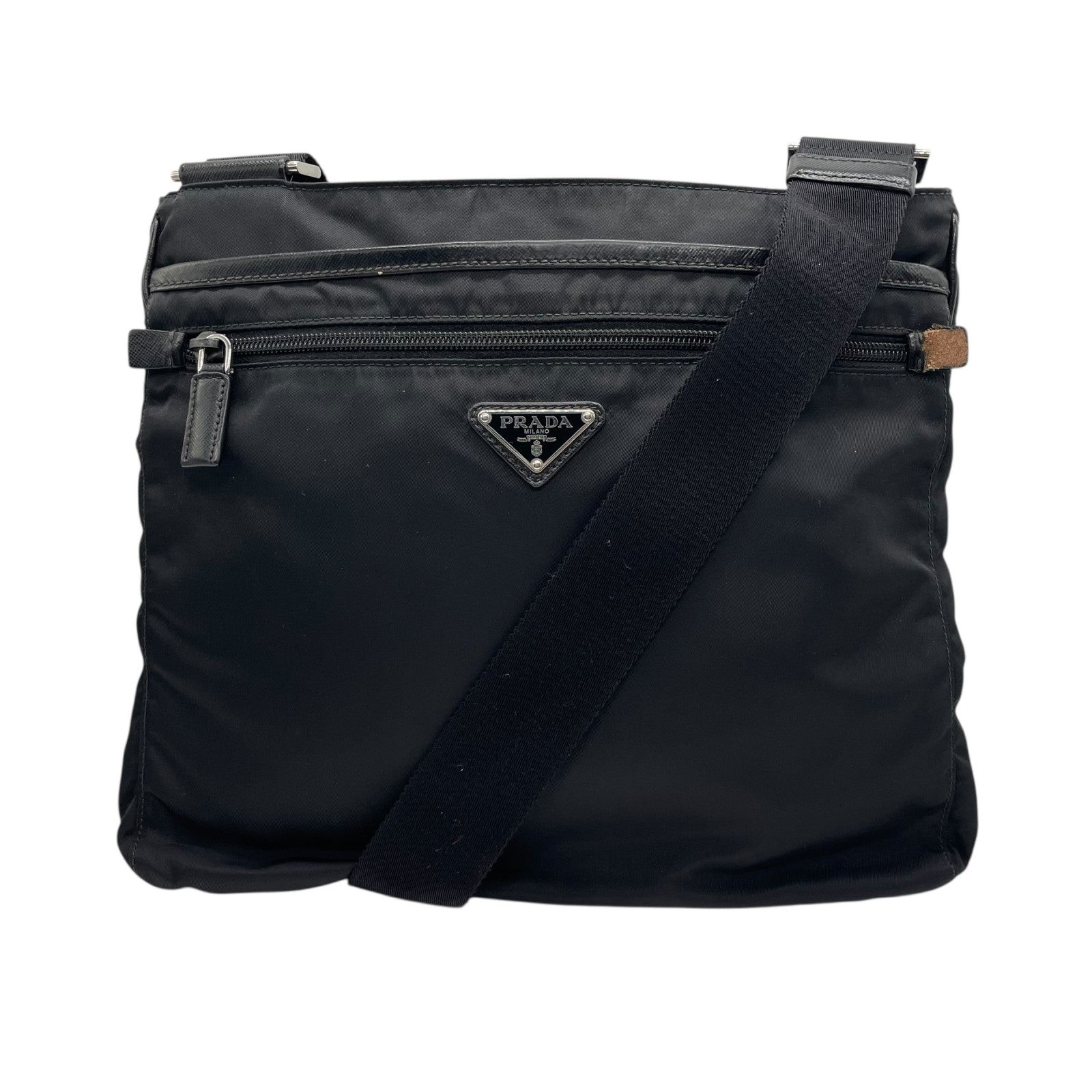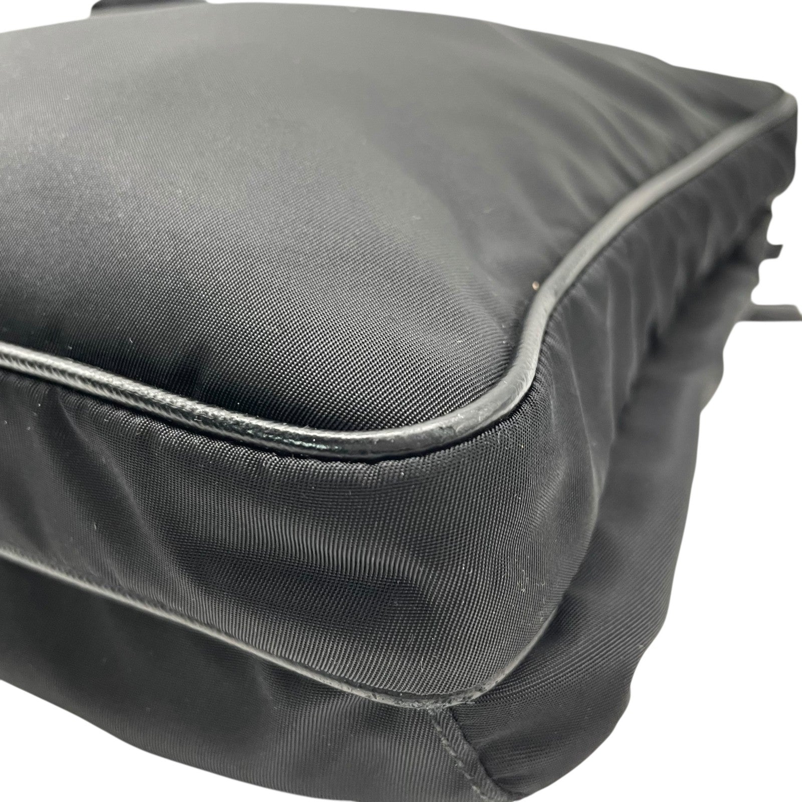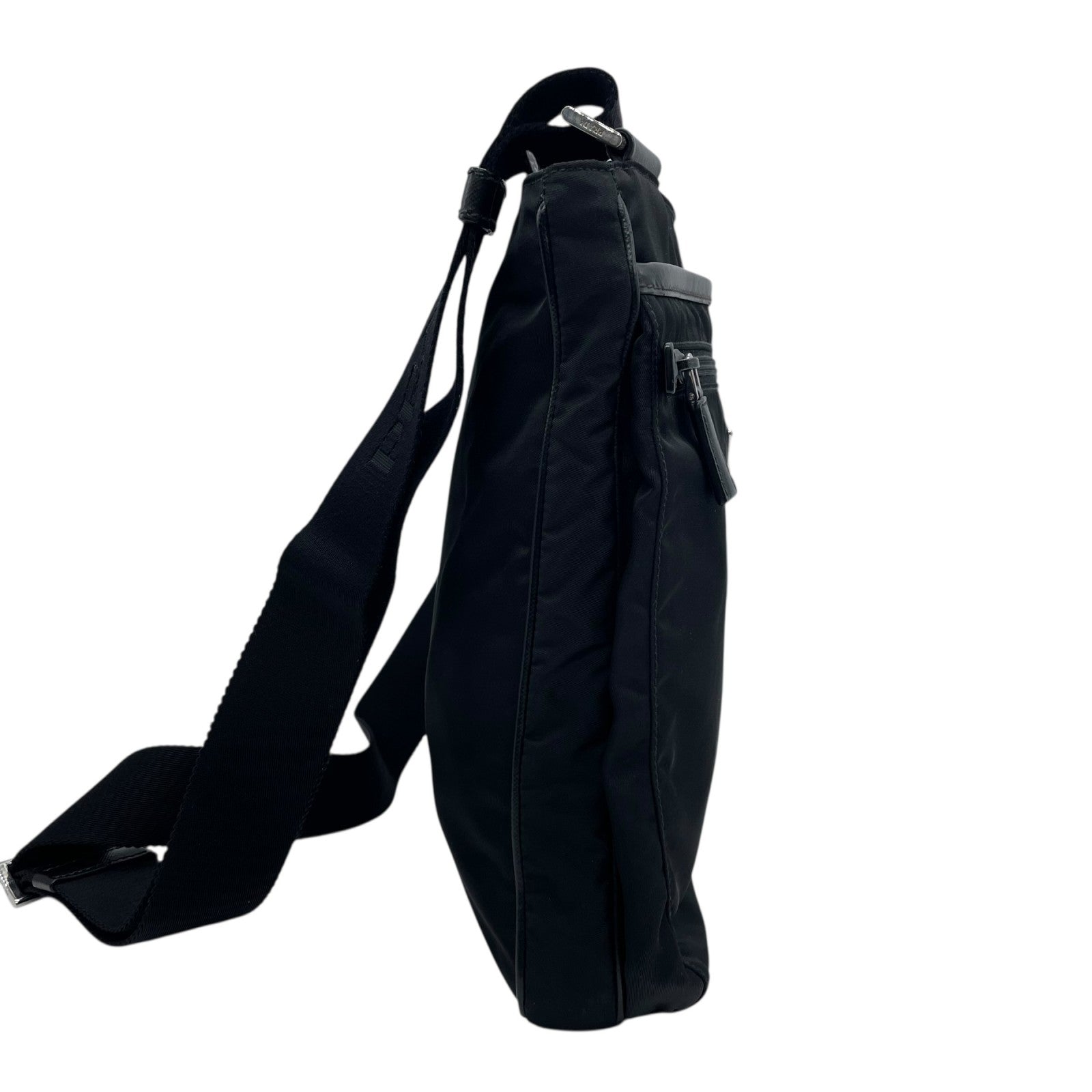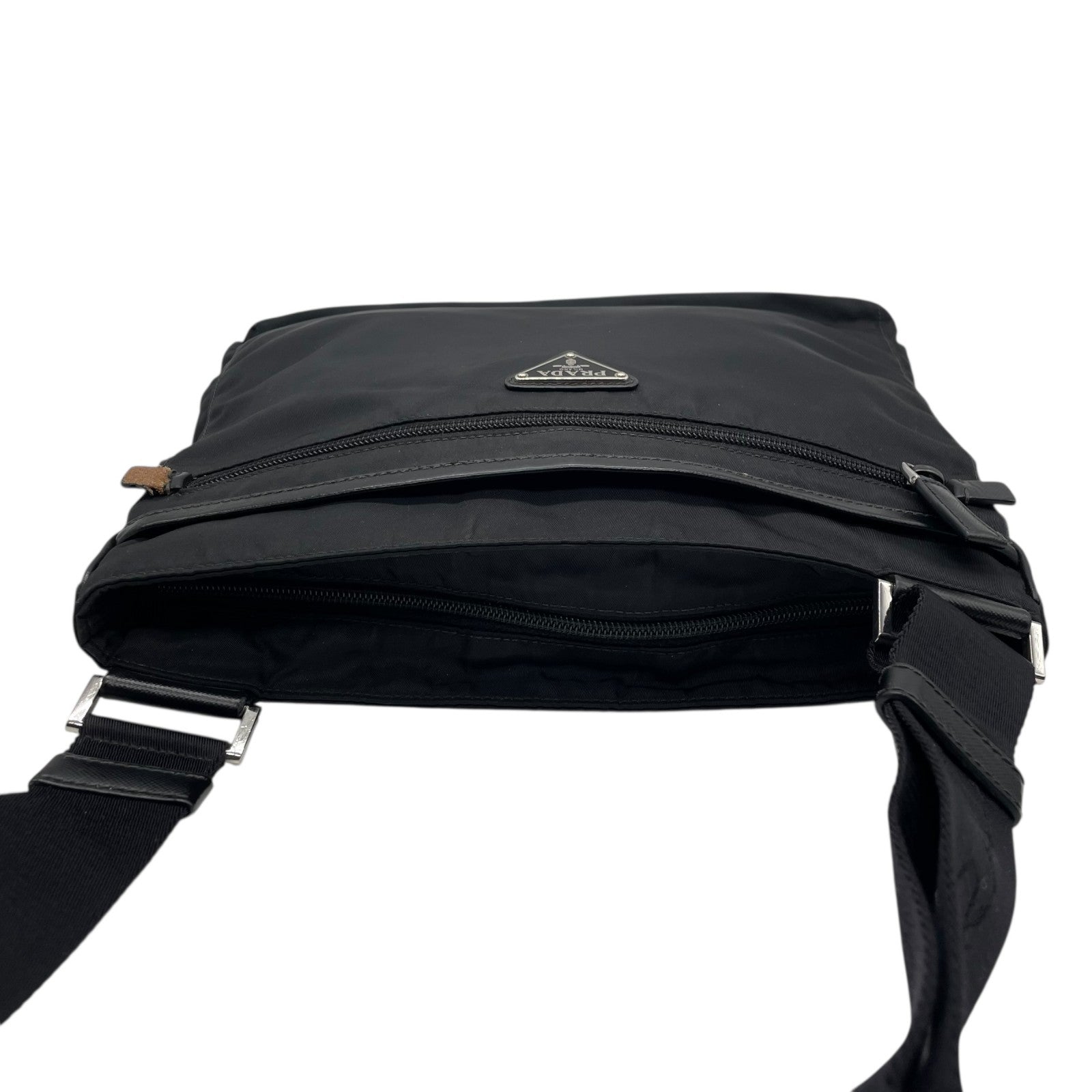 Authentic PRADA Black Shoulder Bag Triangular Logo Plate Nylon Leather Silver Hardware Adjustable Strap Men's Women's