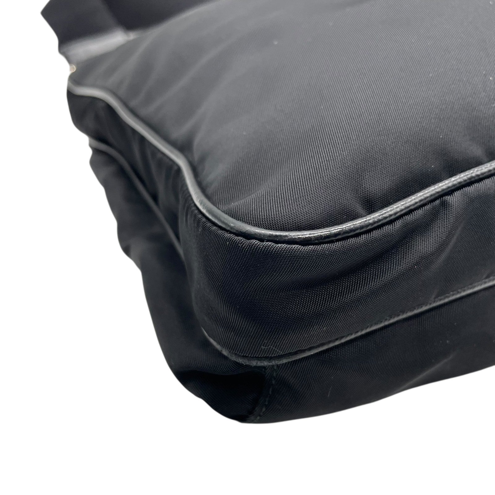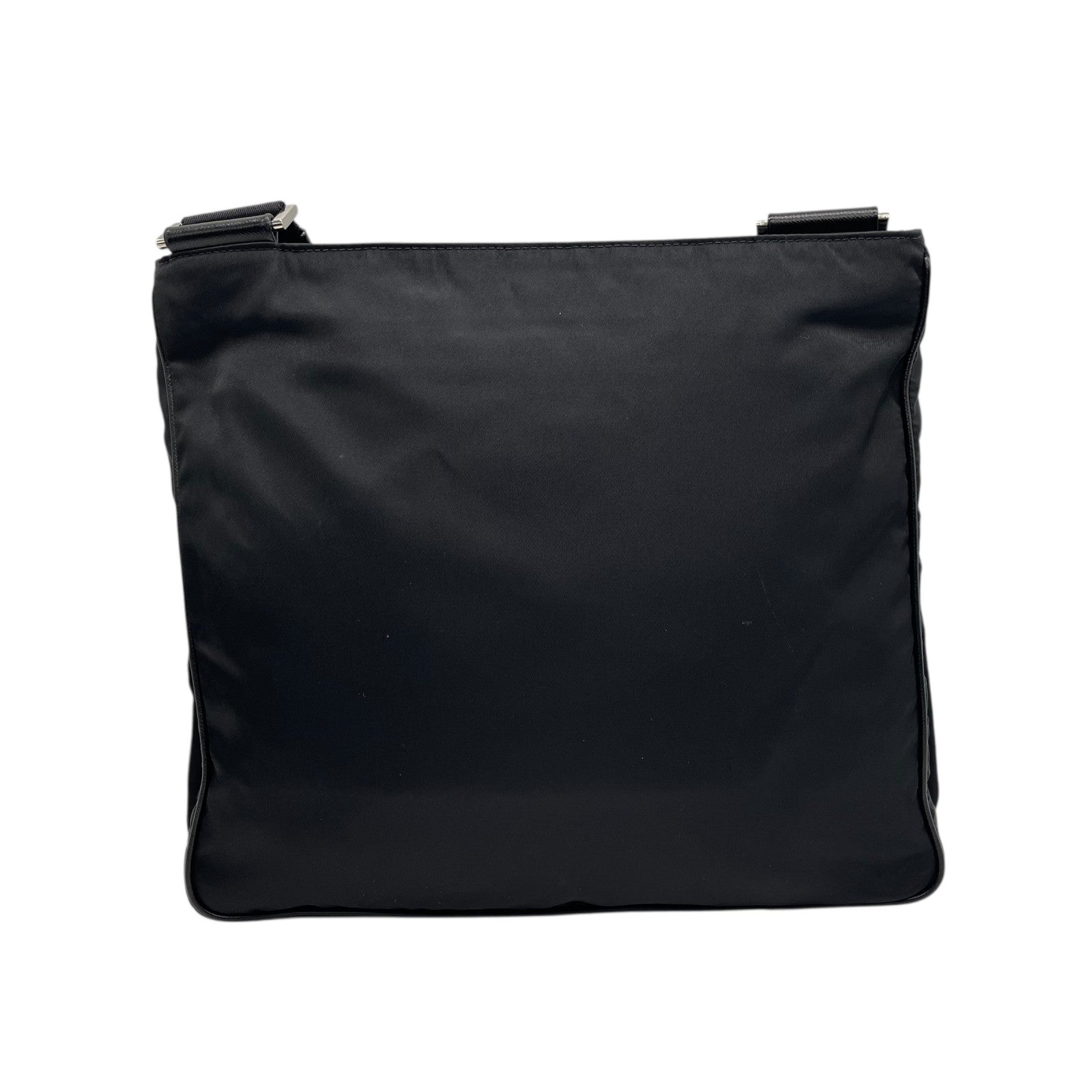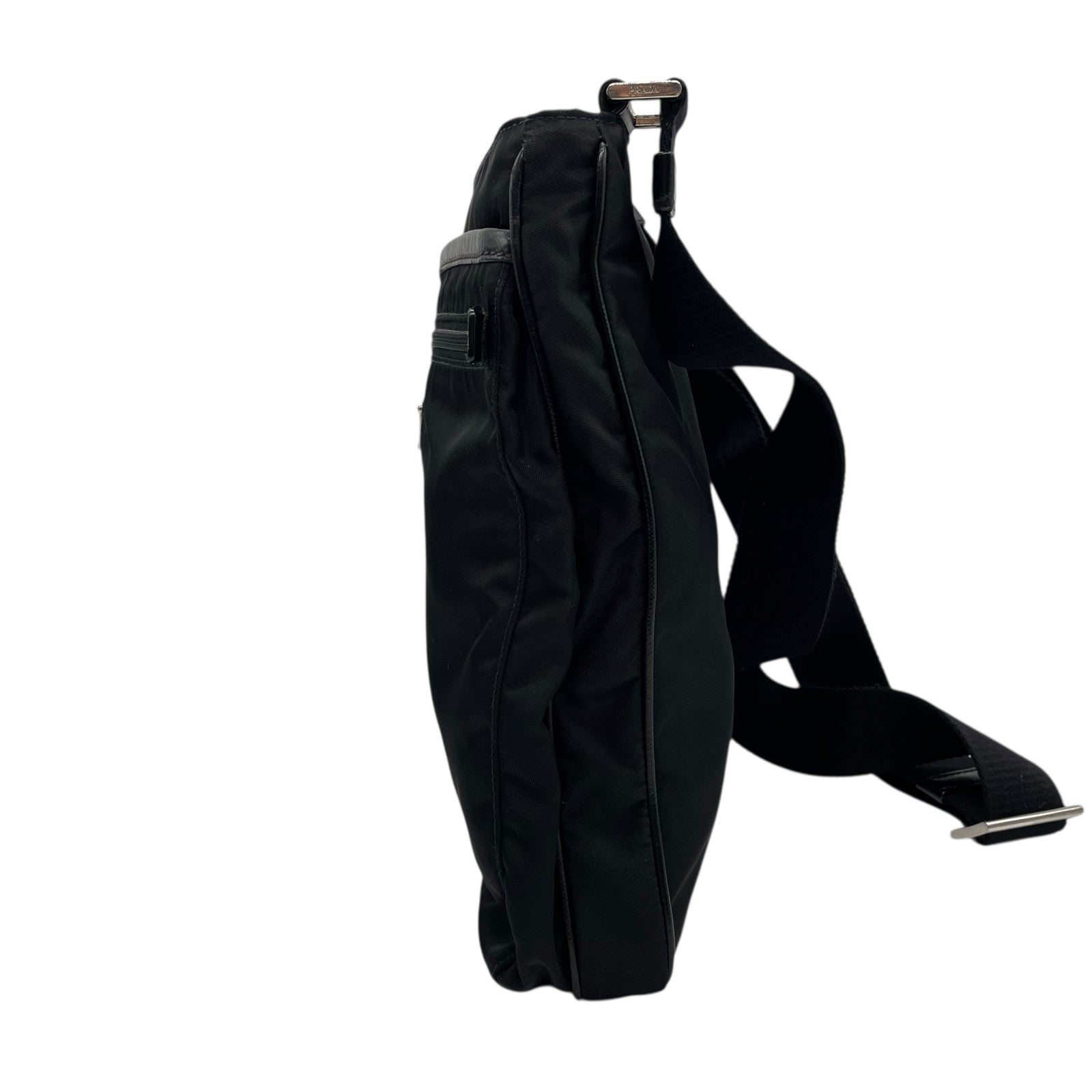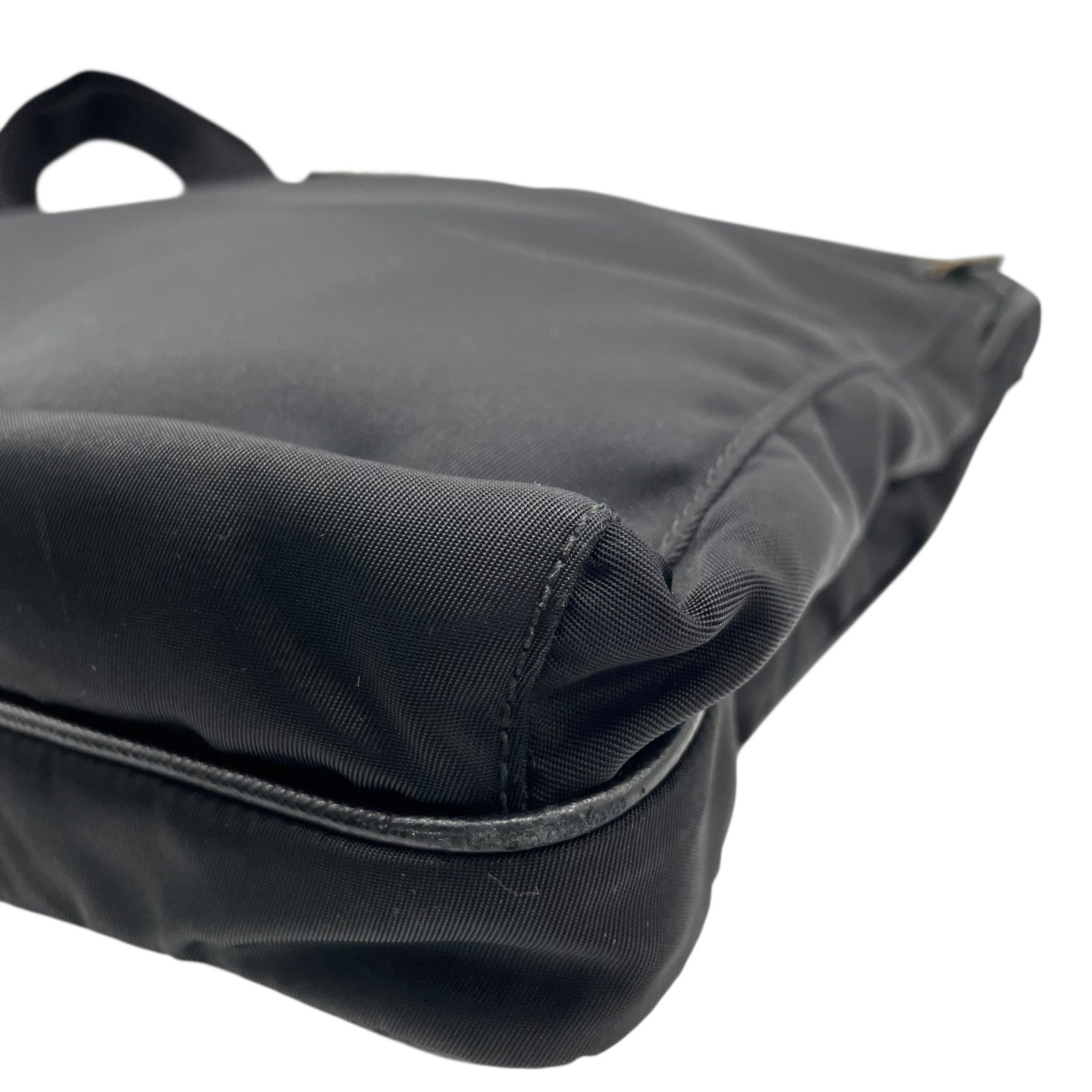 Authentic PRADA Black Shoulder Bag Triangular Logo Plate Nylon Leather Silver Hardware Adjustable Strap Men's Women's