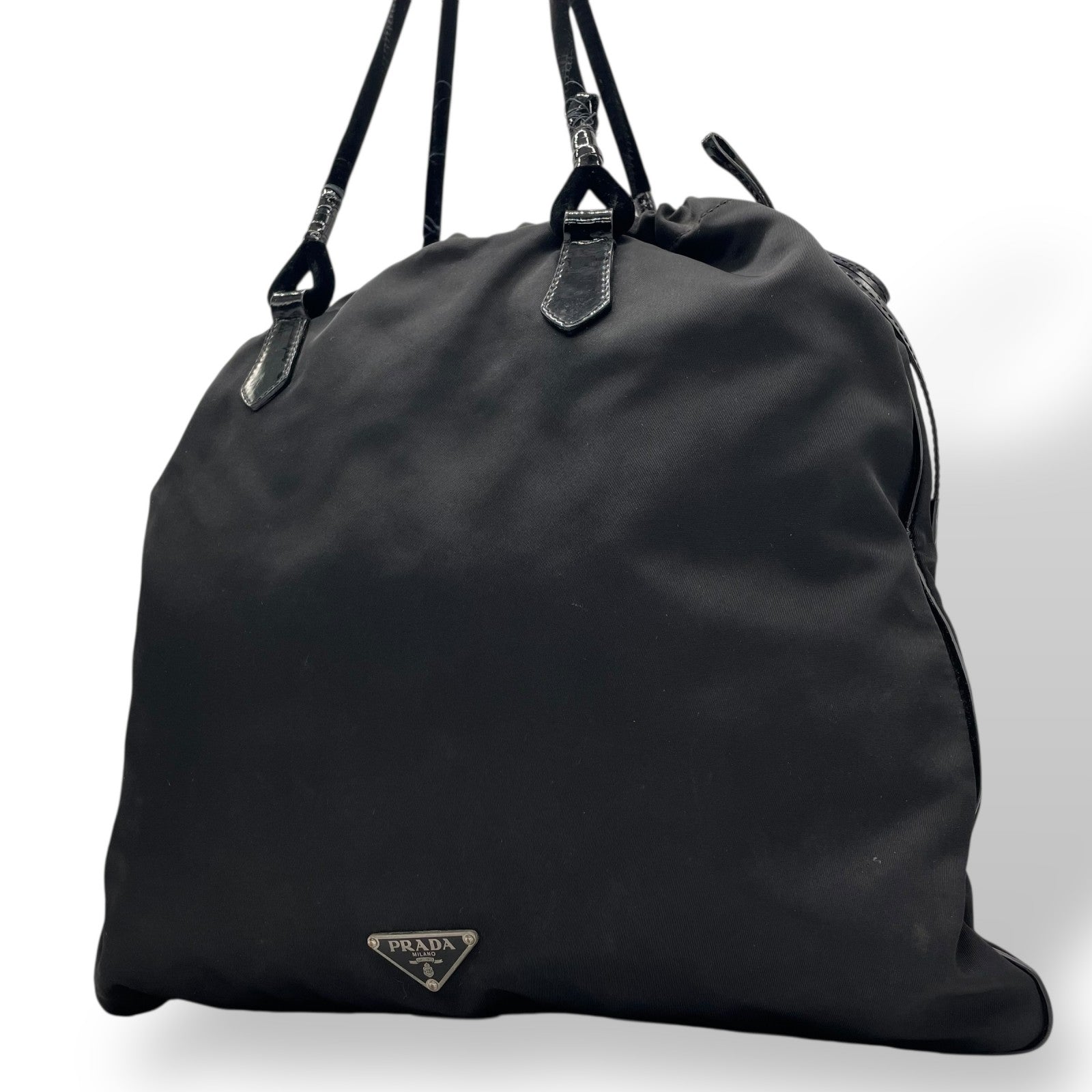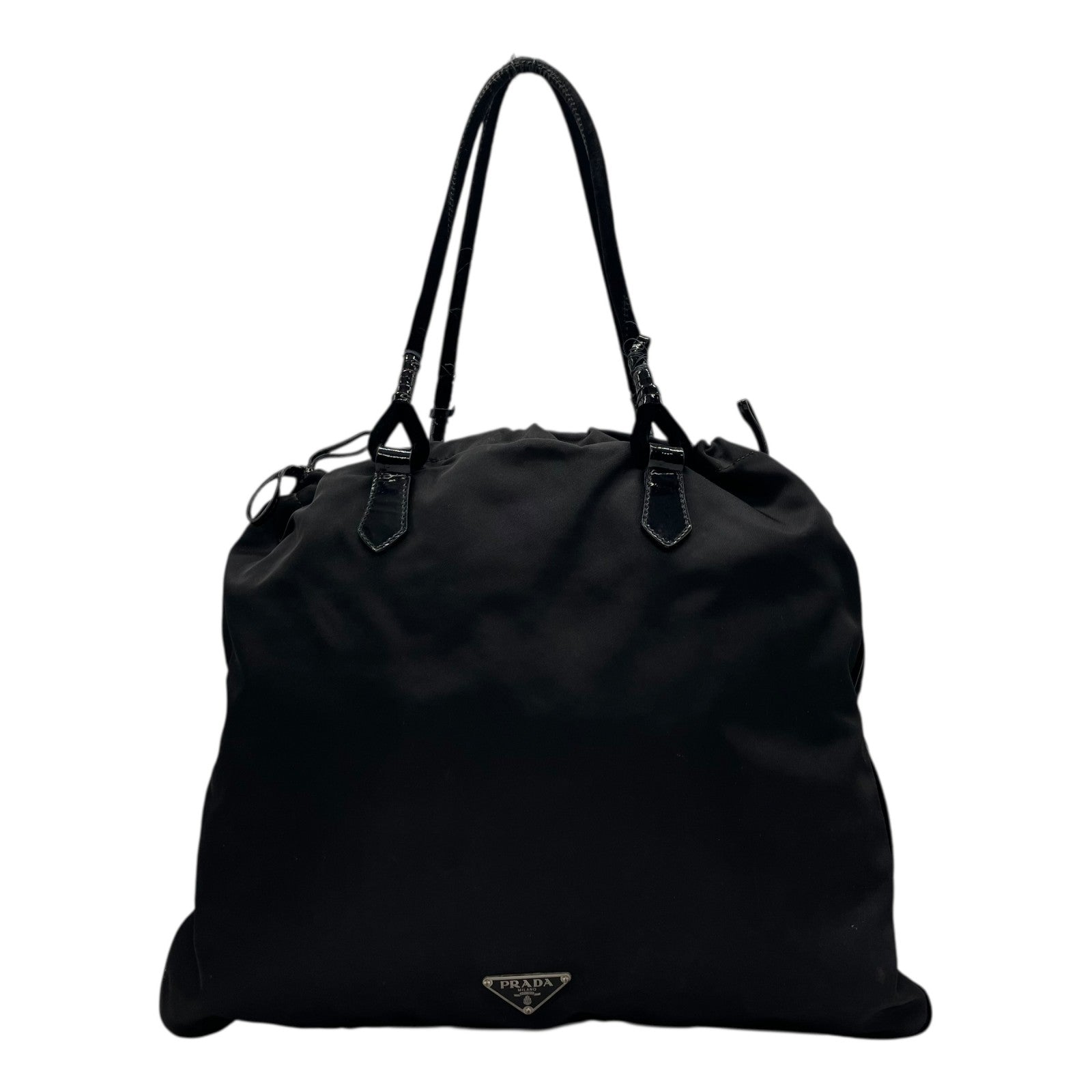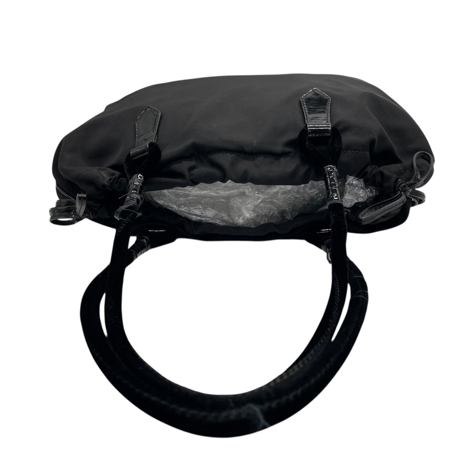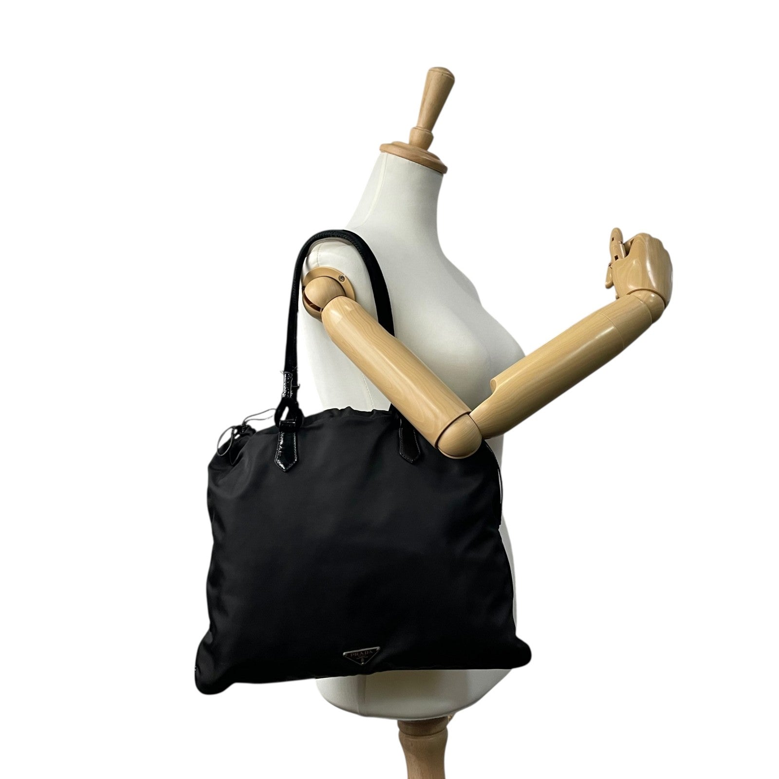Authentic PRADA Black Handbag Tote Triangular Logo Plate Nylon Patent Leather Silver Hardware Shoulder Bag Men's Women's