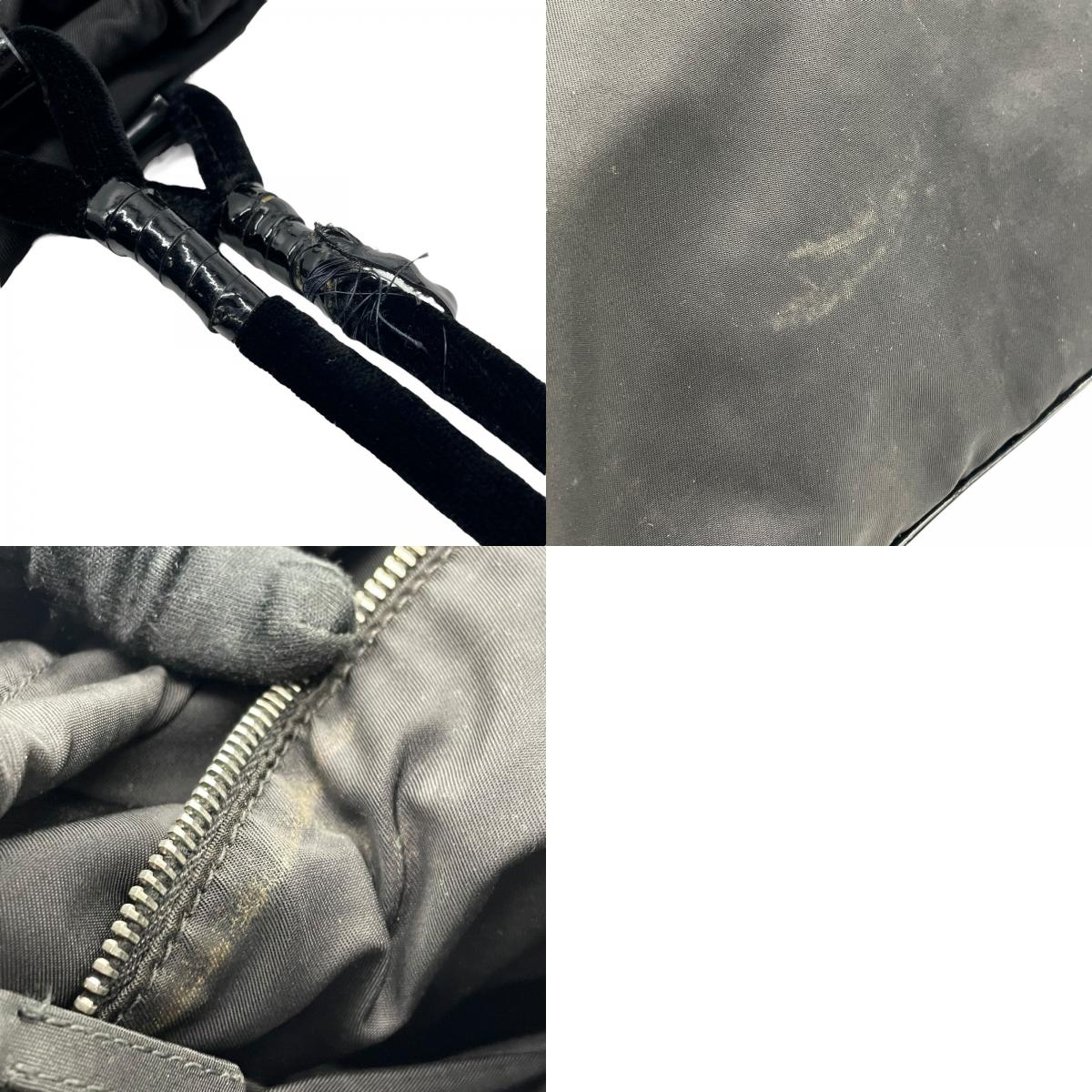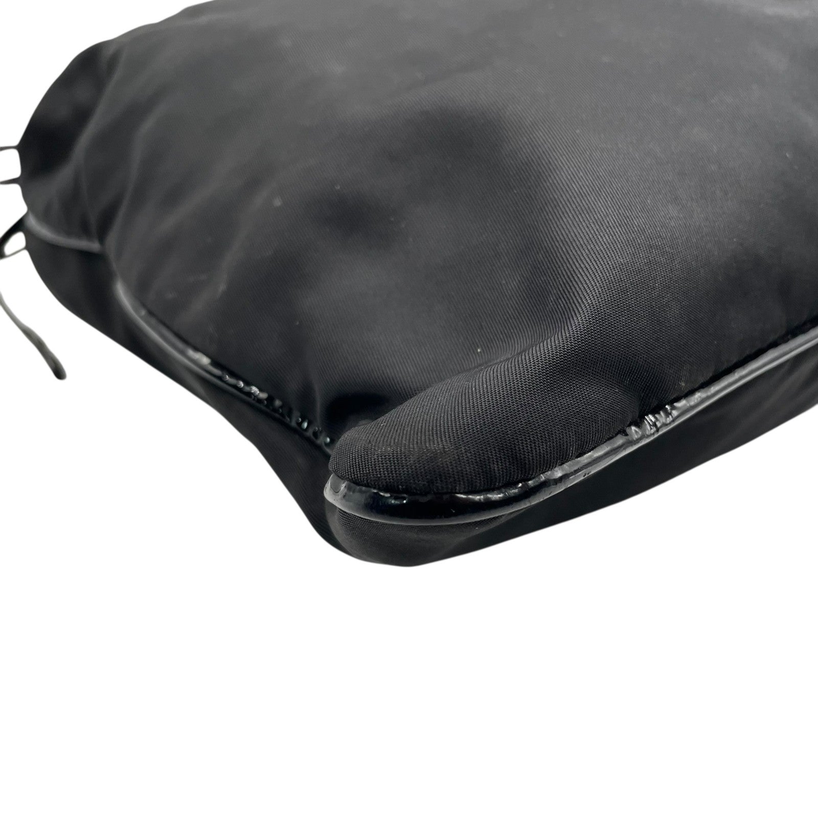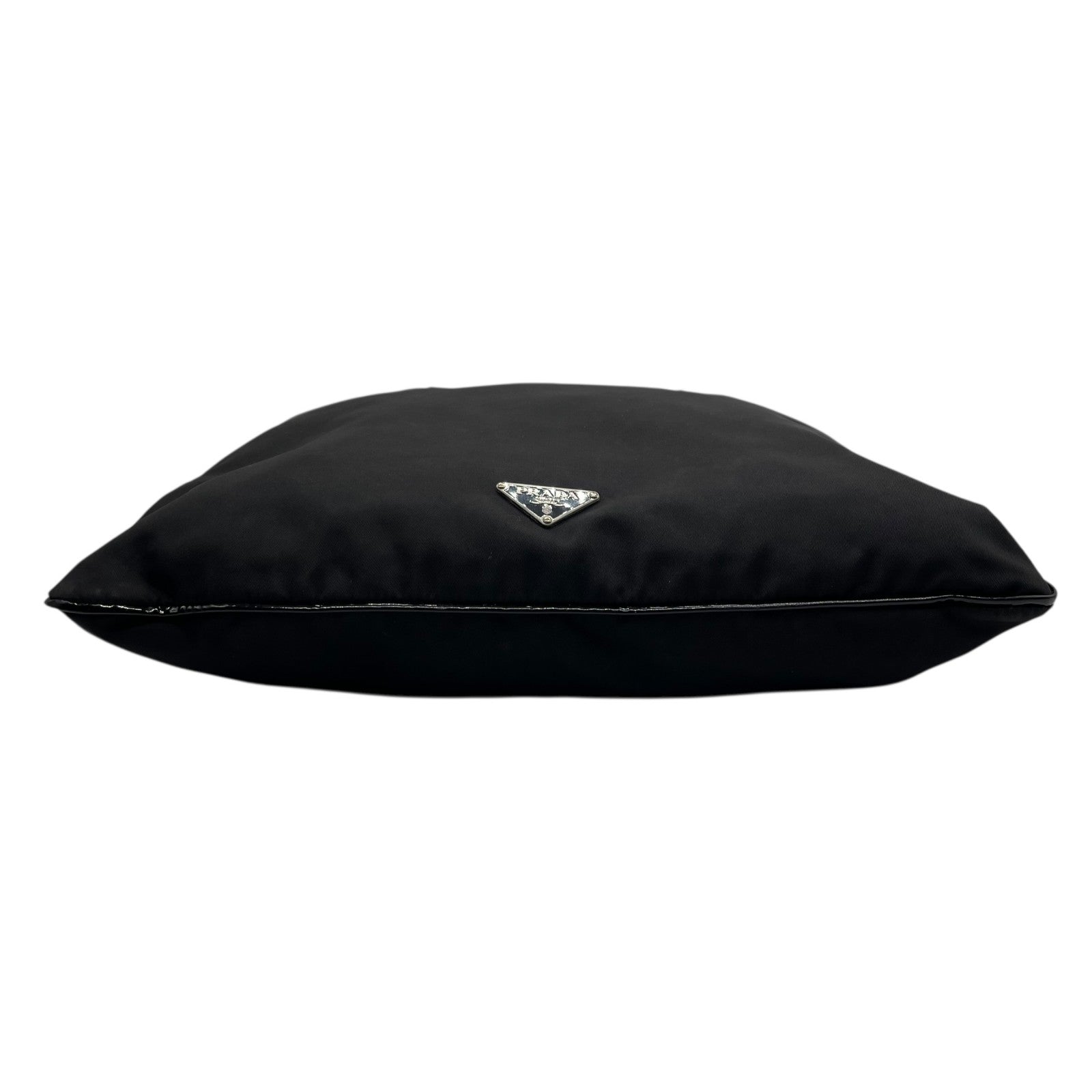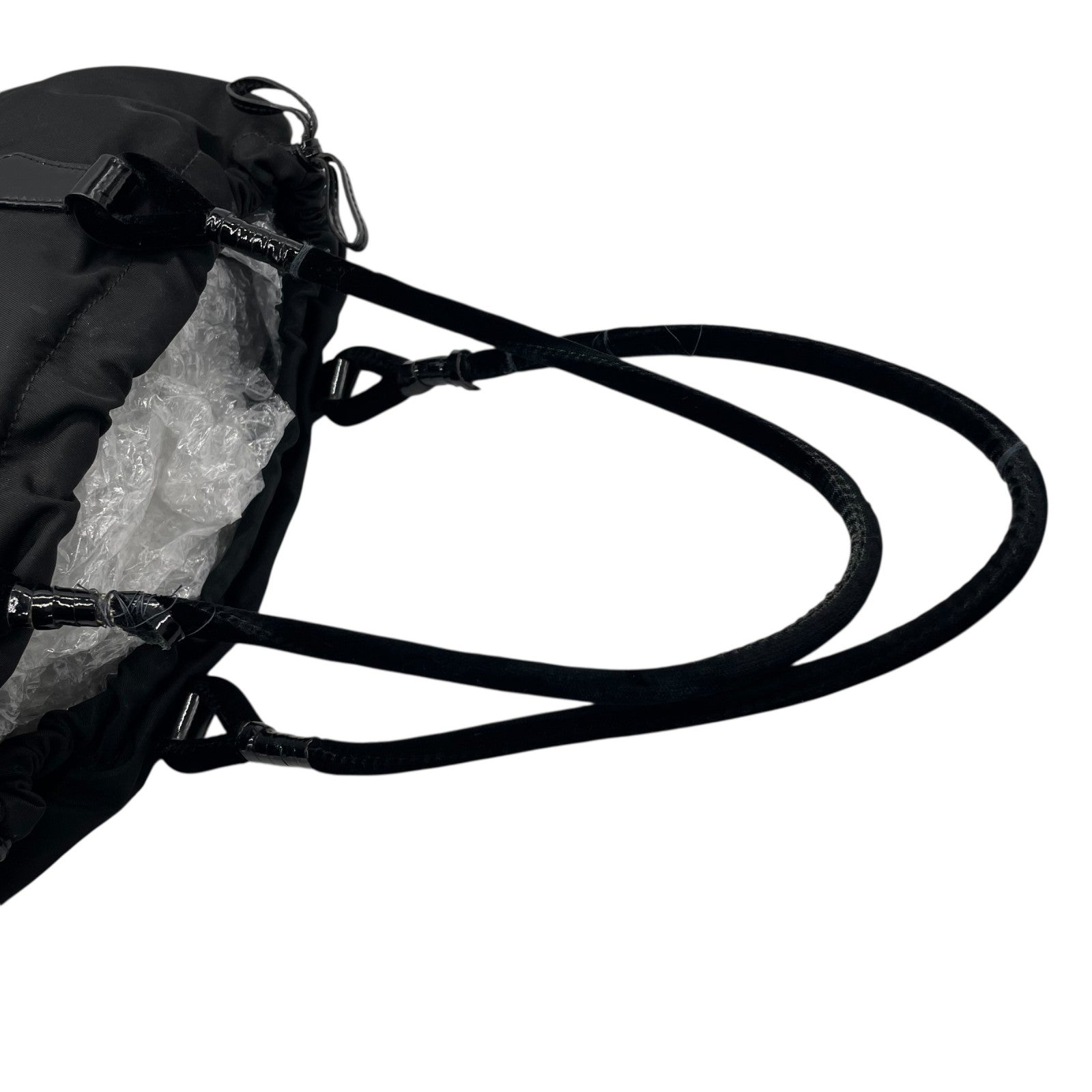Authentic PRADA Black Handbag Tote Triangular Logo Plate Nylon Patent Leather Silver Hardware Shoulder Bag Men's Women's