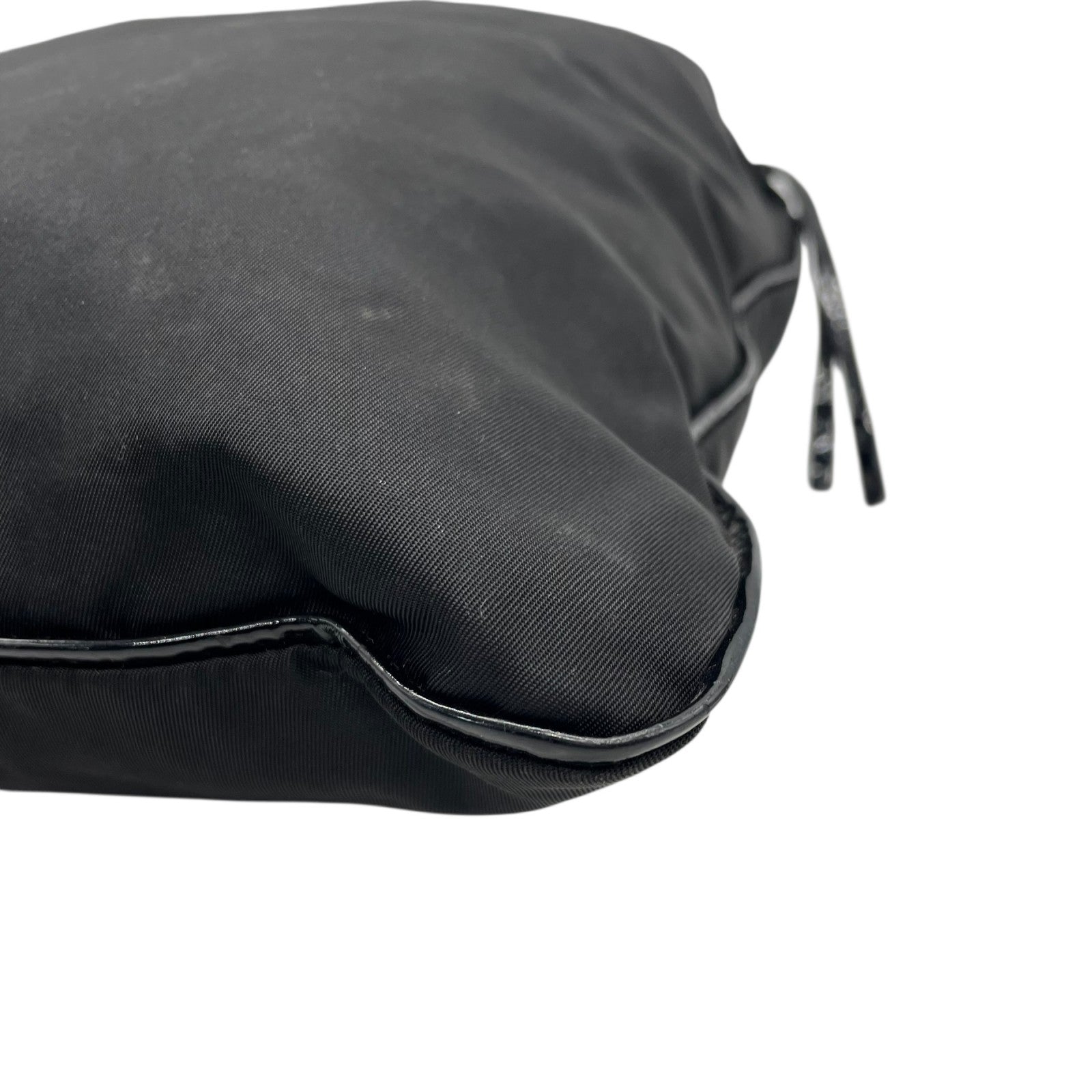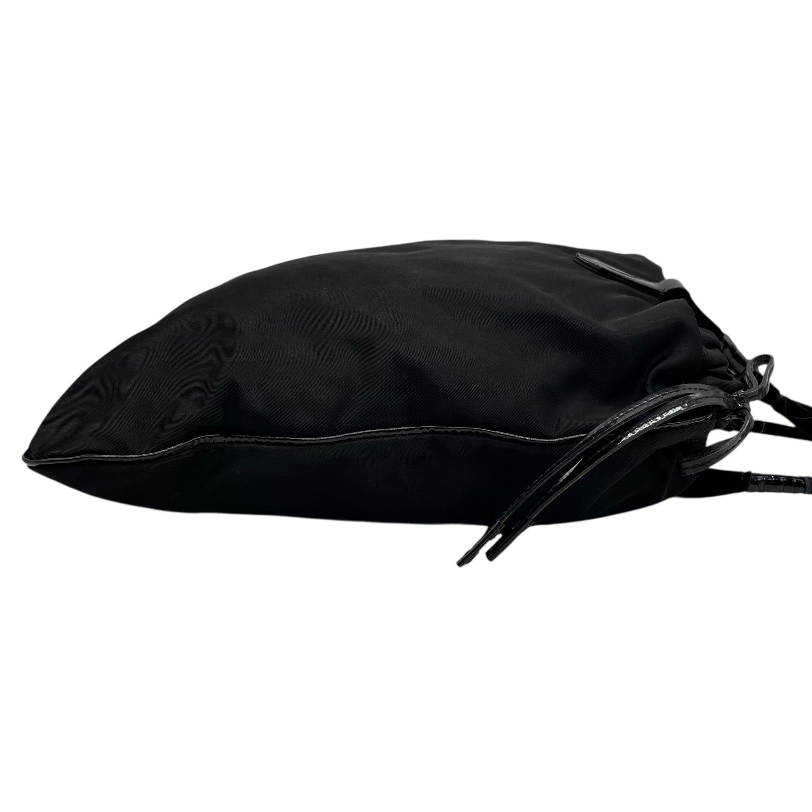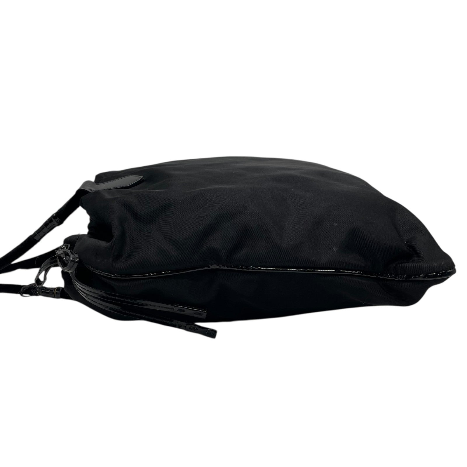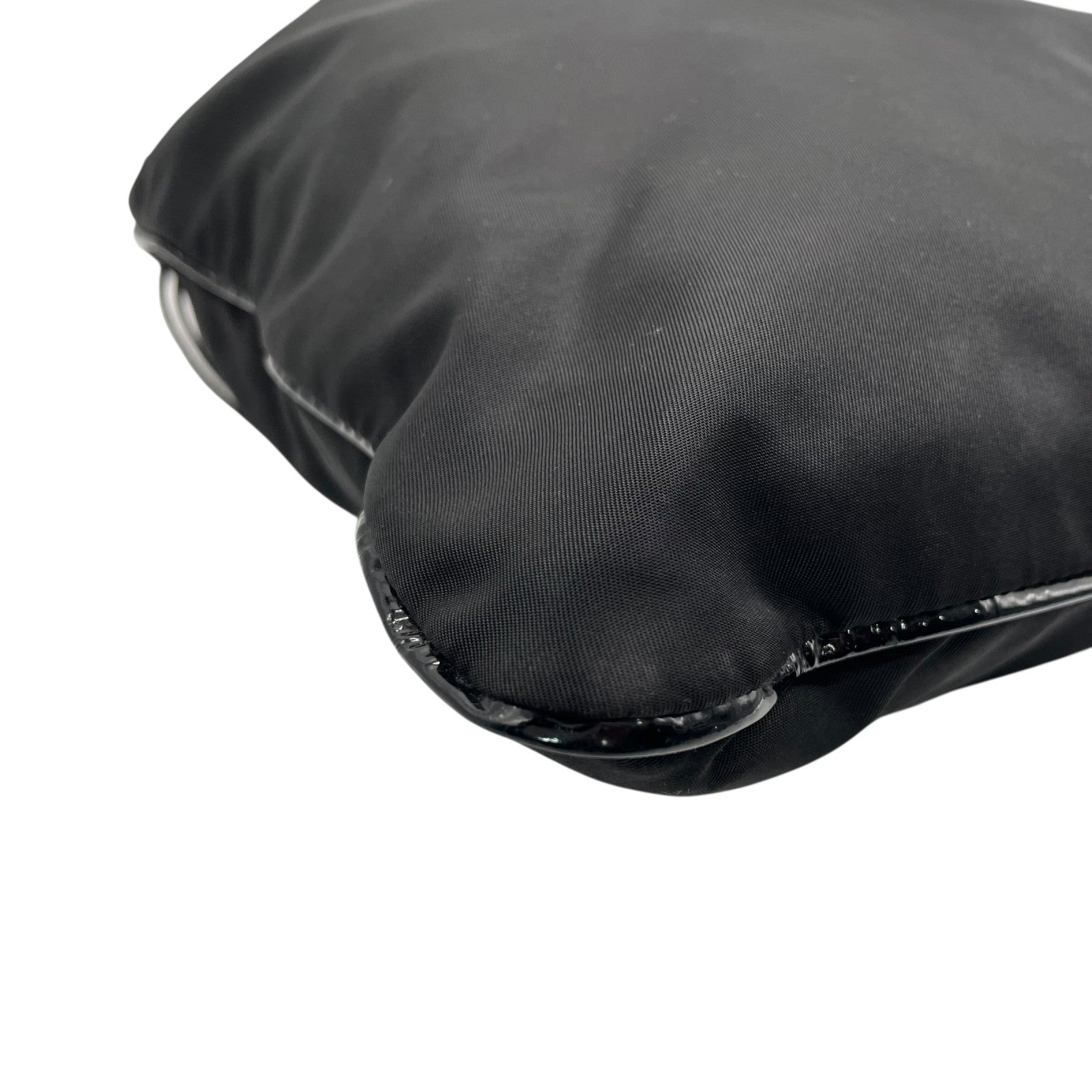 Authentic PRADA Black Handbag Tote Triangular Logo Plate Nylon Patent Leather Silver Hardware Shoulder Bag Men's Women's
