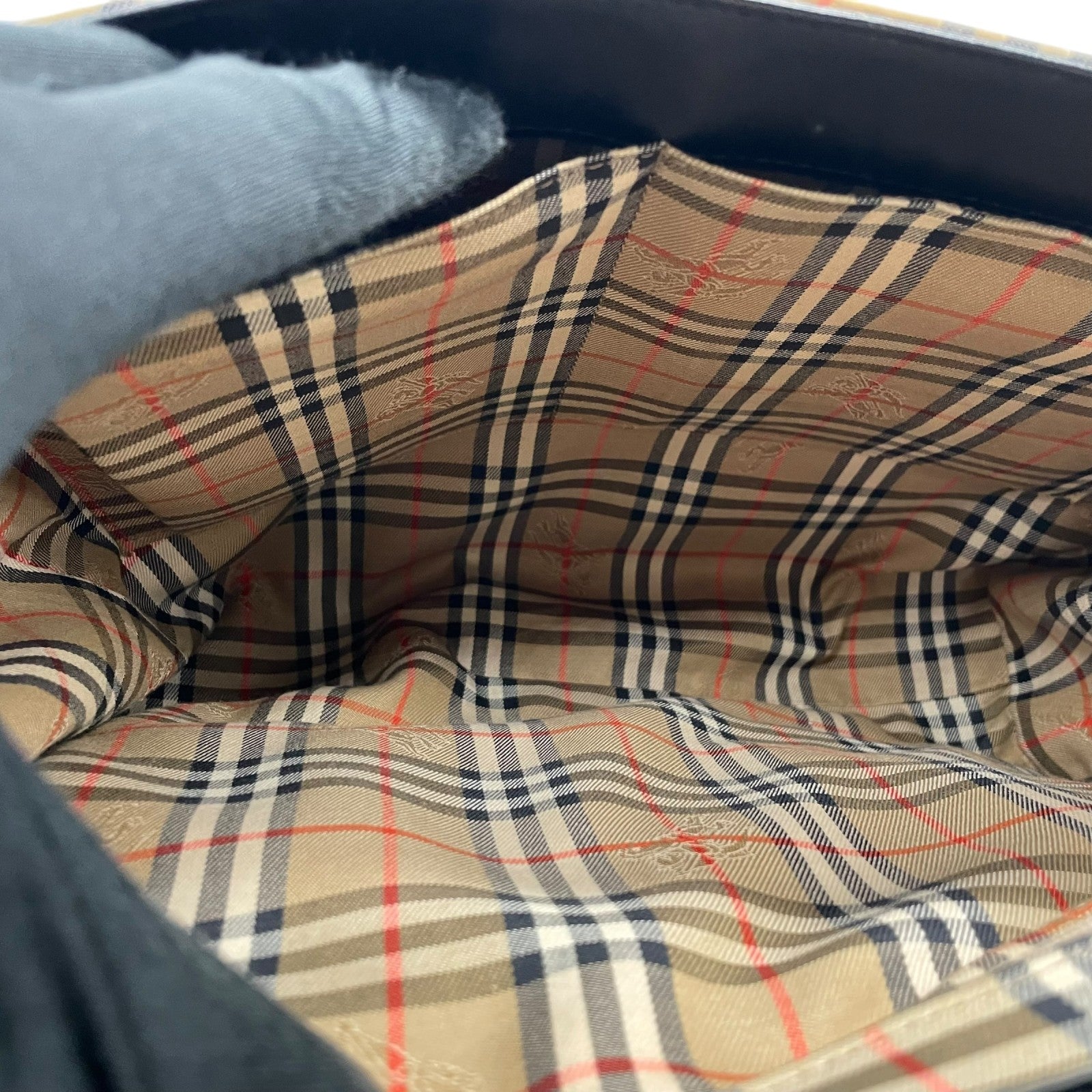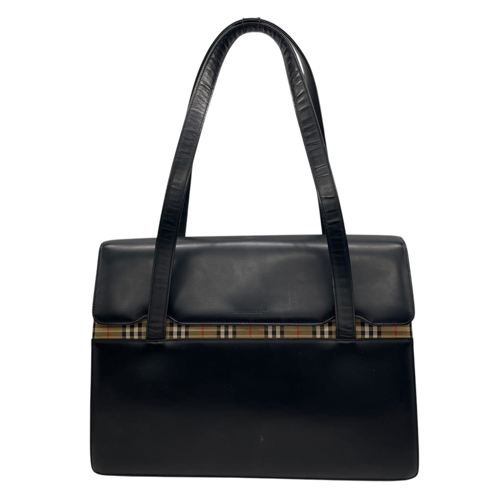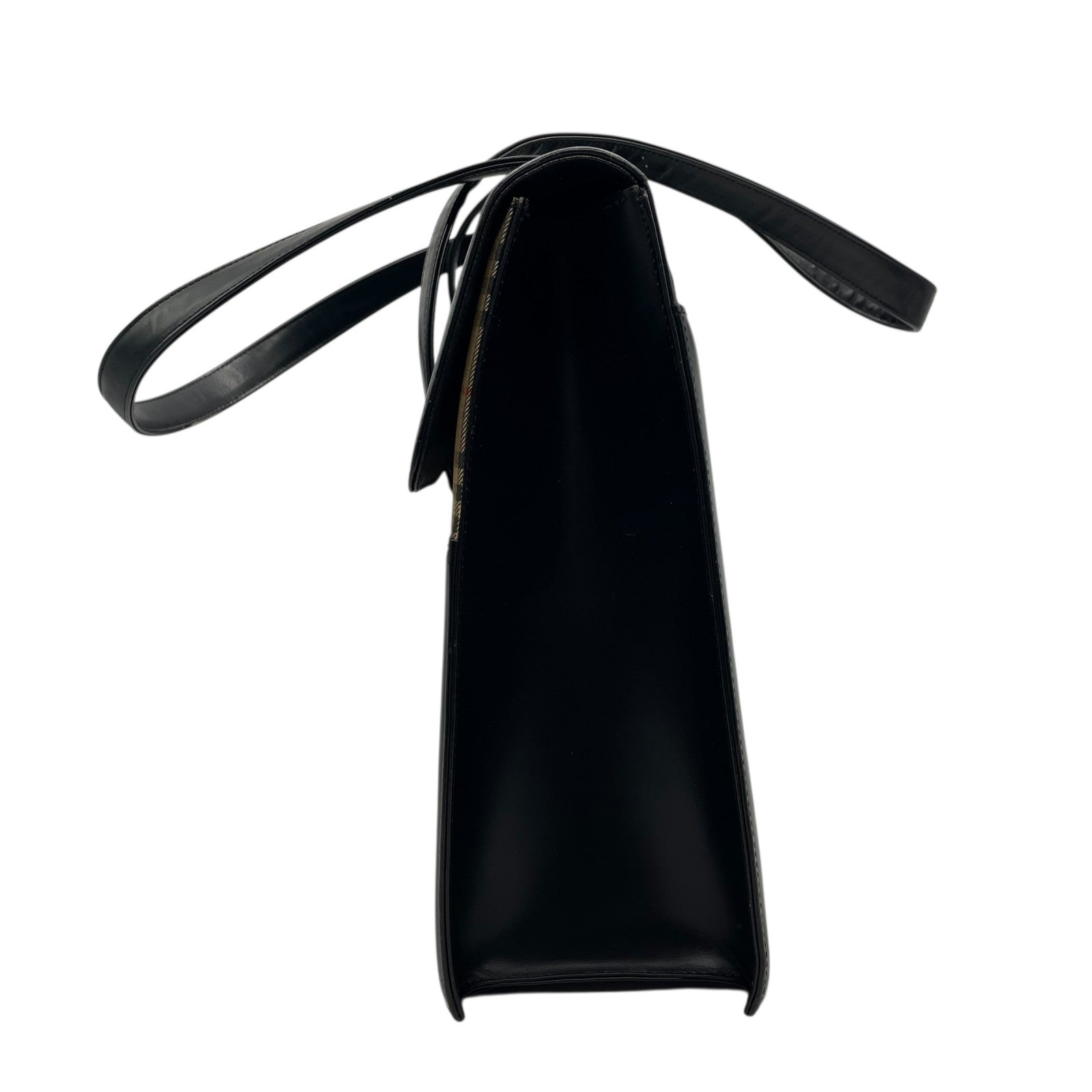 Authentic BURBERRY Black Nova Check Shadow Horse Leather Handbag Shoulder Bag Silver Hardware Women's Flap Closure