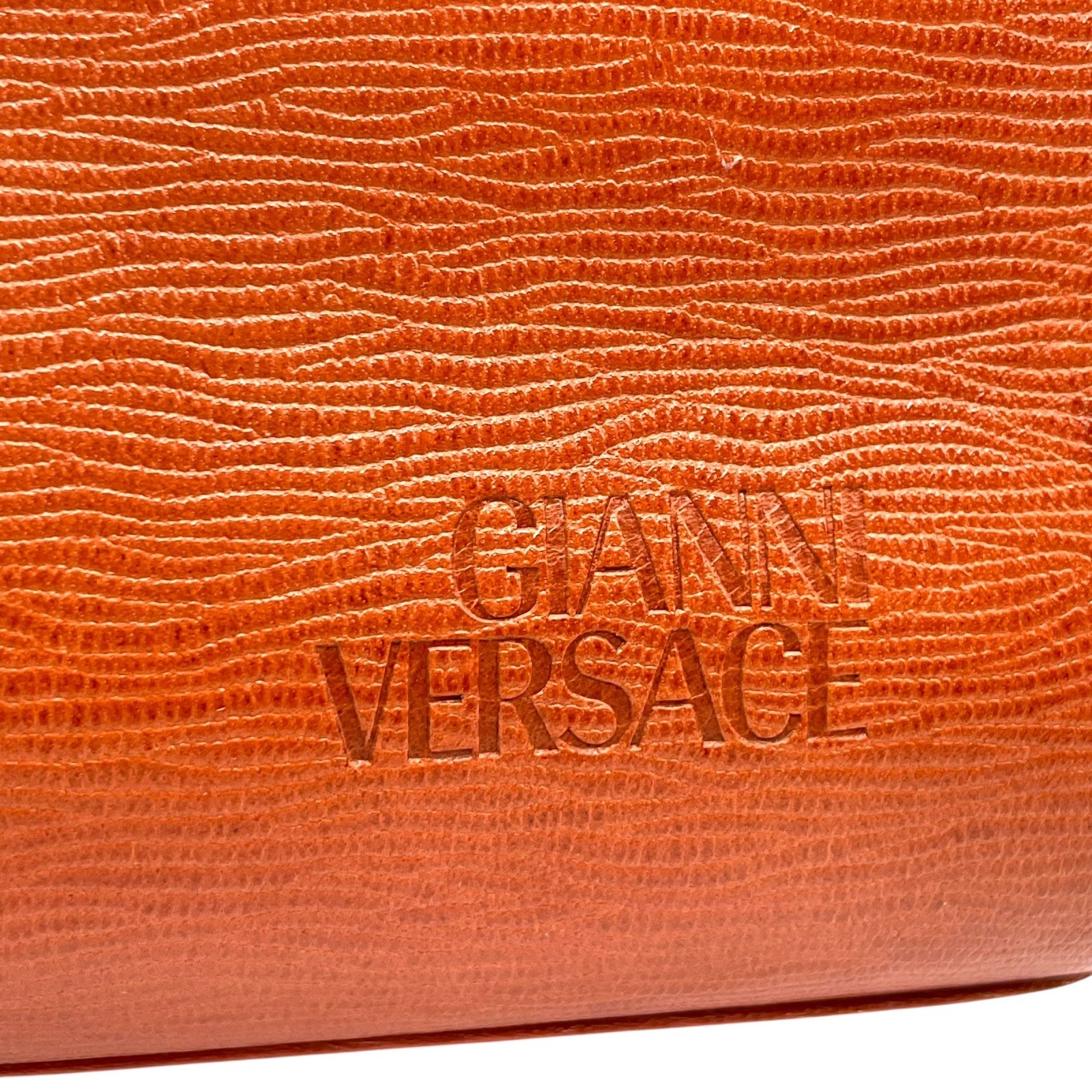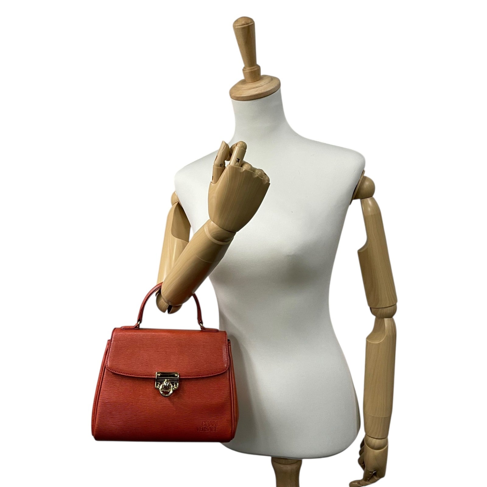 Excellent Authentic Gianni Versace 2WAY Handbag Shoulder Bag Leather Brown Orange Gold Hardware Crossbody Ladies