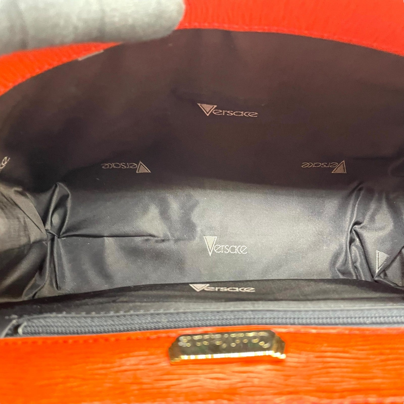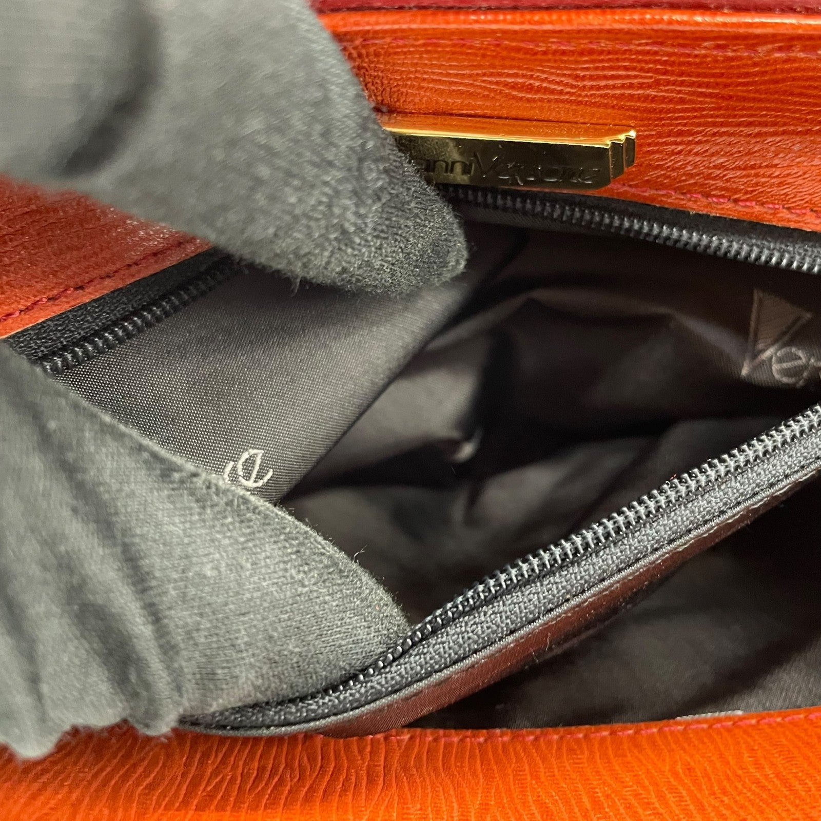 Excellent condition Gianni Versace 2-way handbag, shoulder bag, genuine leather, brown, orange, gold metal, can be worn crossbody, women's, D Gianni Versace