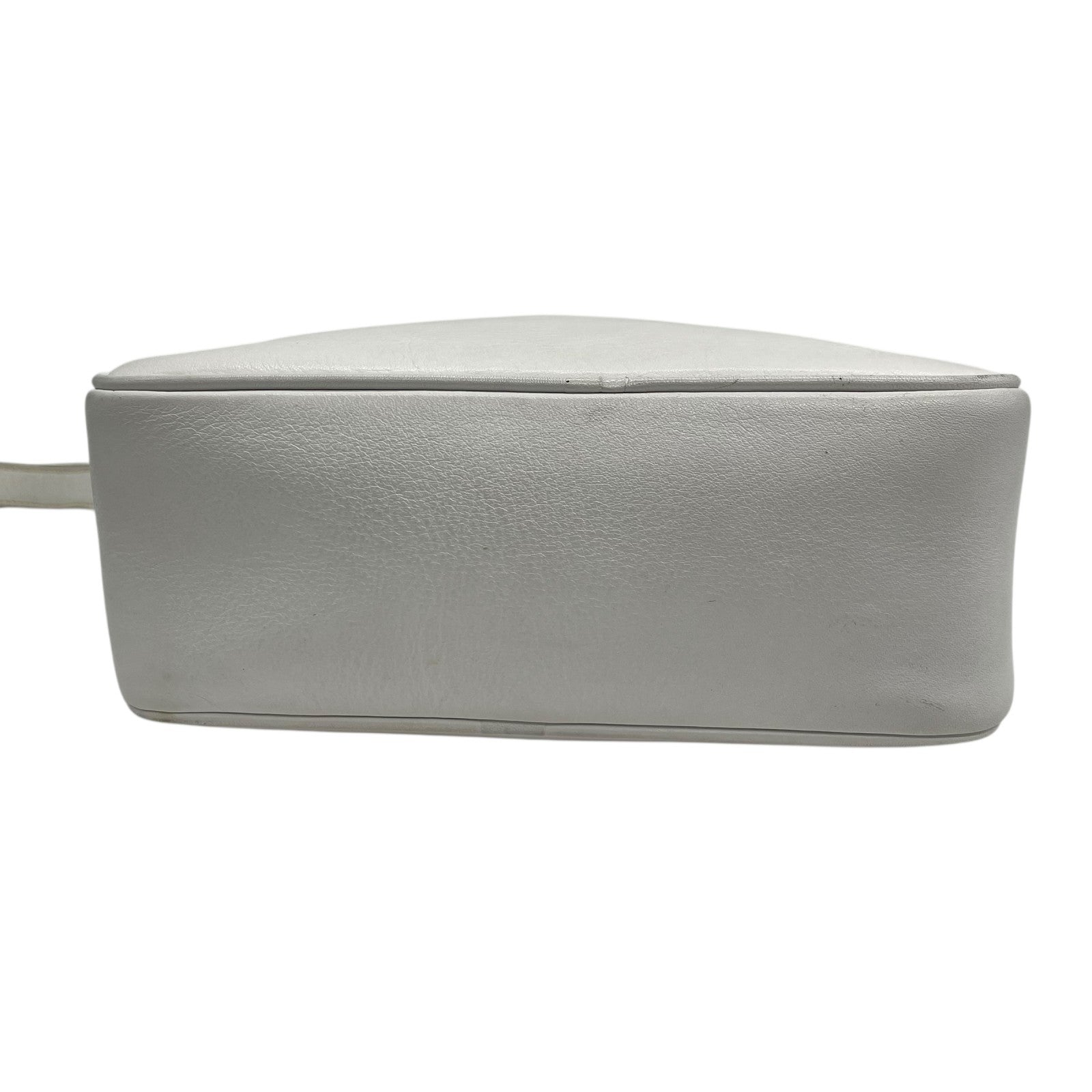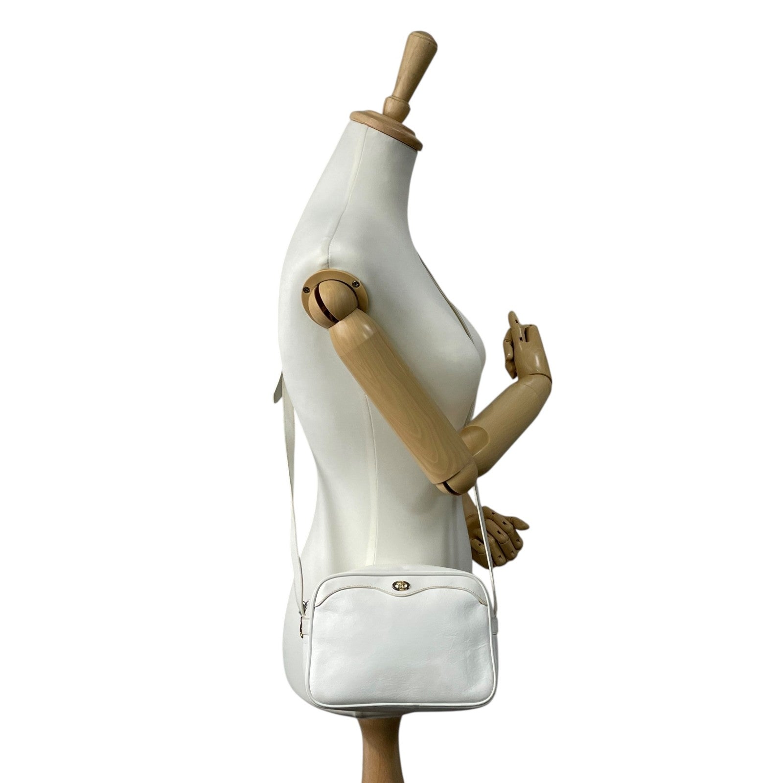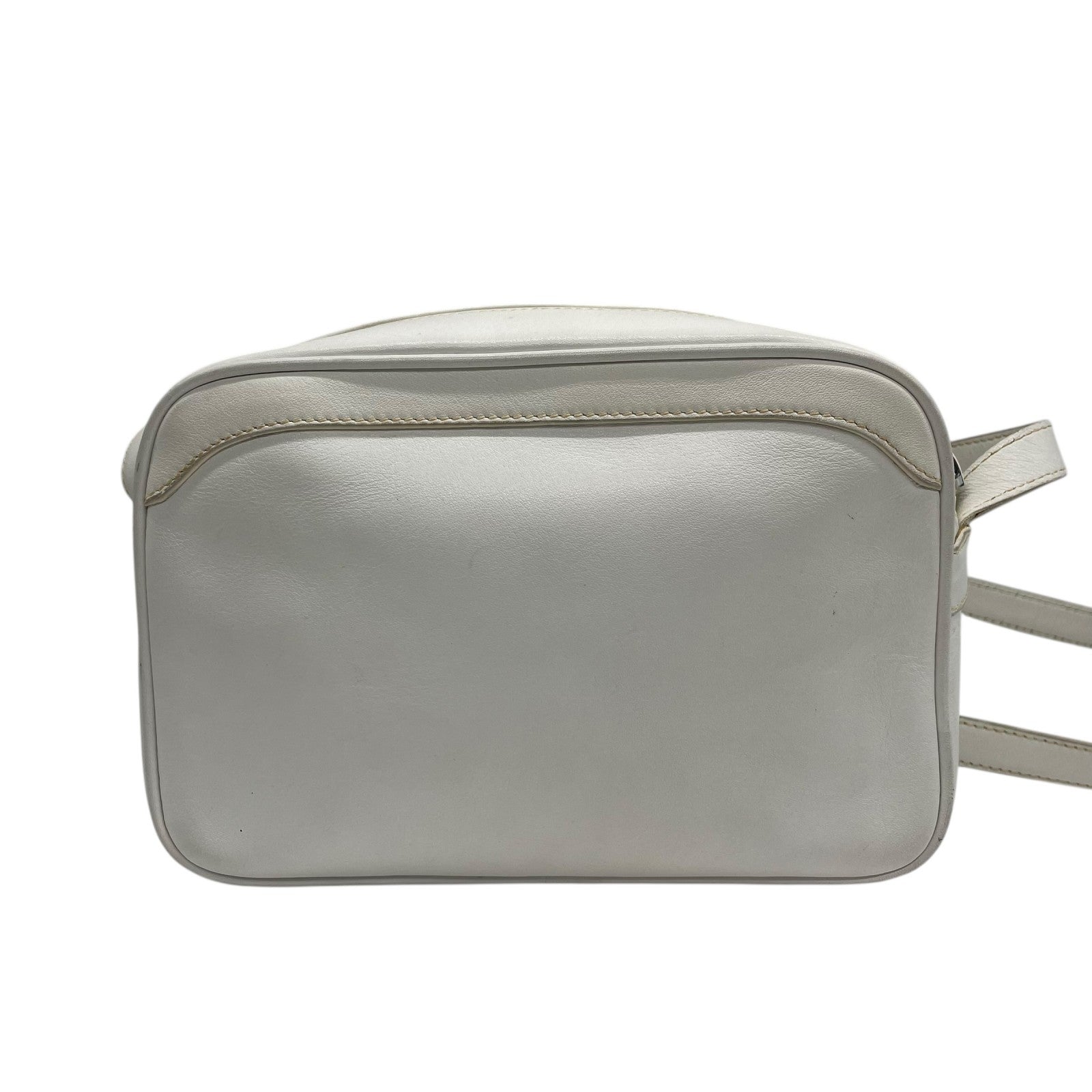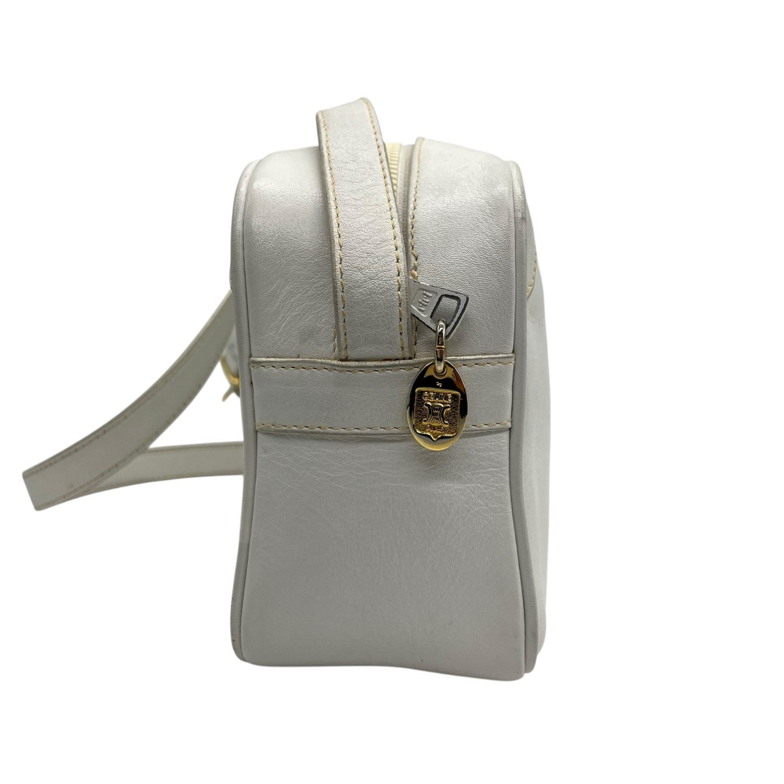 Excellent condition Celine Shoulder Bag, white leather camera bag, crossbody style, Macadam Metal, Triomphe, gold, vintage, women's, zipper closure, 12K gold.
