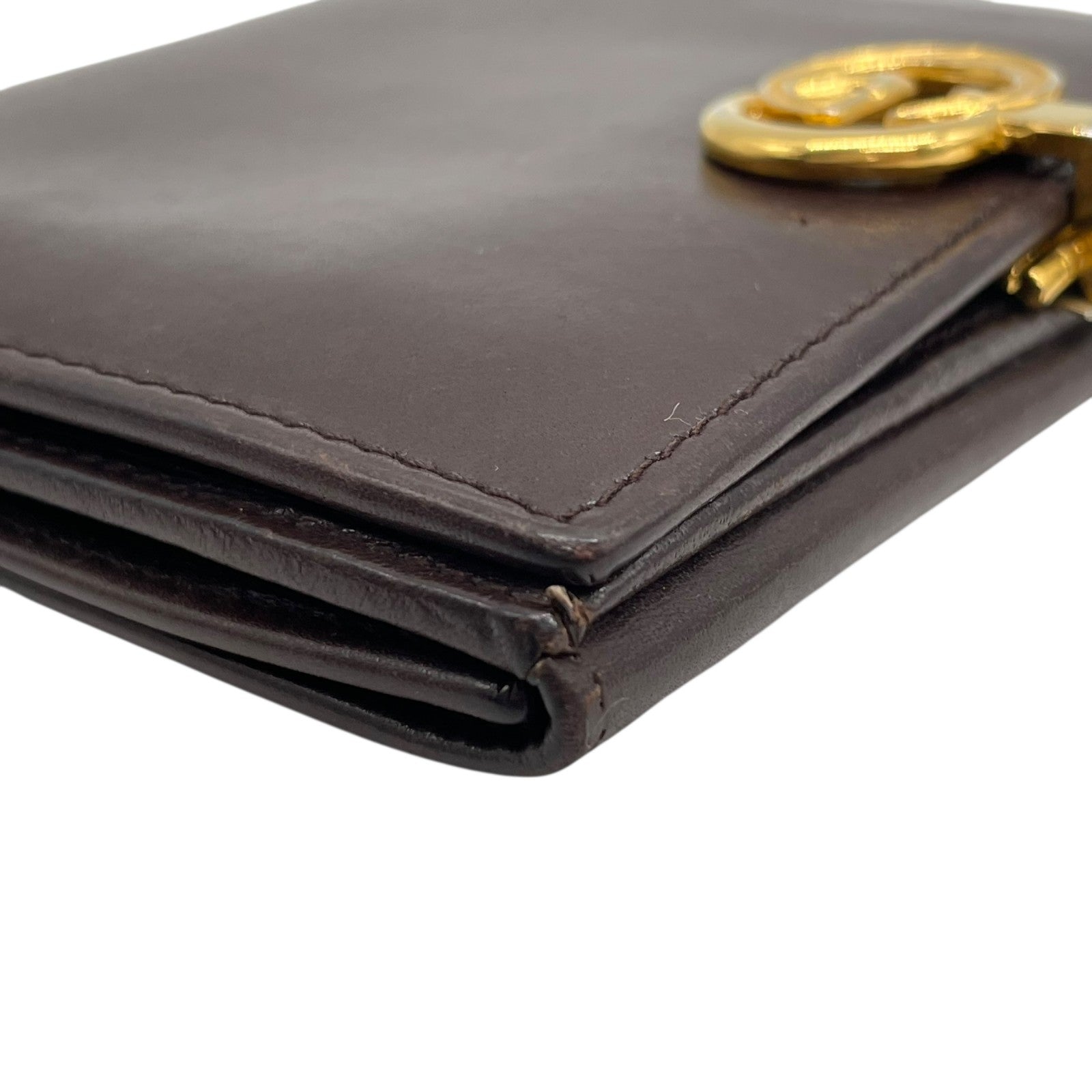 美品 GUCCI グッチ レザー 二つ折り財布 ボルドー ブラウン ゴールド金具 インターロッキング 035-904 ヴィンテージ レディース オールドグッチ M4