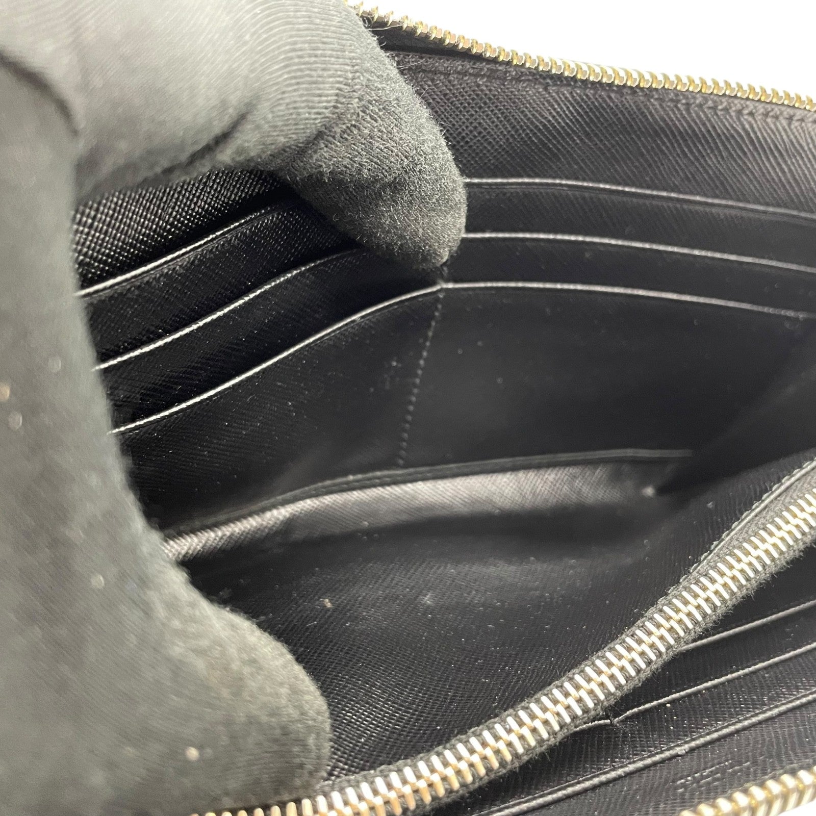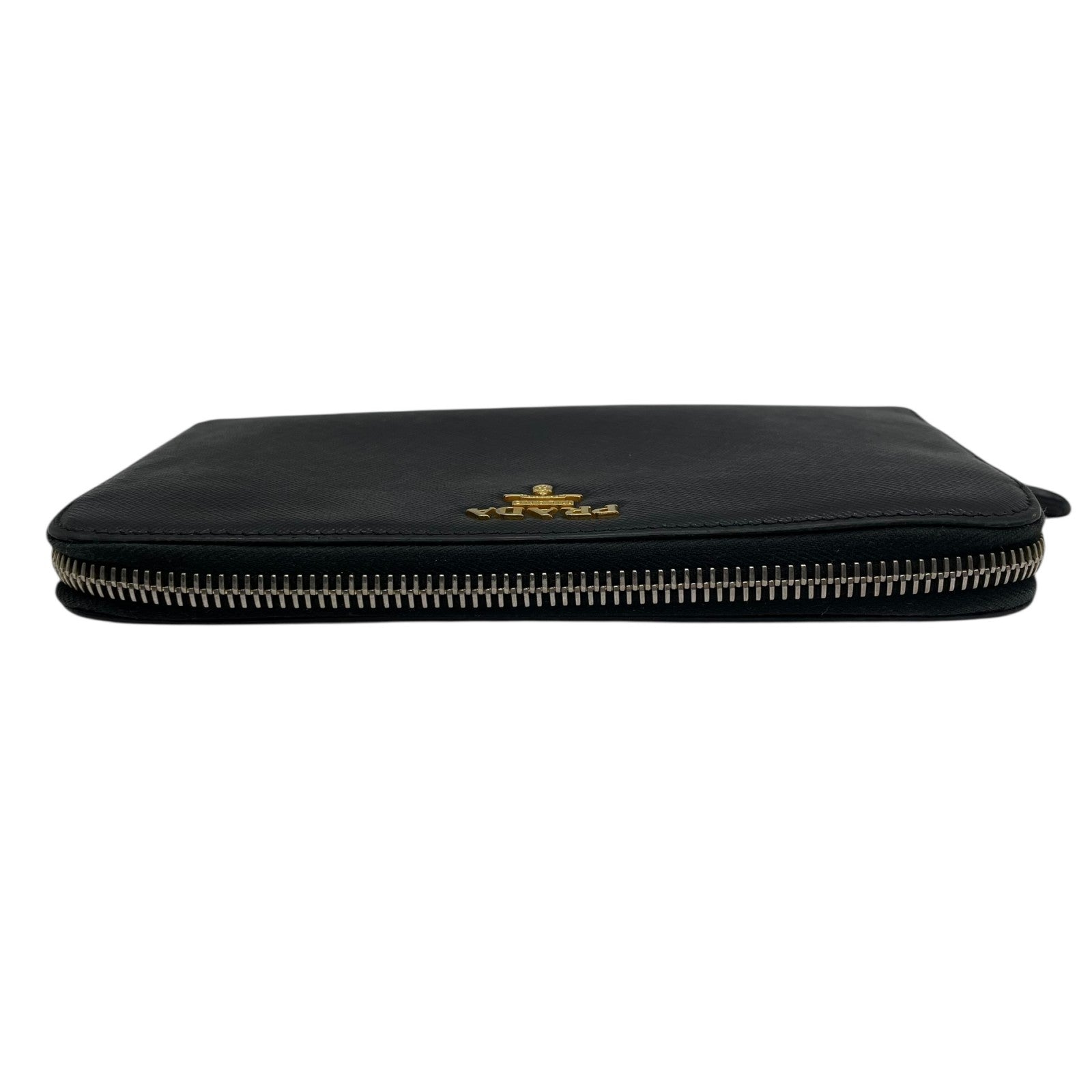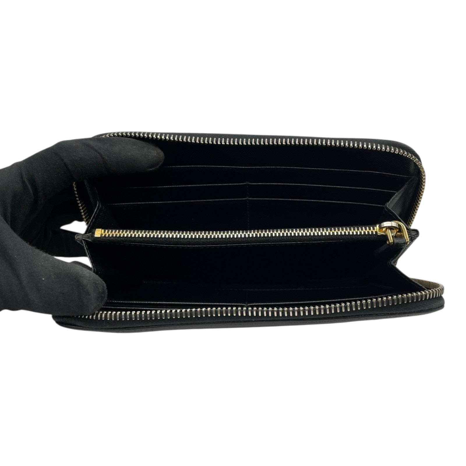 Authentic PRADA Saffiano Leather Long Wallet Black Round Zipper Logo Gold Hardware Women's