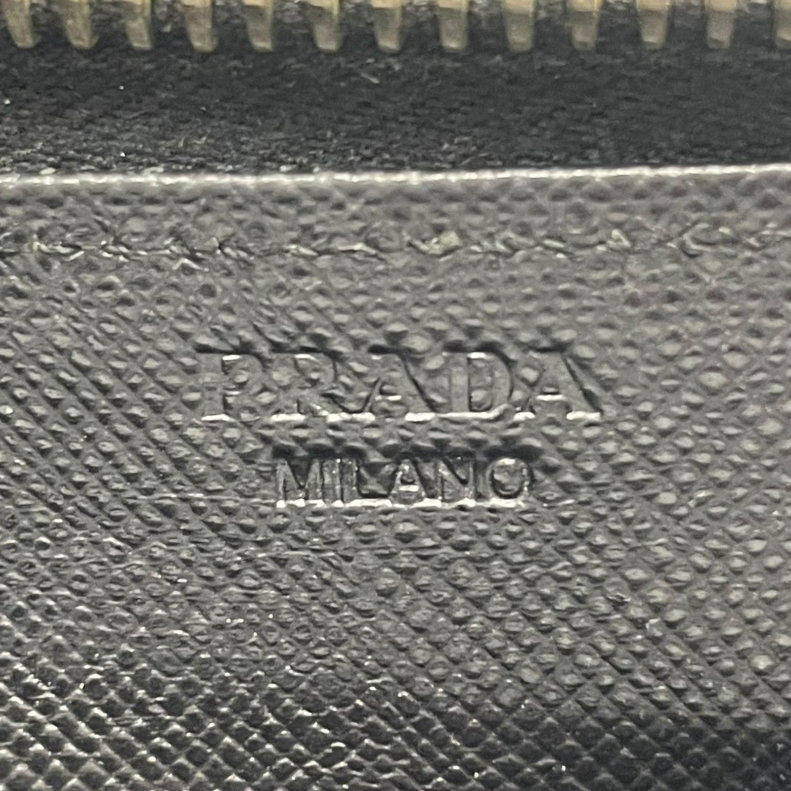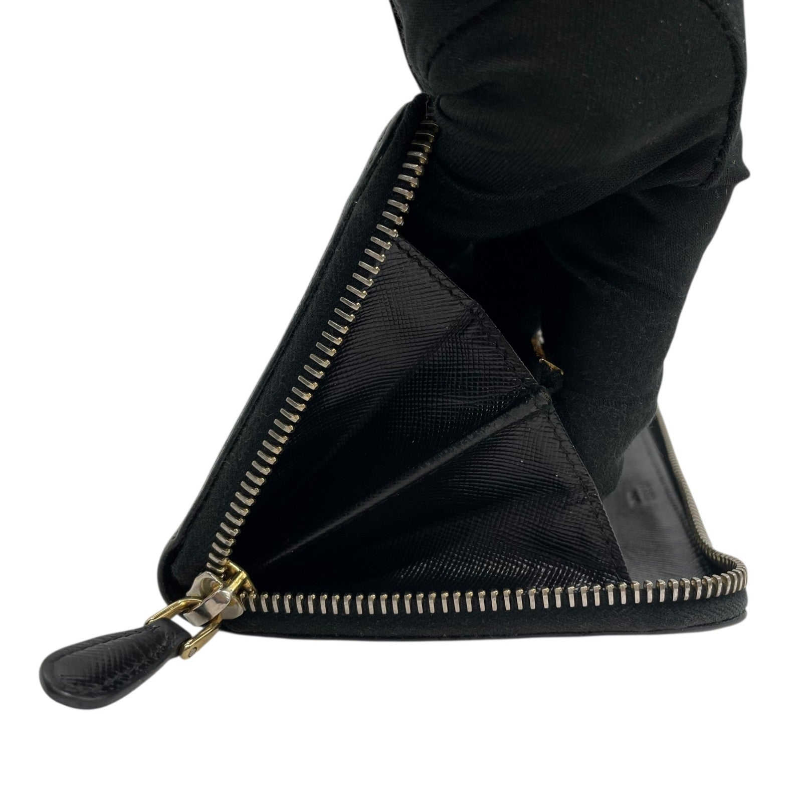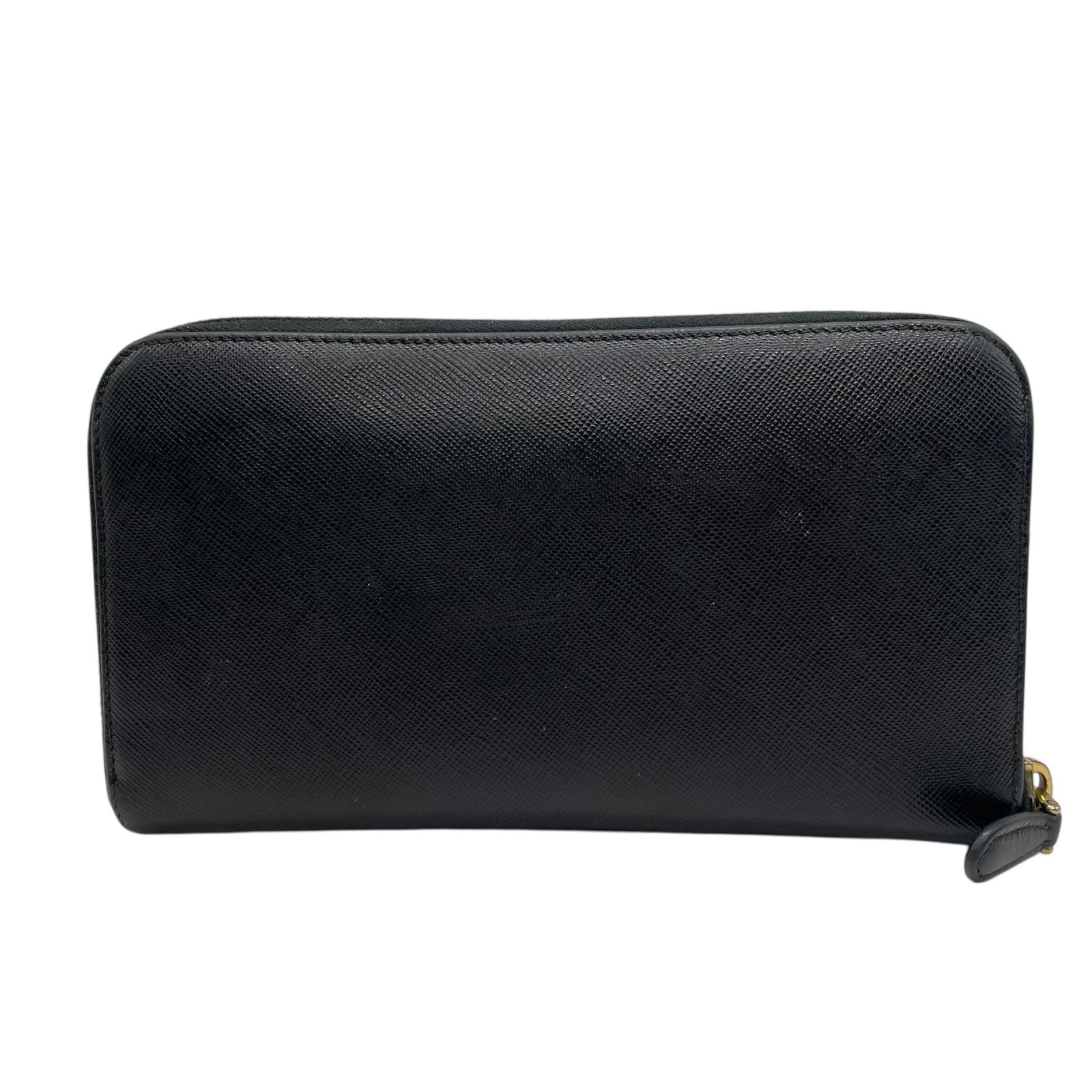 Authentic PRADA Saffiano Leather Long Wallet Black Round Zipper Logo Gold Hardware Women's