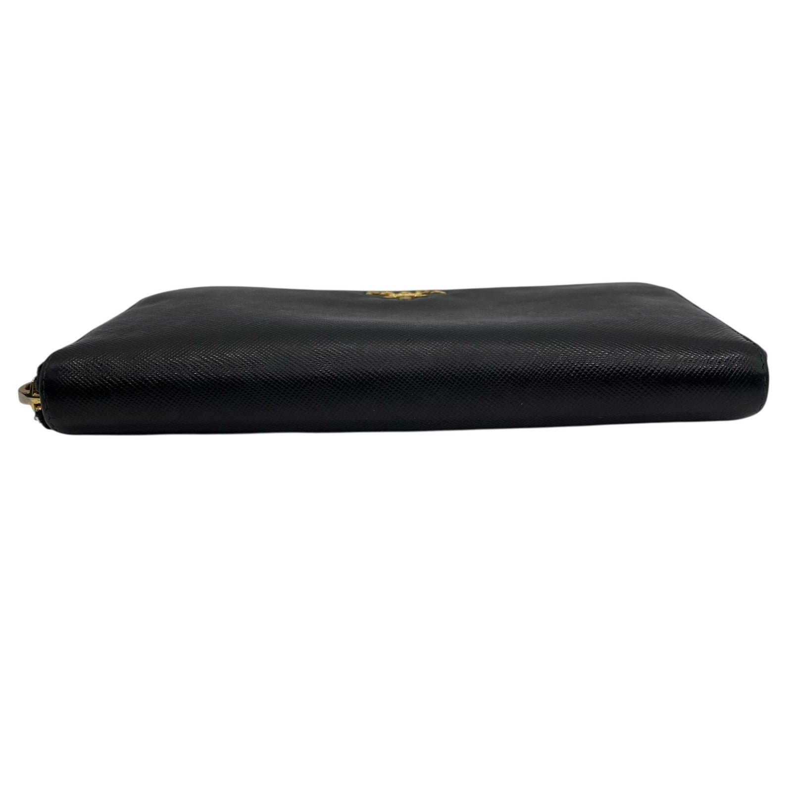 Excellent condition PRADA Purse in black Saffiano leather with a zip-around closure and gold metal logo. Women's M4.