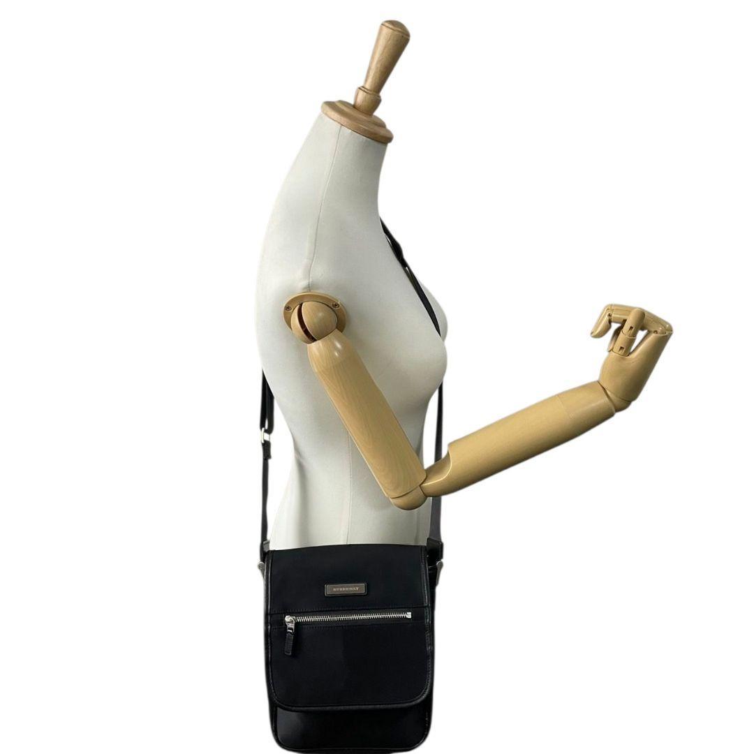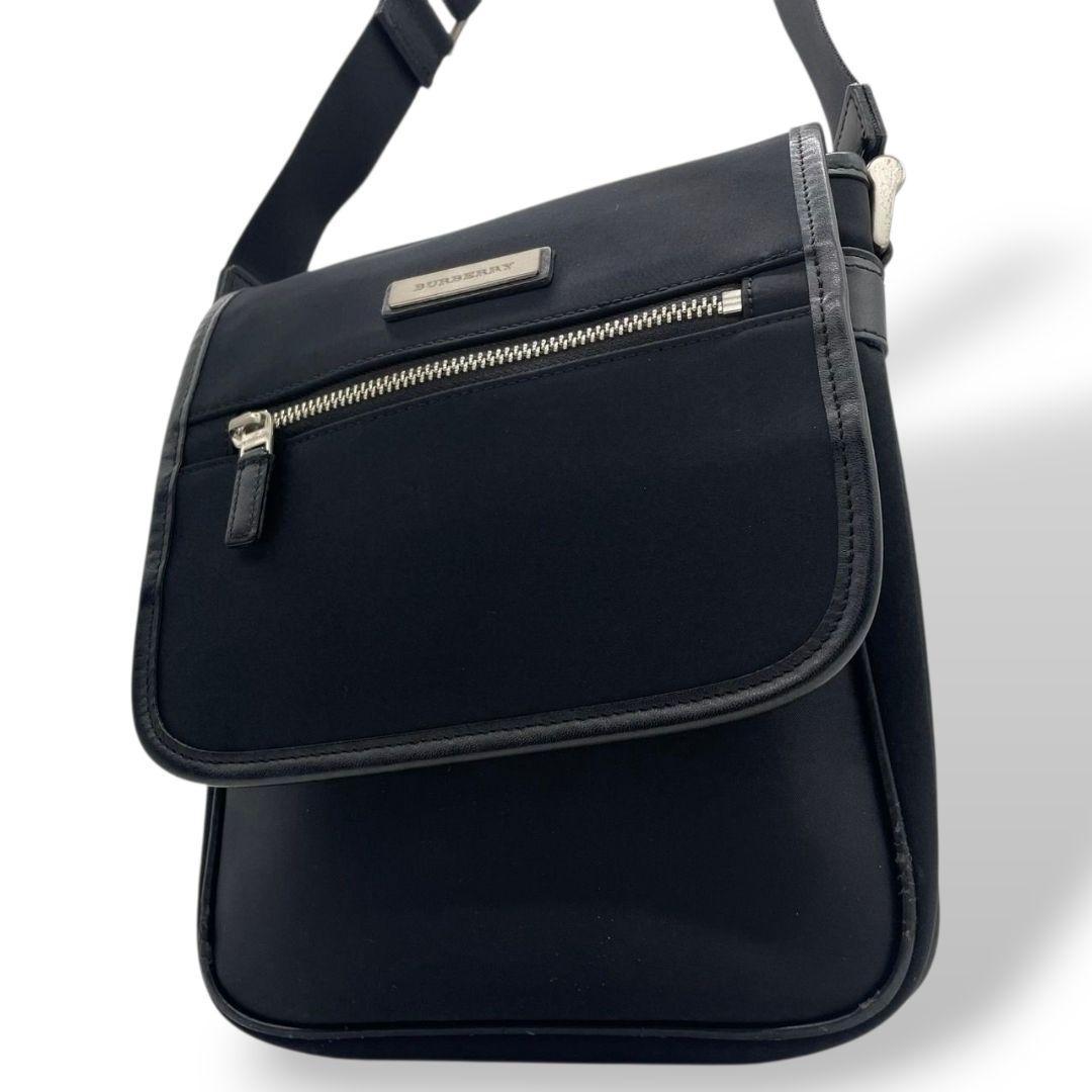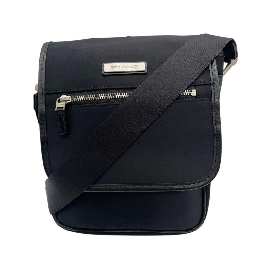 バーバリー ショルダーバッグ 黒 ブラック ロゴプレート フラップ ナイロン レザー 斜め掛け可 シルバー金具 シンプル 高級感 BURBERRY S18