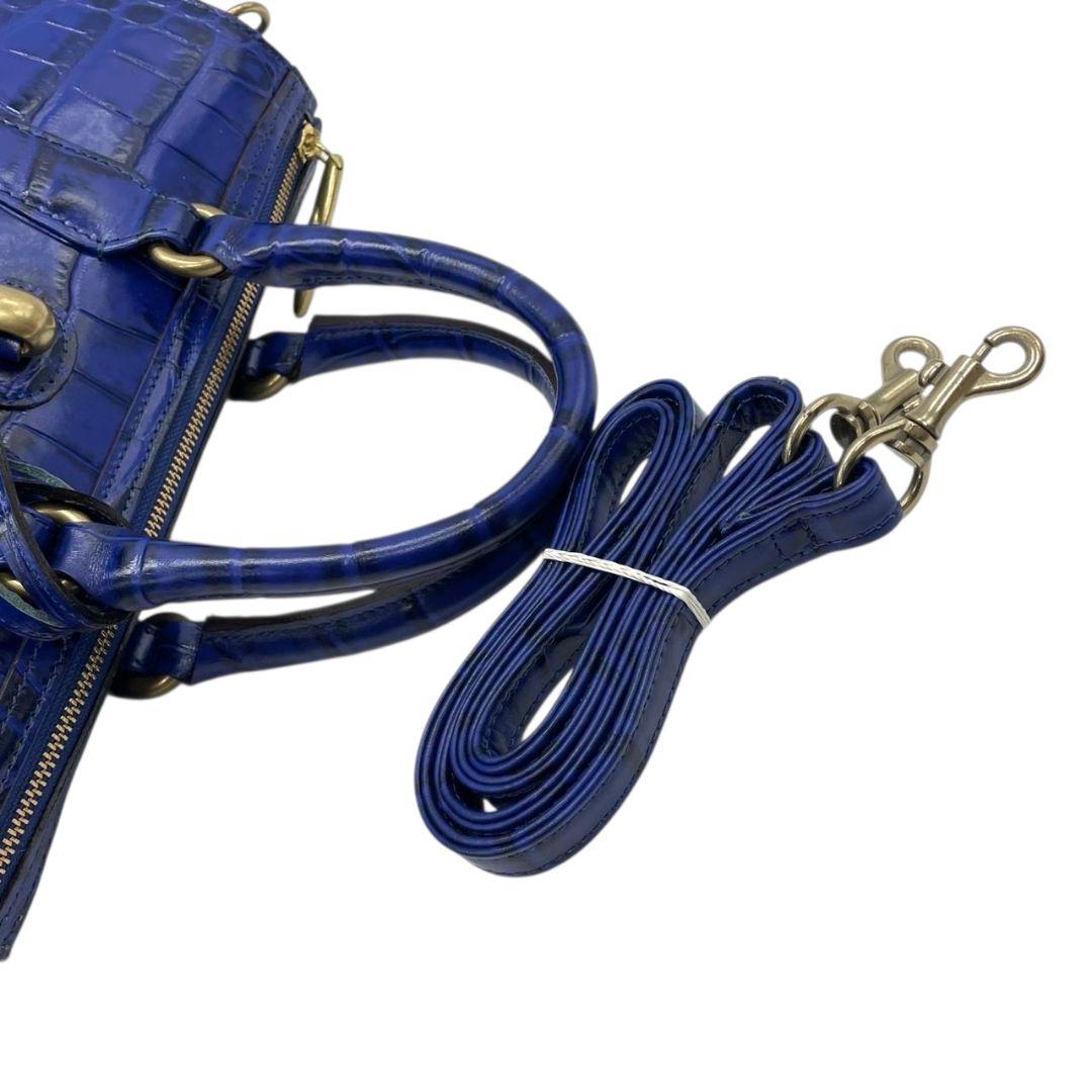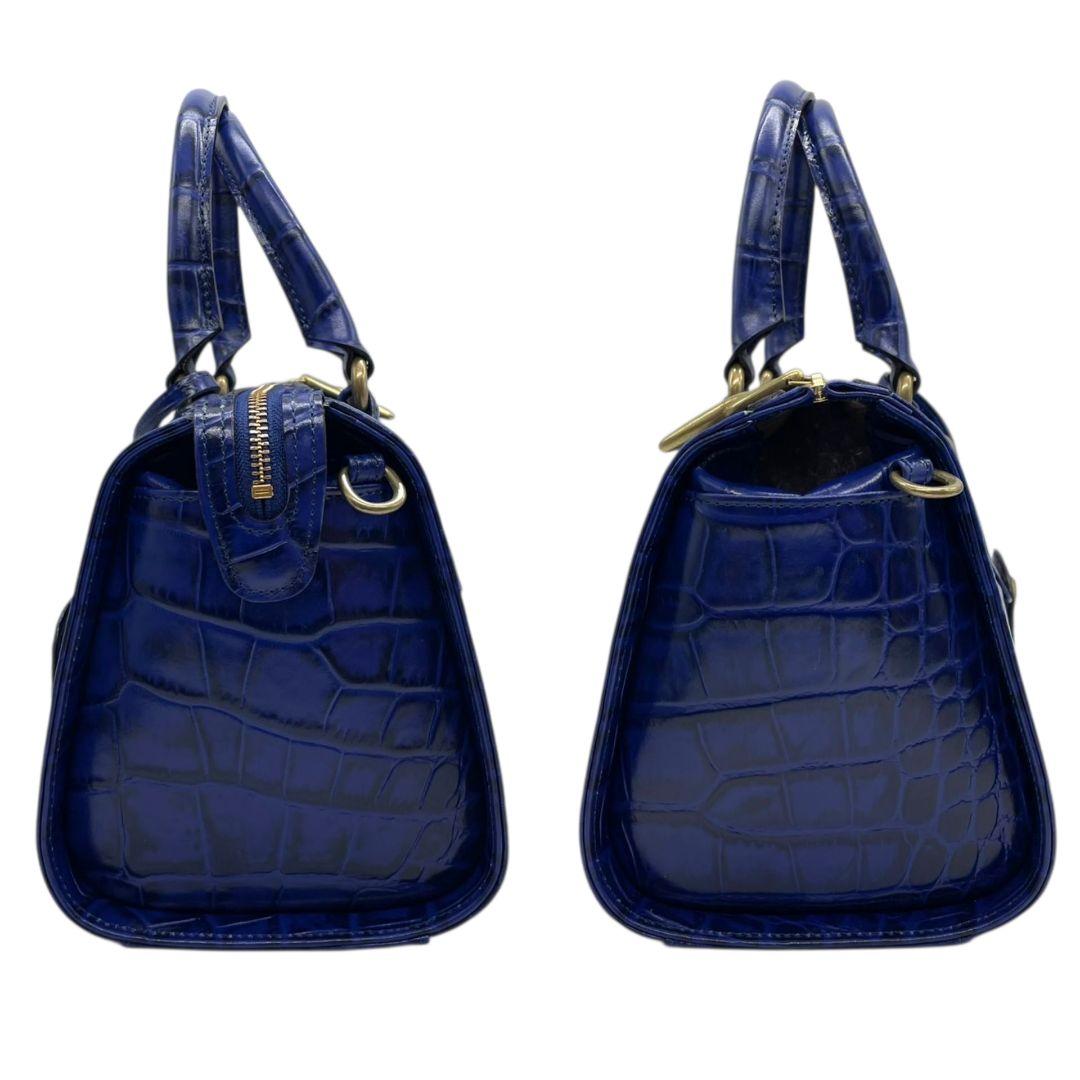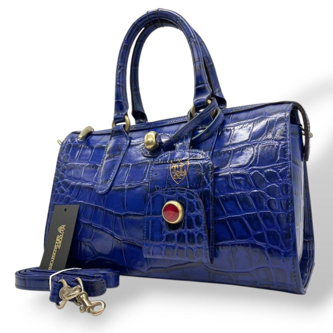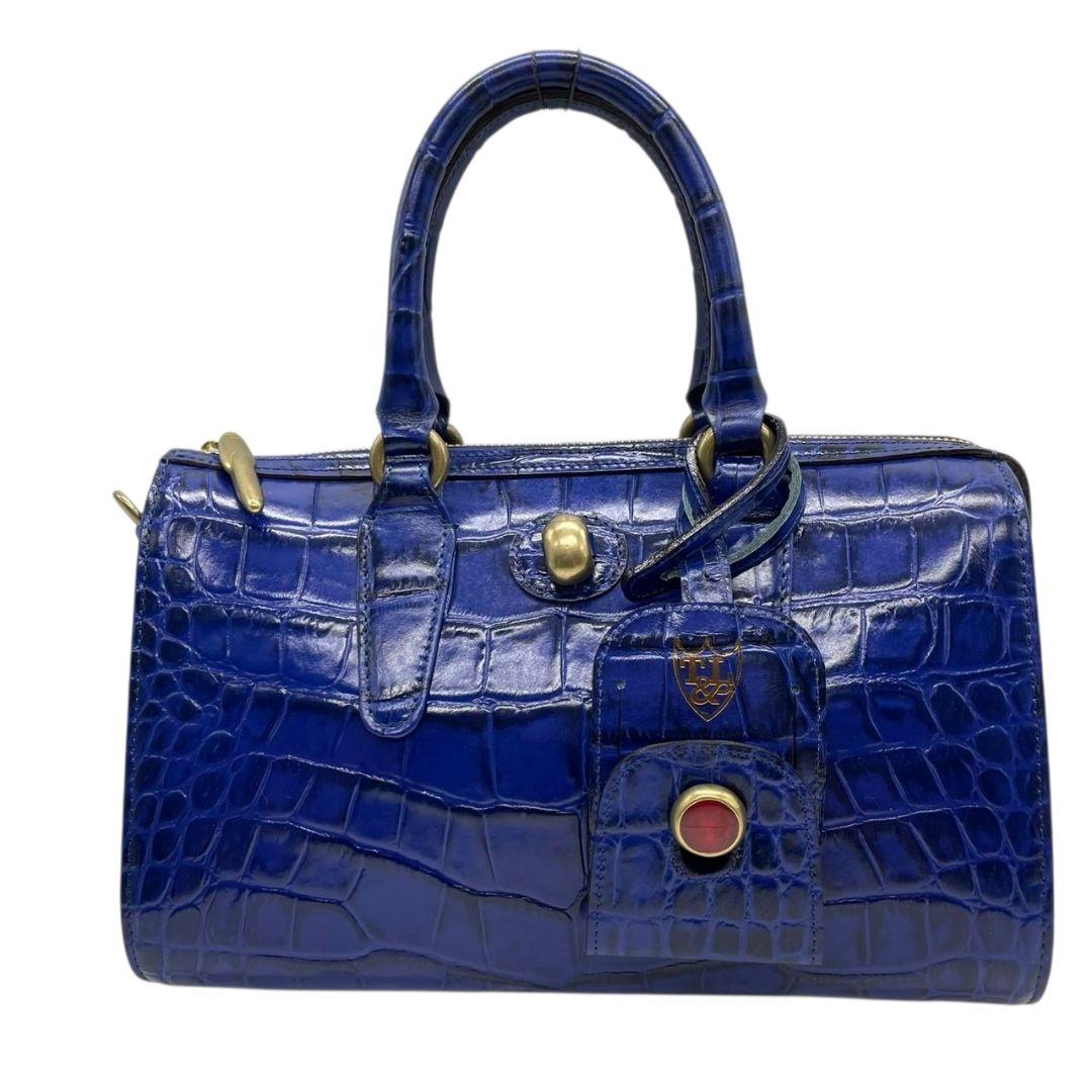 美品 トフアンドロードストーン ハンドバッグ 青 型押しレザー 2way U1 本革 斜め掛け可 TOFF&LOADSTONE 自立可 ショルダーバッグ トートバッグ ブルー ロゴプレート ゴールド金具 オシャレ