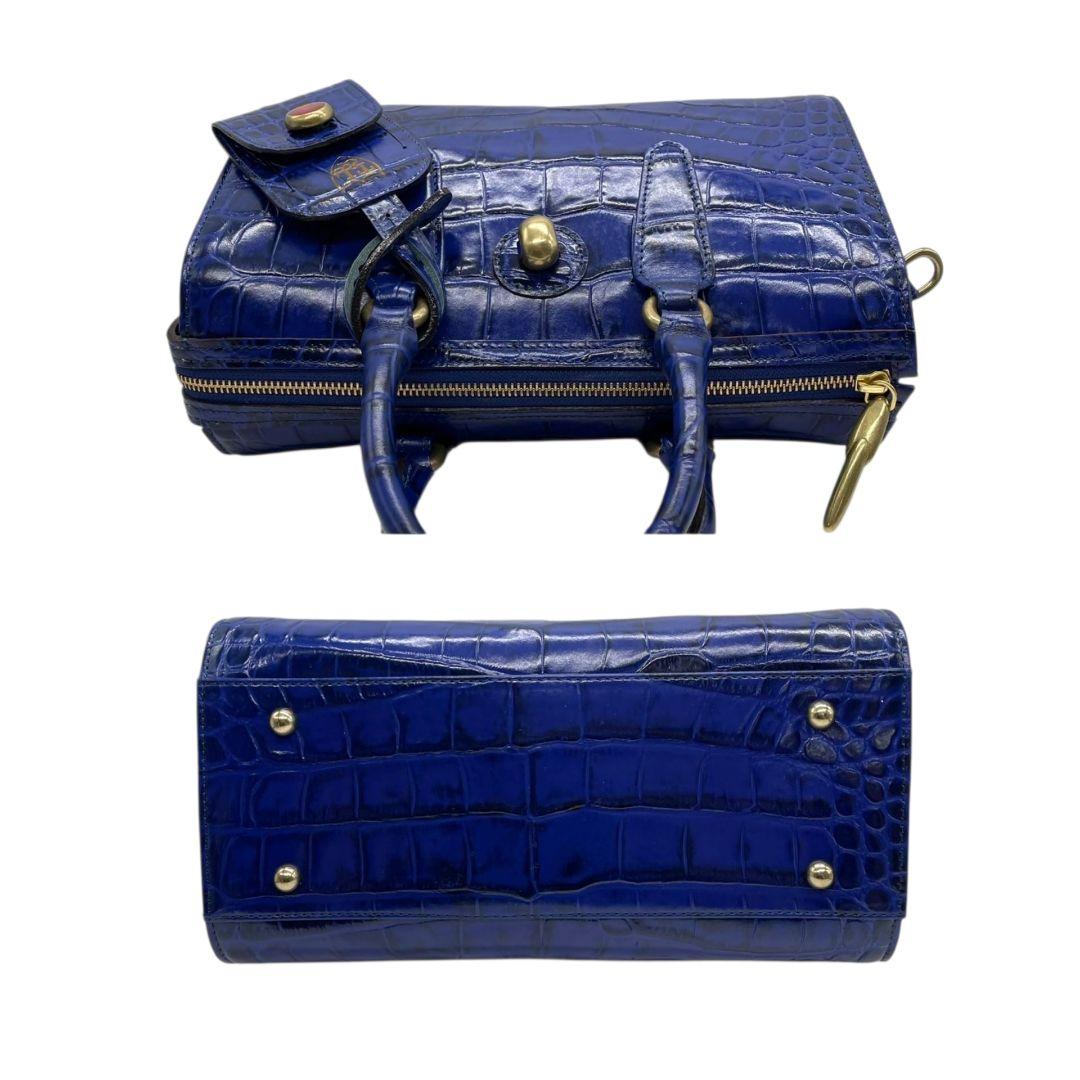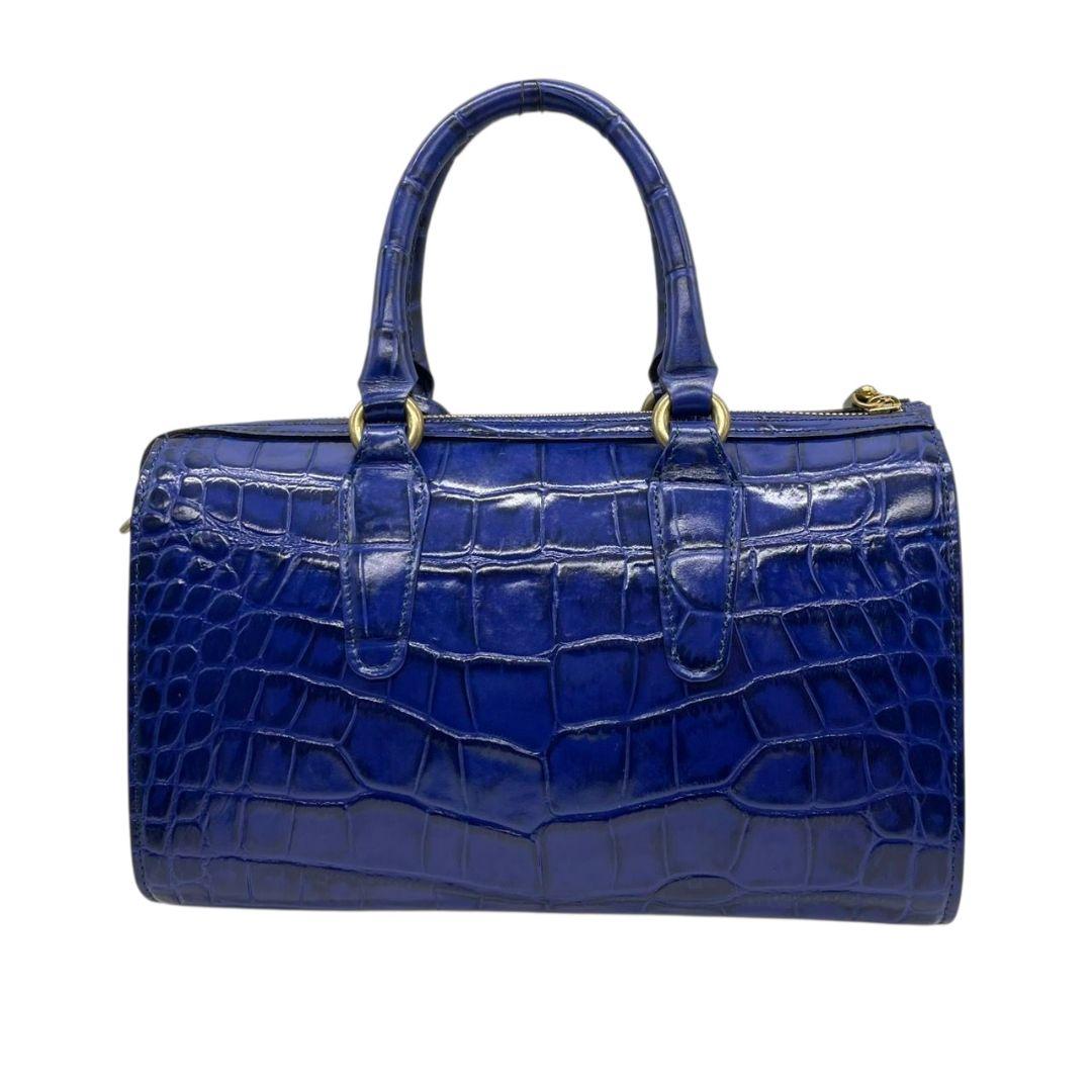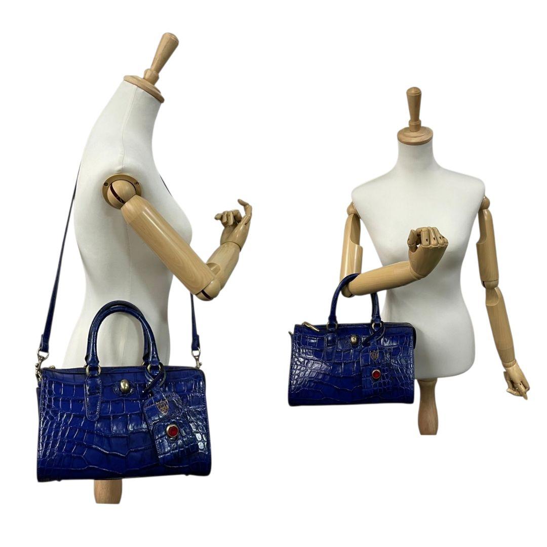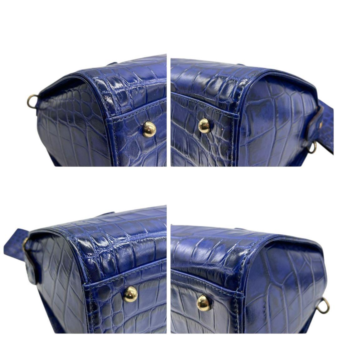美品 トフアンドロードストーン ハンドバッグ 青 型押しレザー 2way U1 本革 斜め掛け可 TOFF&LOADSTONE 自立可 ショルダーバッグ トートバッグ ブルー ロゴプレート ゴールド金具 オシャレ