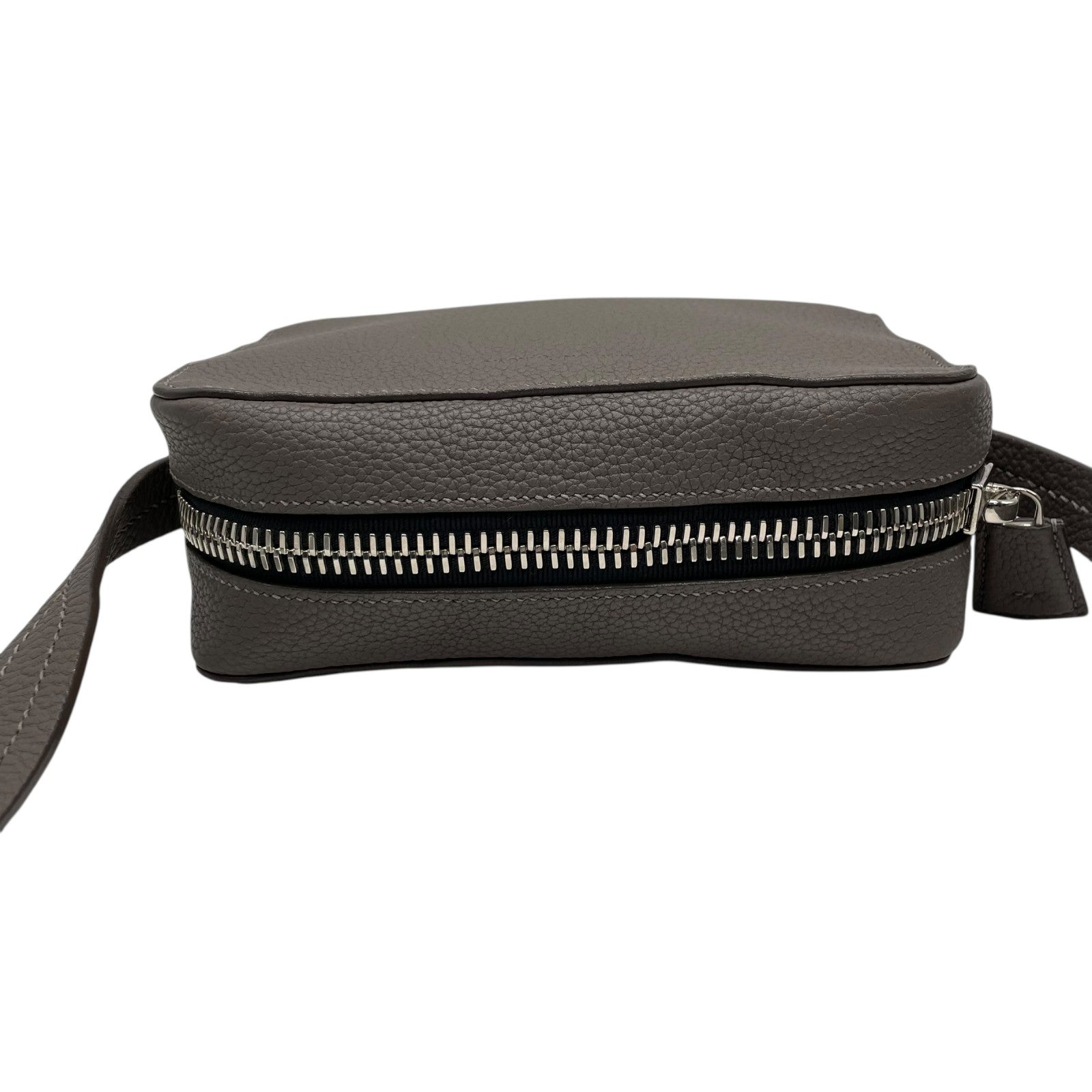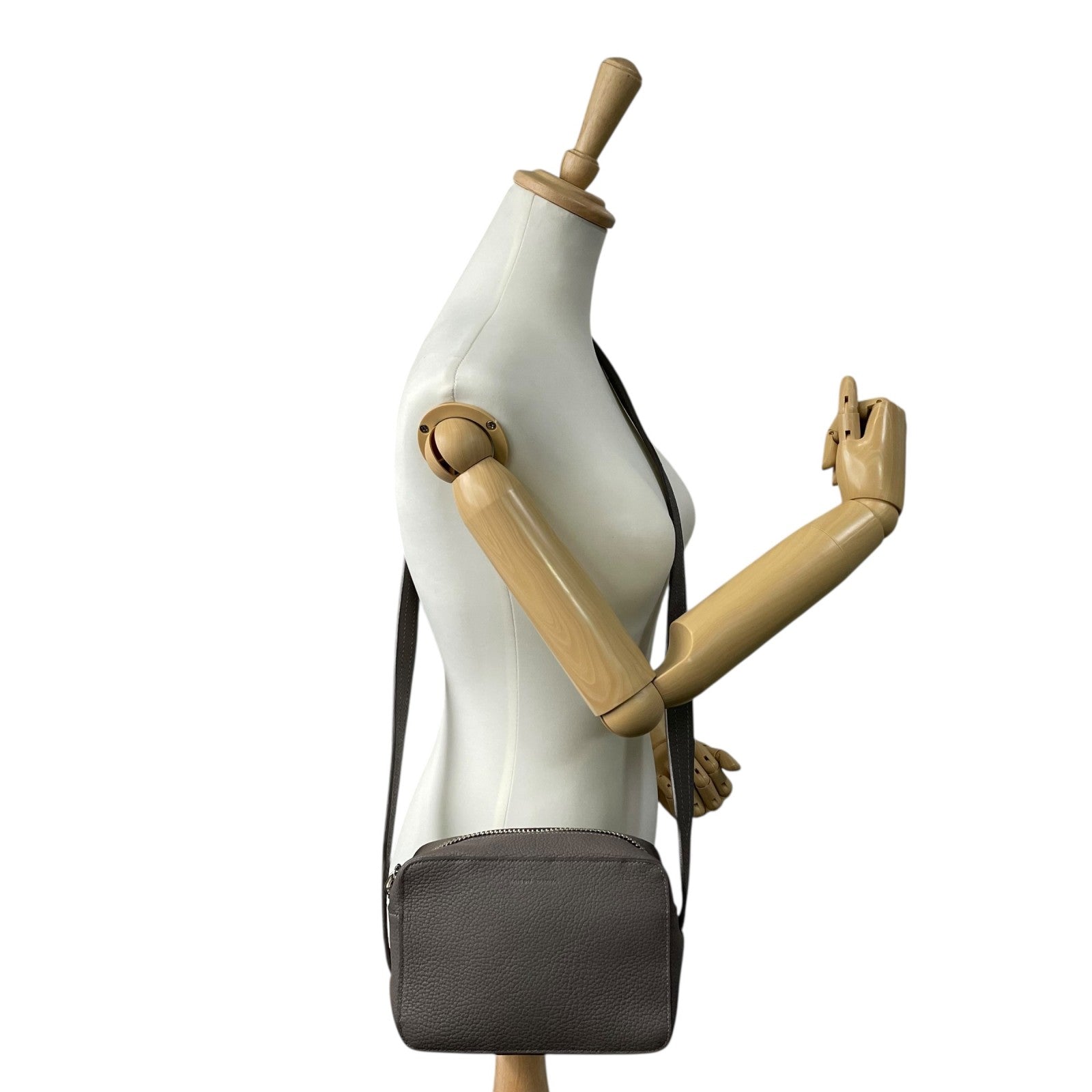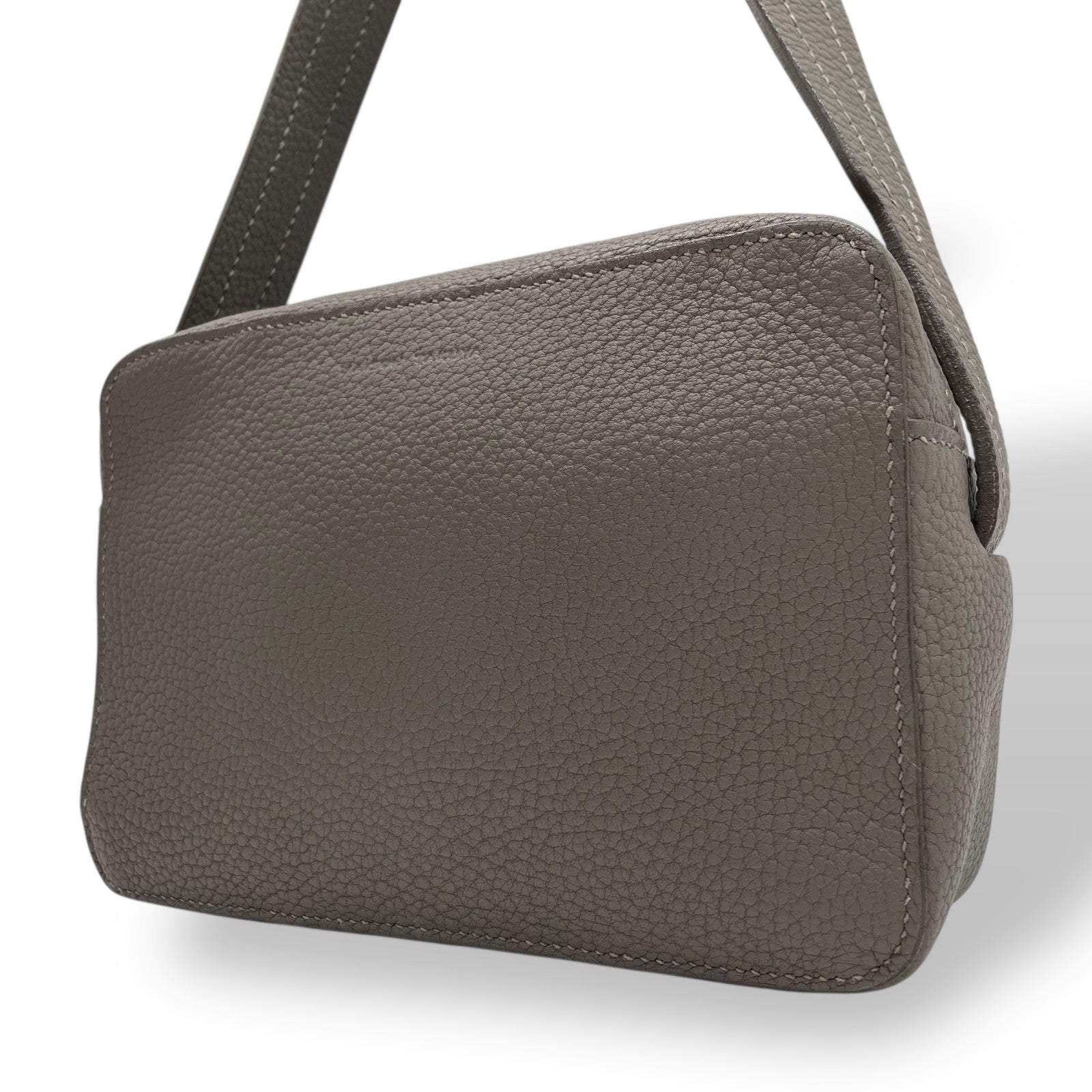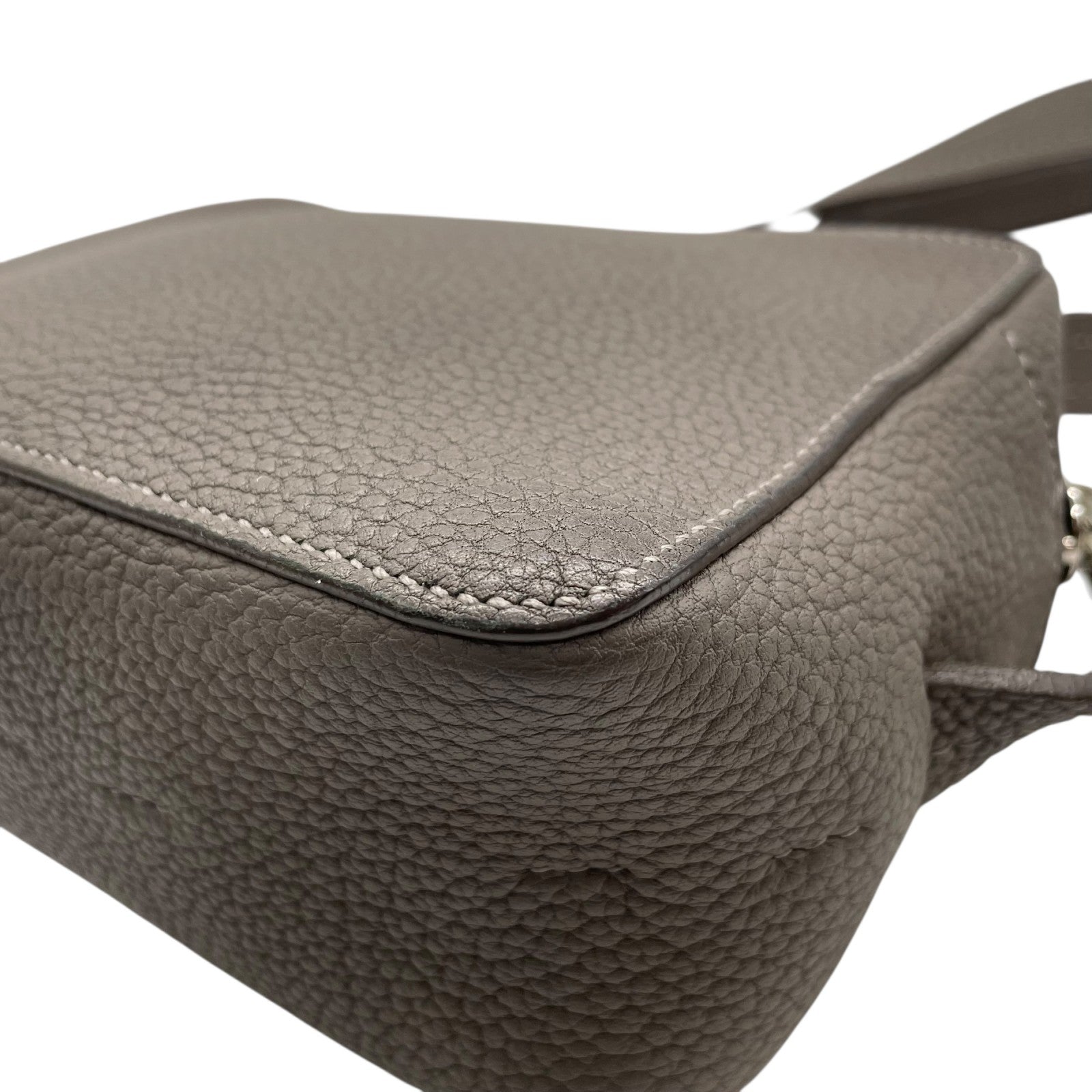 極美品 MAISON TAKUYA メゾンタクヤ ショルダーバッグ カメラバッグ レザー グレー シルバー金具 斜め掛け可 クロスボディ 型押しロゴ メンズ レディース R