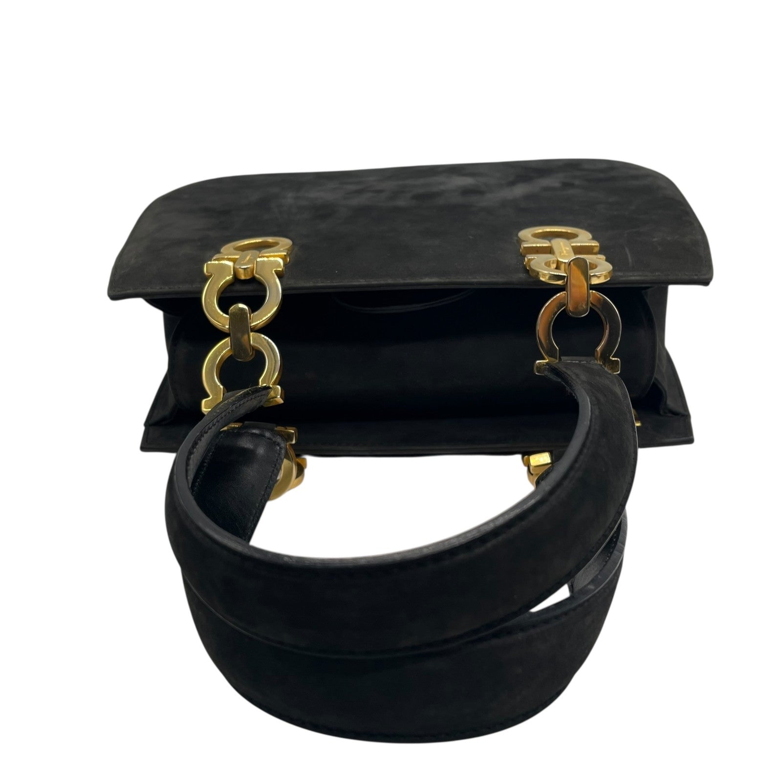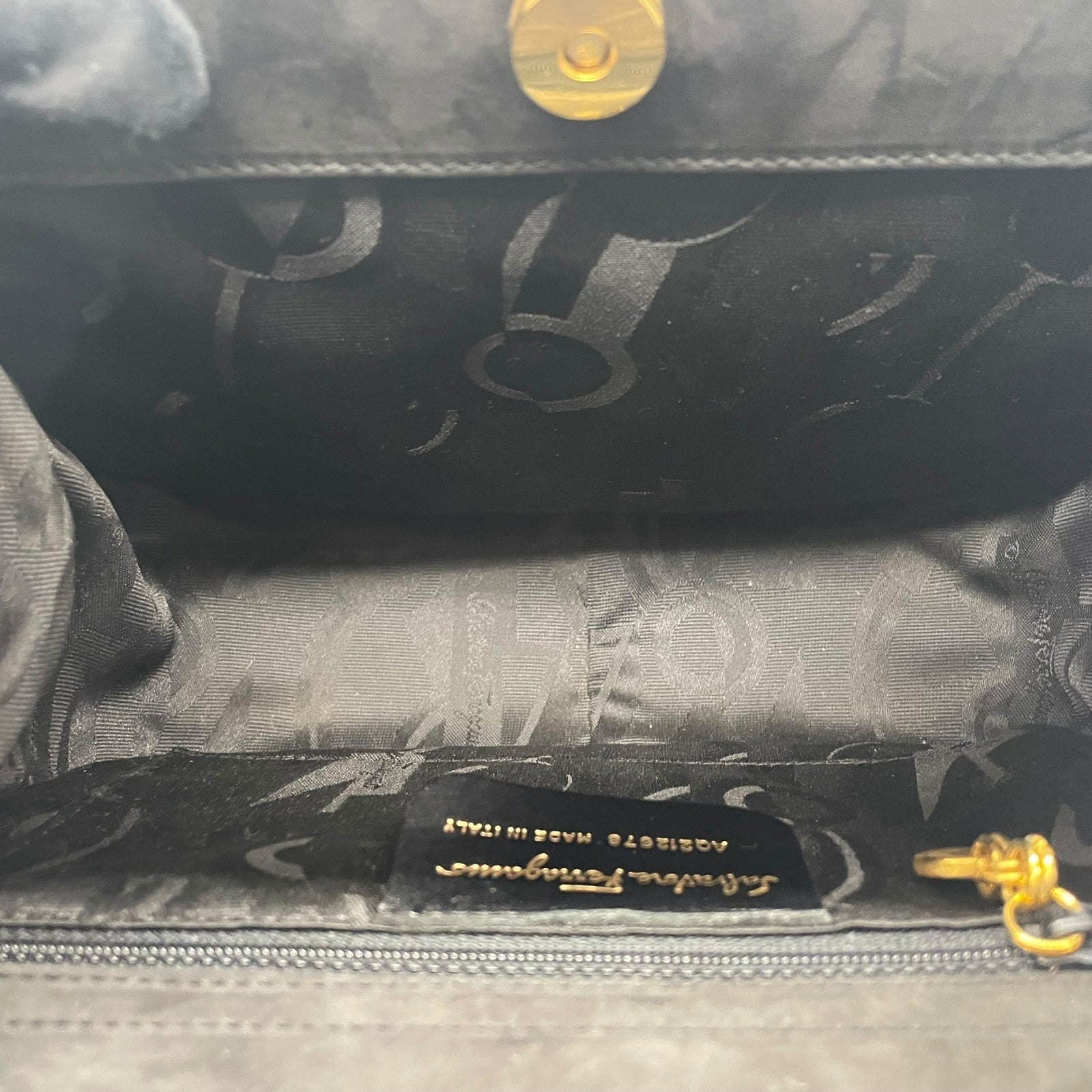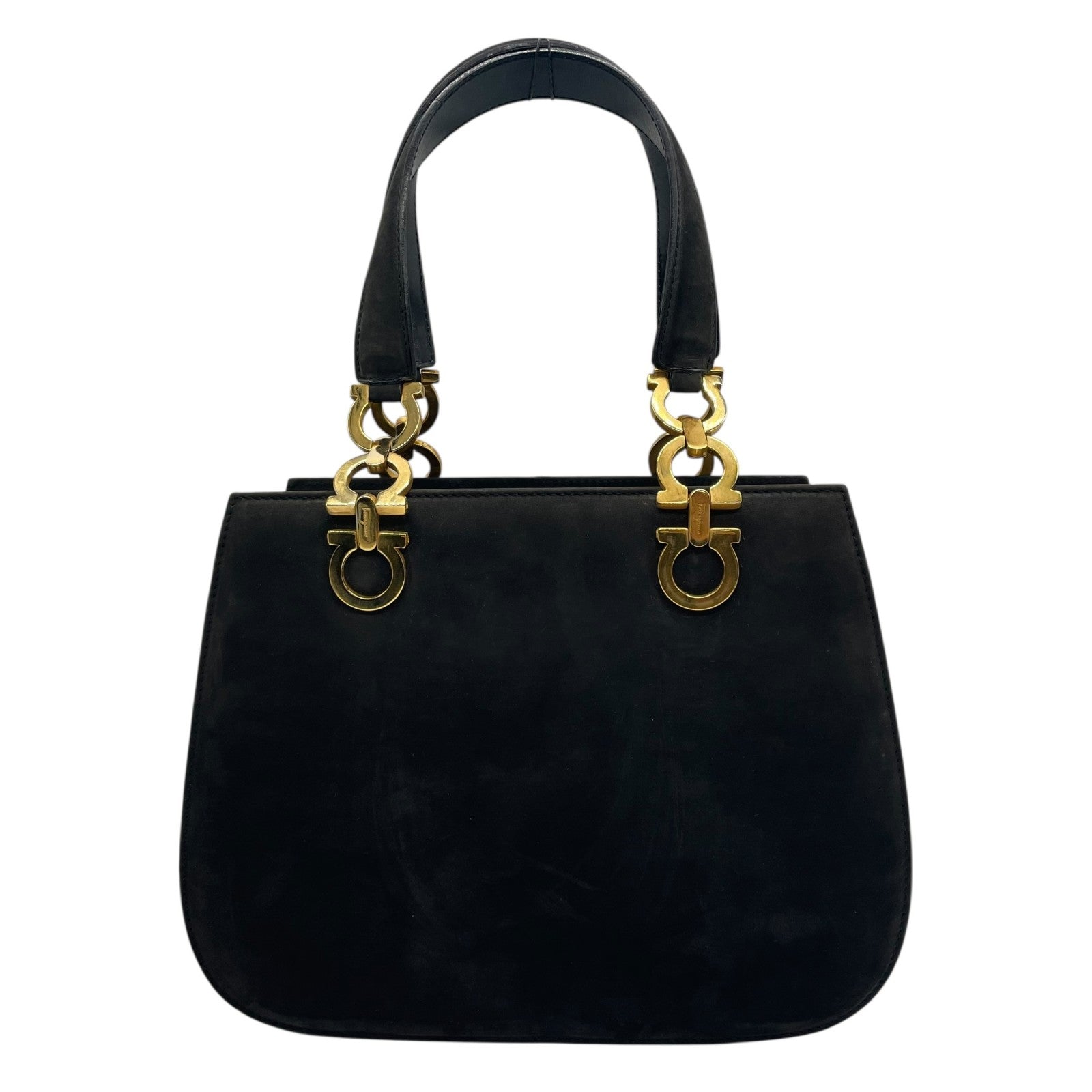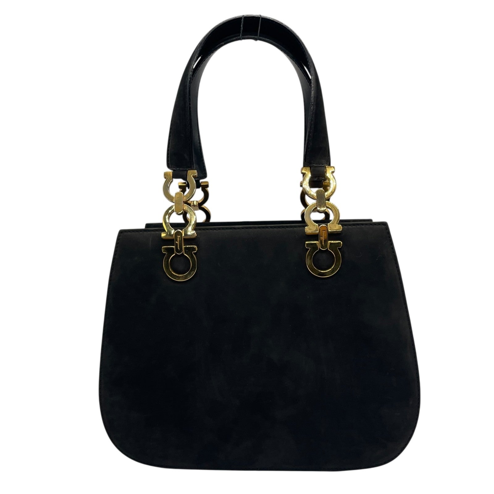 美品 Salvatore Ferragamo フェラガモ ガンチーニ 2WAY ハンドバッグ ショルダーバッグ 黒 ブラック AQ21 ゴールド金具 スエード レディース ヴィンテージ品 E