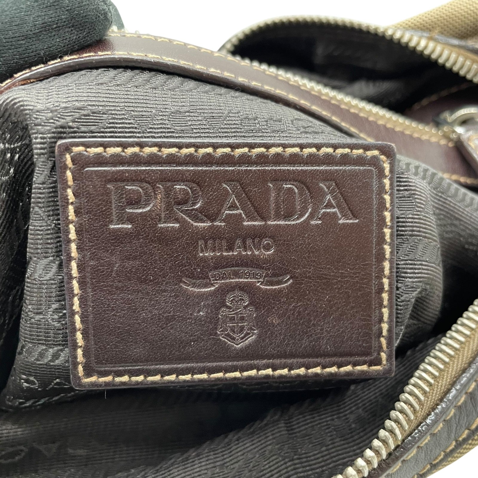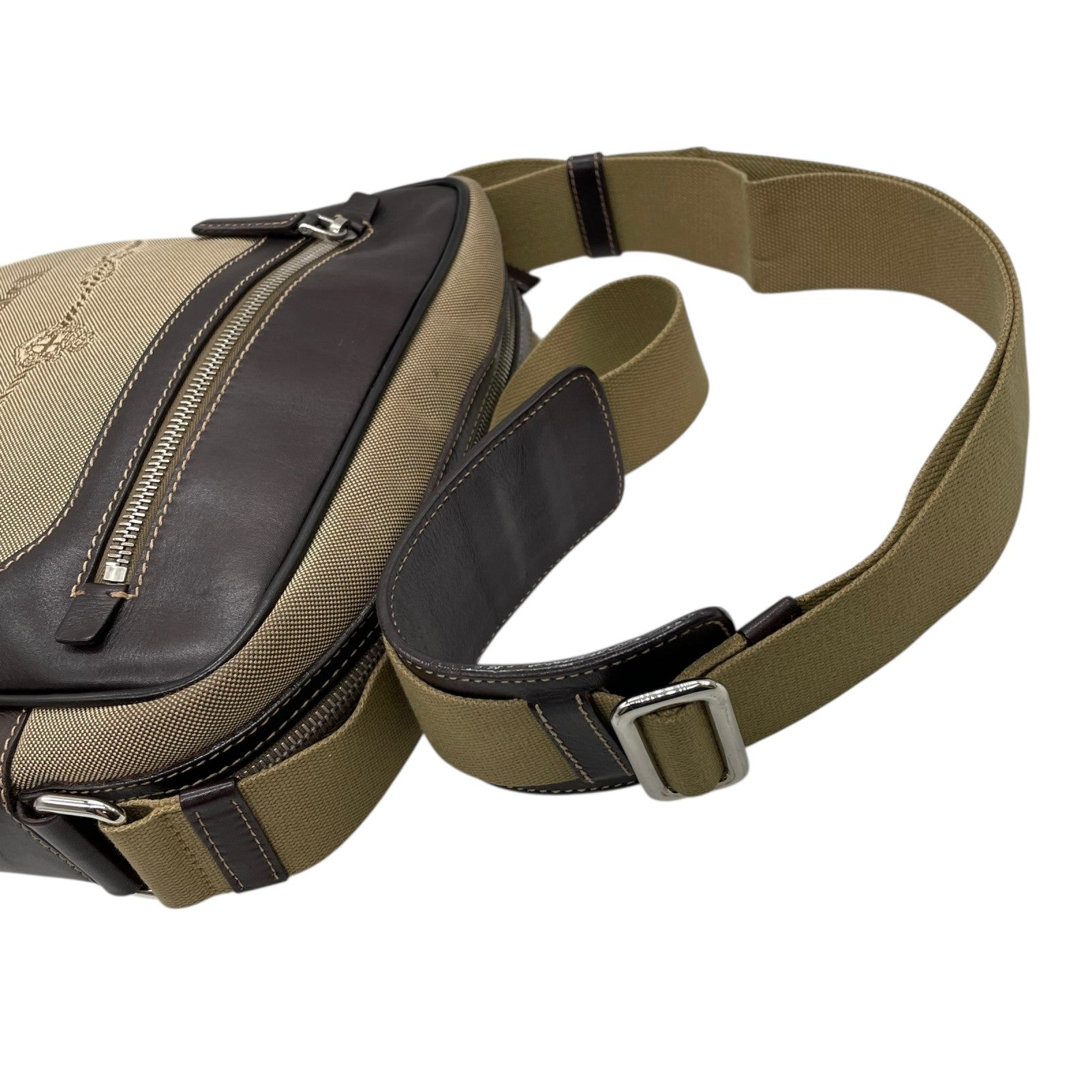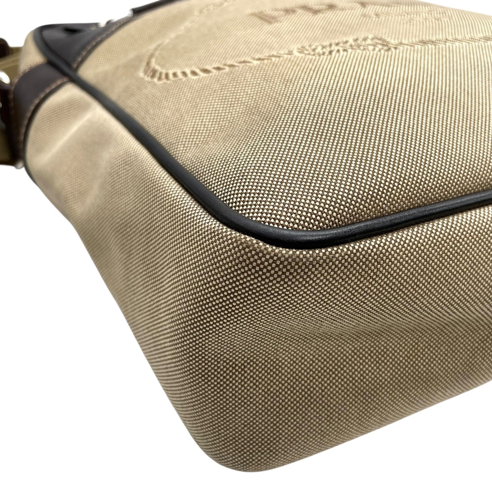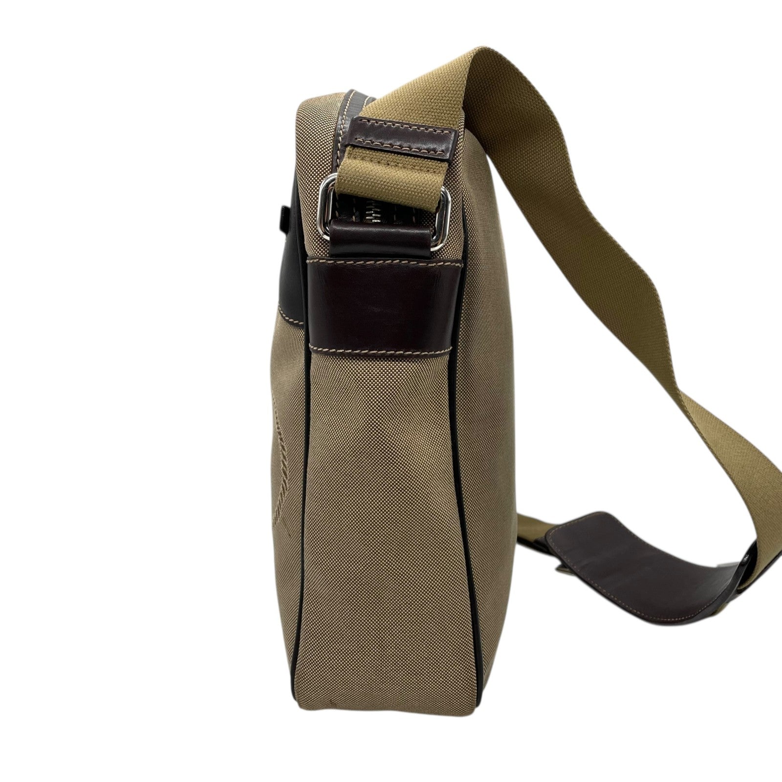 美品 PRADA プラダ ショルダーバッグ ジャガード VA0644 キャンバス レザー ベージュ ブラウン シルバー金具 斜め掛け可 クロスボディ ロゴ メンズ レディース Q