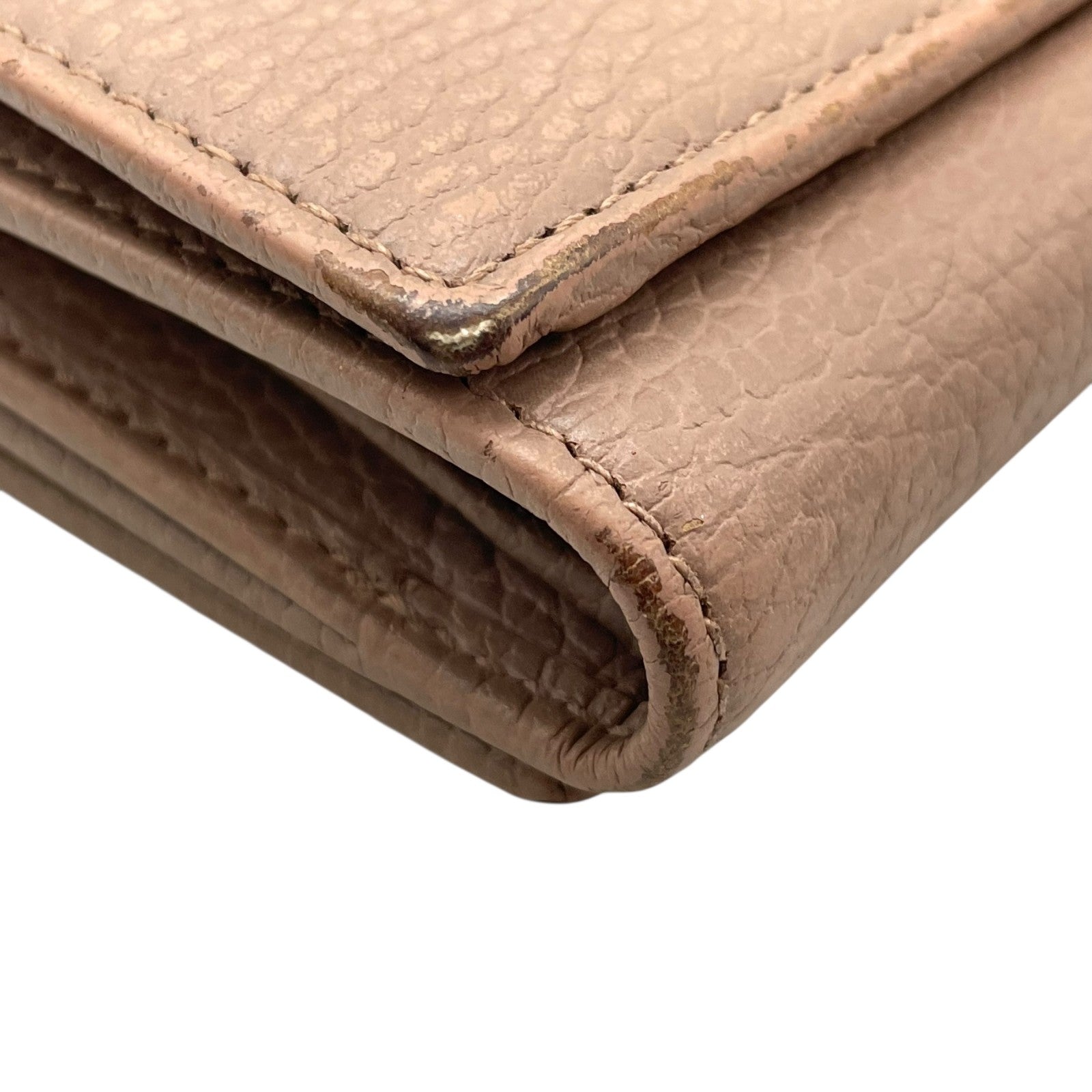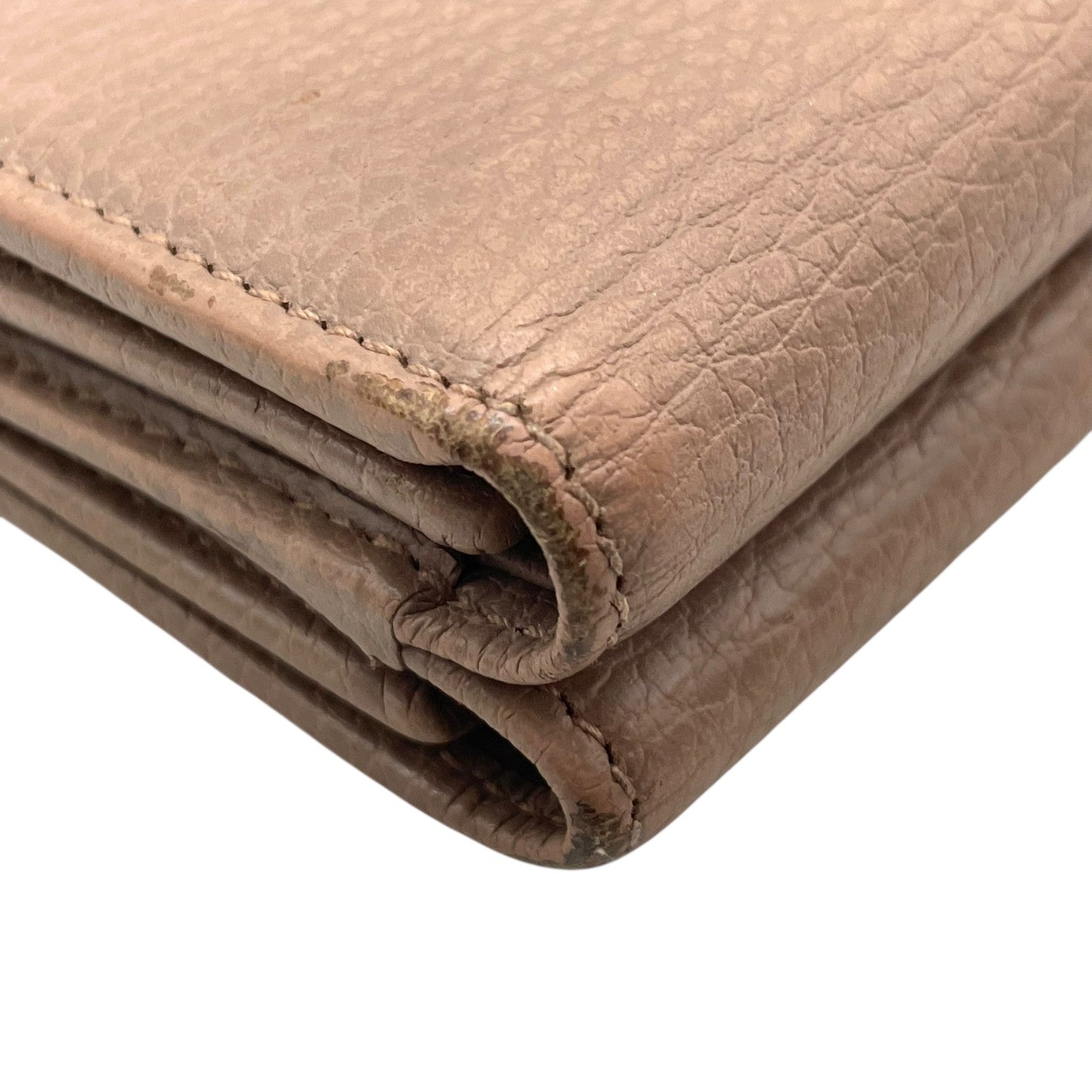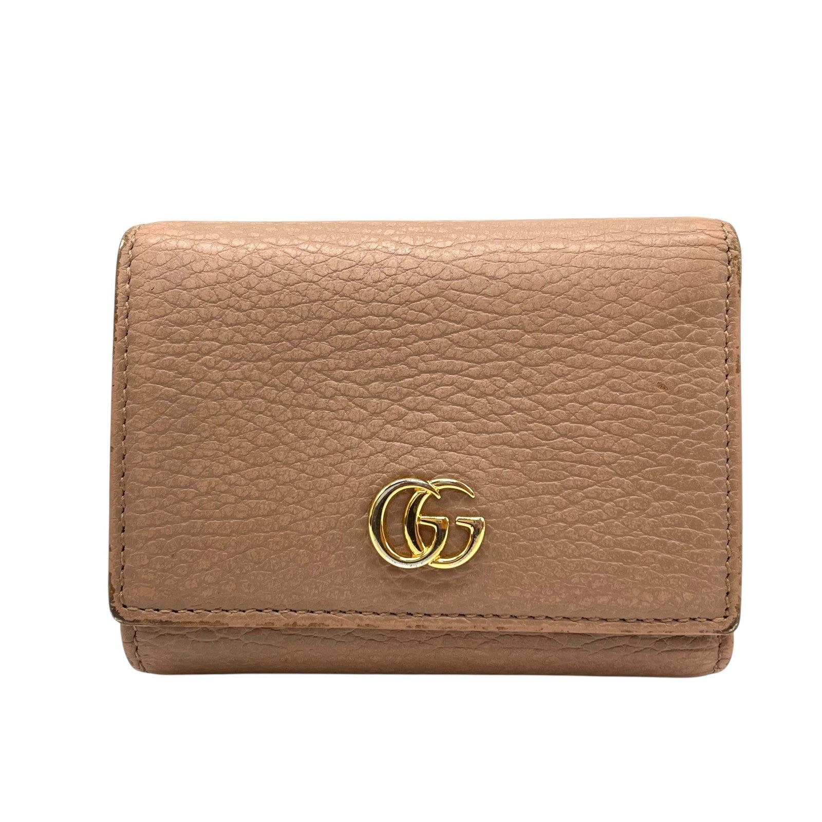 GUCCI グッチ GGマーモント 三つ折り財布 474746 ピンクベージュ レザー 本革 シボ革 ゴールド金具 レディース W2