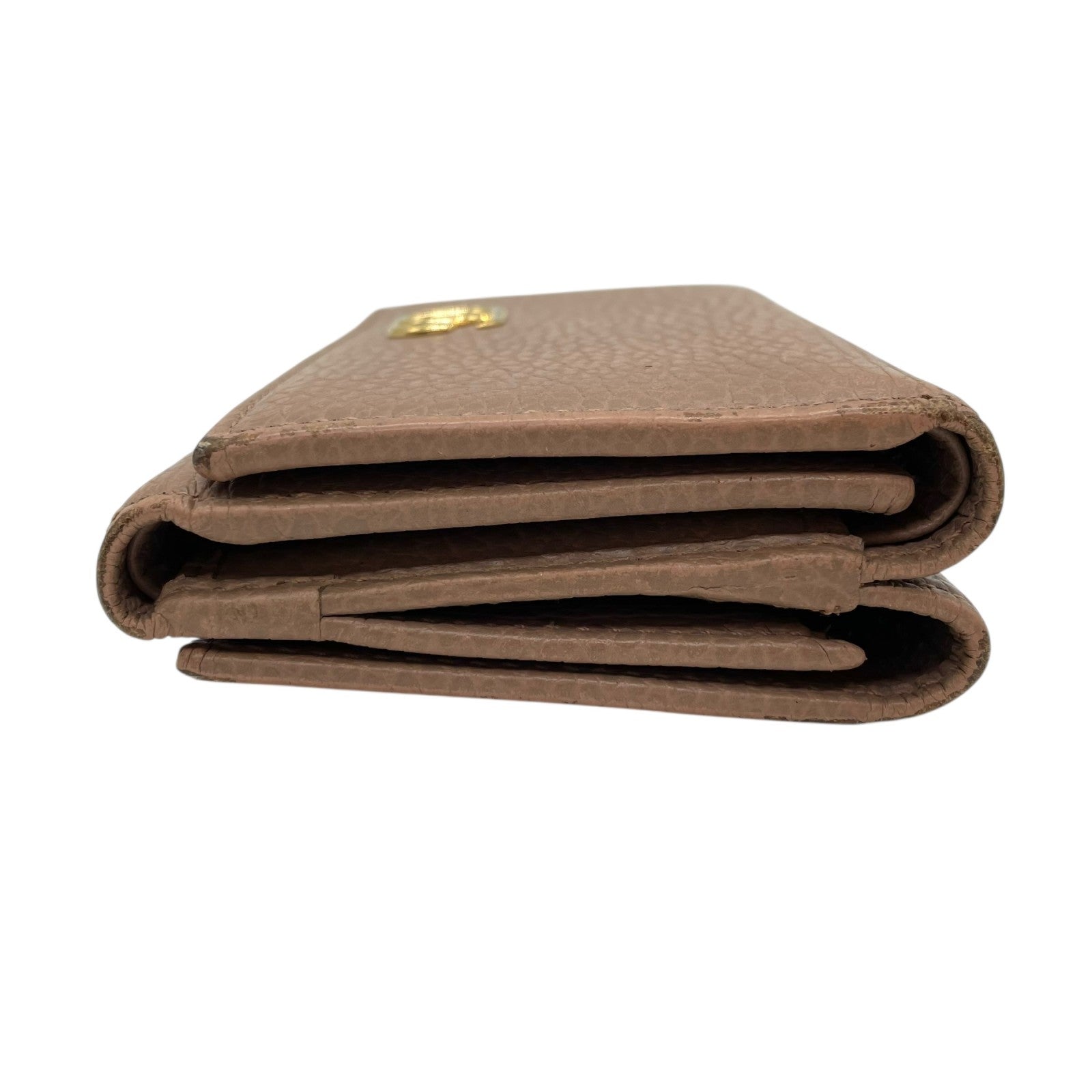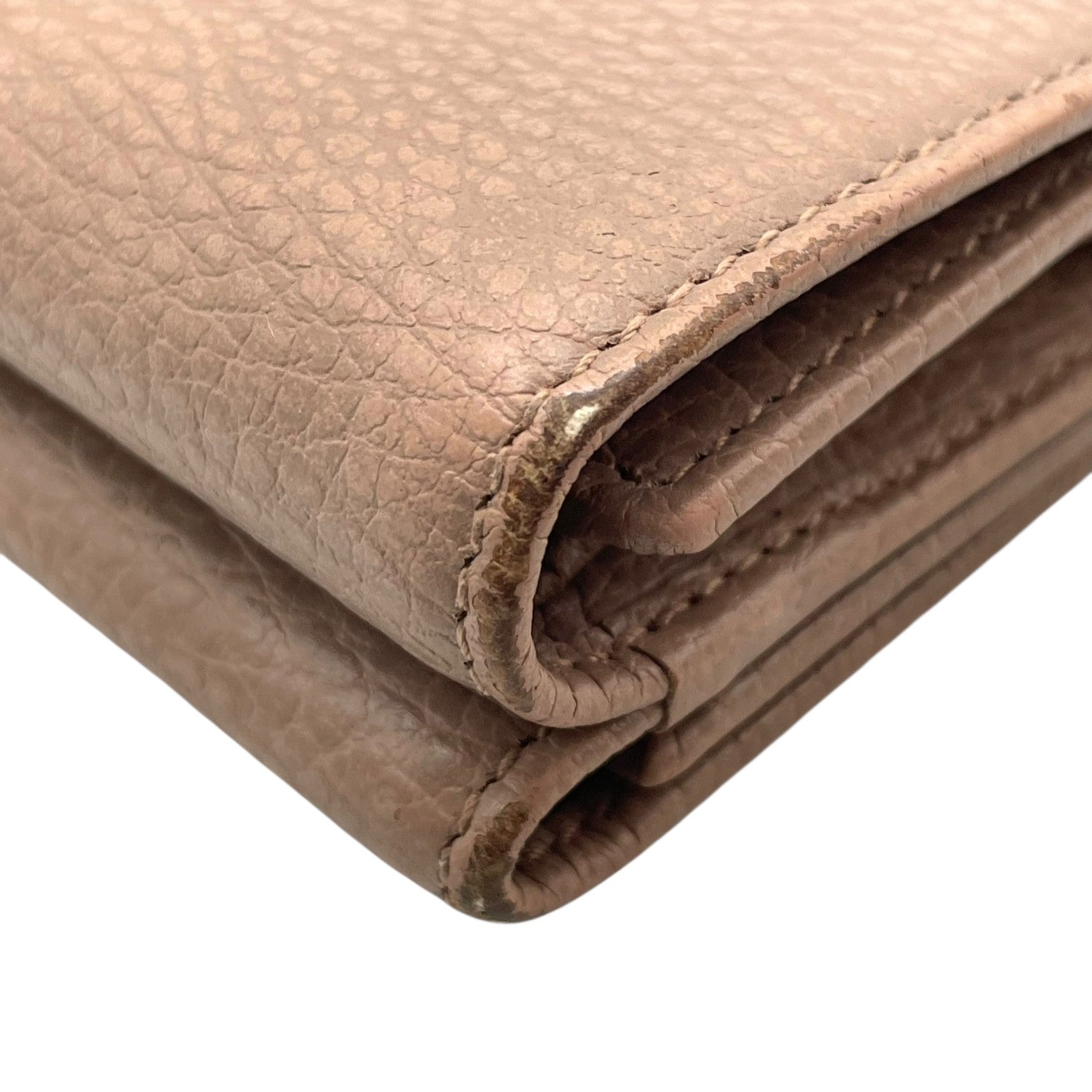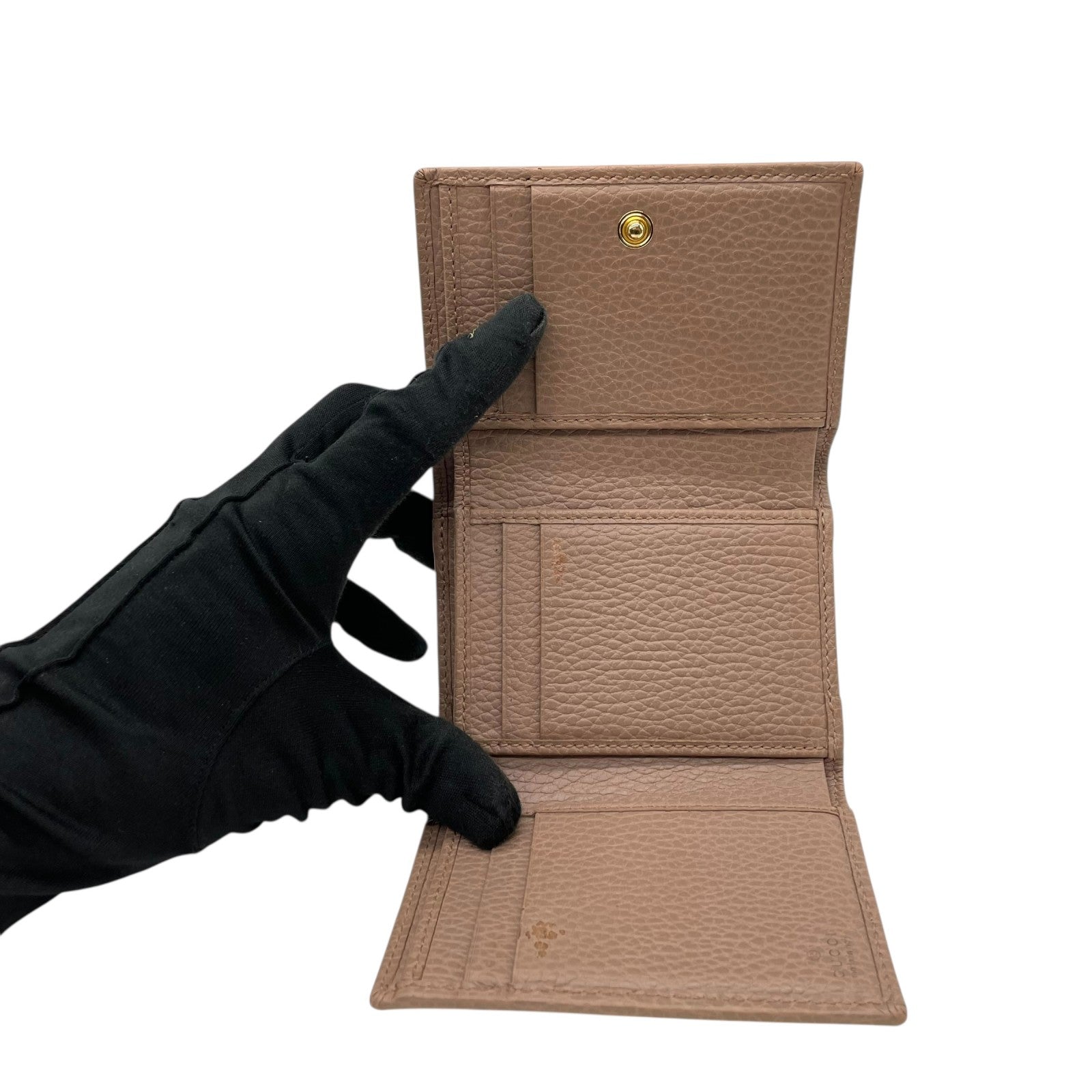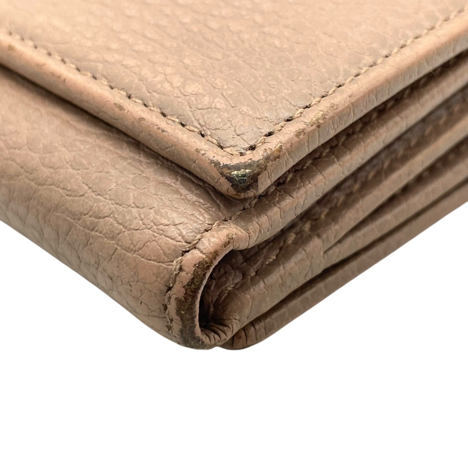 GUCCI グッチ GGマーモント 三つ折り財布 474746 ピンクベージュ レザー 本革 シボ革 ゴールド金具 レディース W2