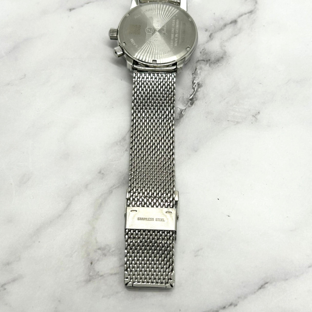| Production features | [Working item / Almost new / Cleaned] This product is a men's watch from the "100th Anniversary Series" of the German watch brand ZEPPELIN. This is one of the brand's signature series, created to commemorate the 100th anniversary of the airship ZEPPELIN. The classic dial design and dome-shaped glass are distinctive, evoking the image of an airship's body. Feature Brand: ZEPPELIN Model: 100th Anniversary Model 7640-1 Movement: Quartz (battery-powered) Case Shape: Round Case color: Silver Dial Color: White Material: Stainless Steel Specifications: Chronograph / Big Date / Alarm / Tachymeter / Telemeter / Made in Germany Condition: Working / Cleaned In addition to the chronograph function, this is a highly functional model equipped with a variety of functions such as a big date, alarm, tachymeter, and telemeter. The silver mesh bracelet gives a sophisticated and intellectual impression. |