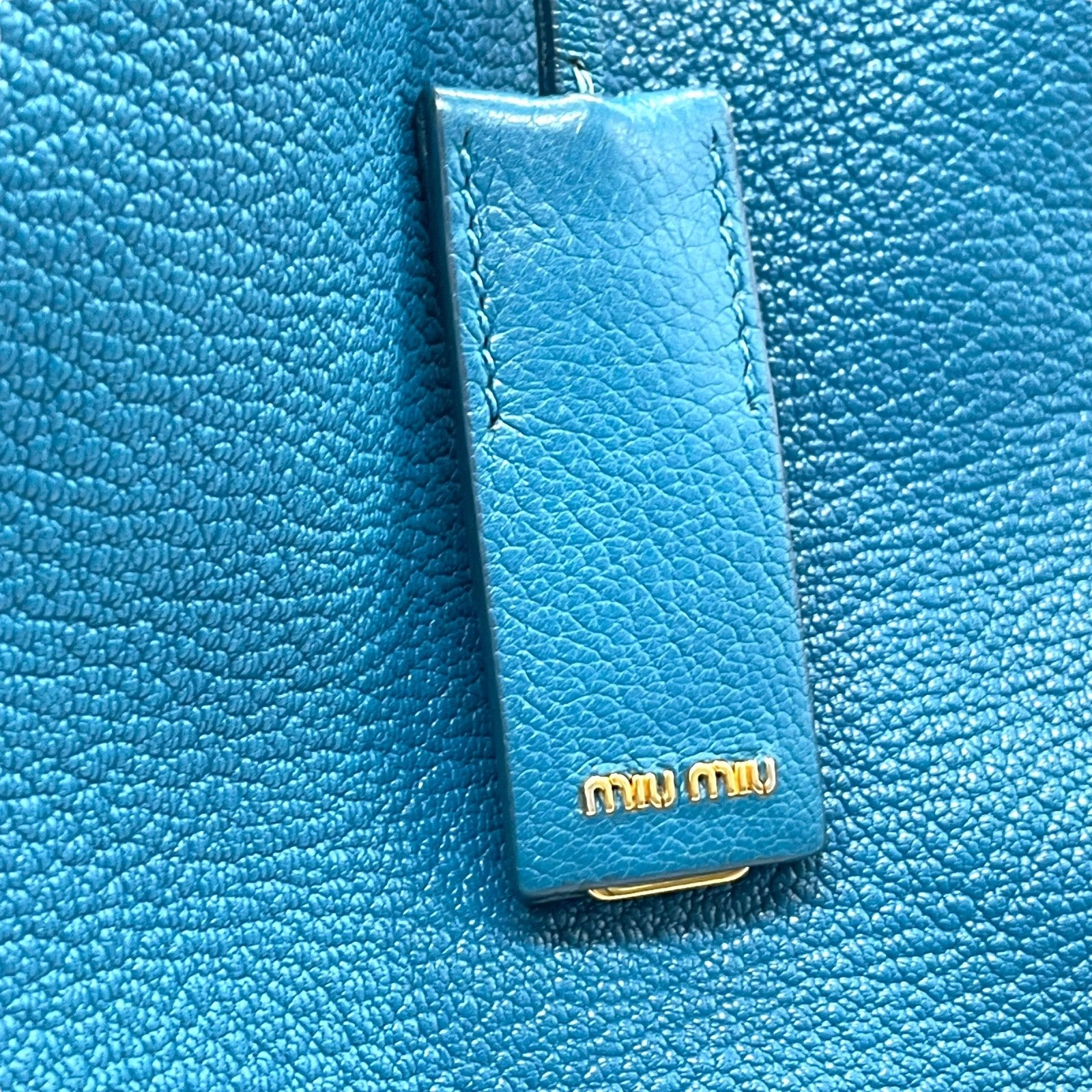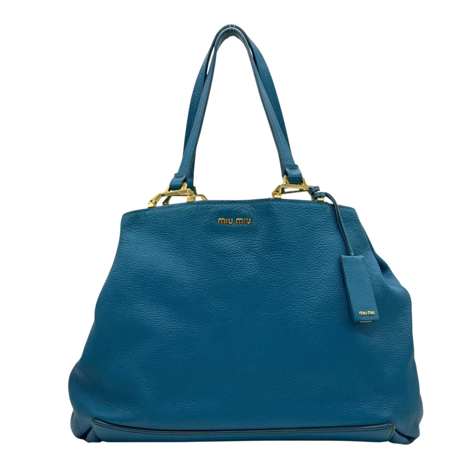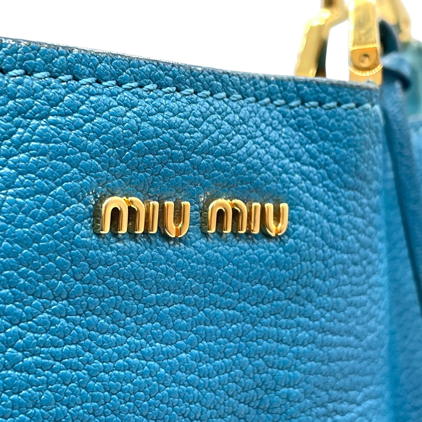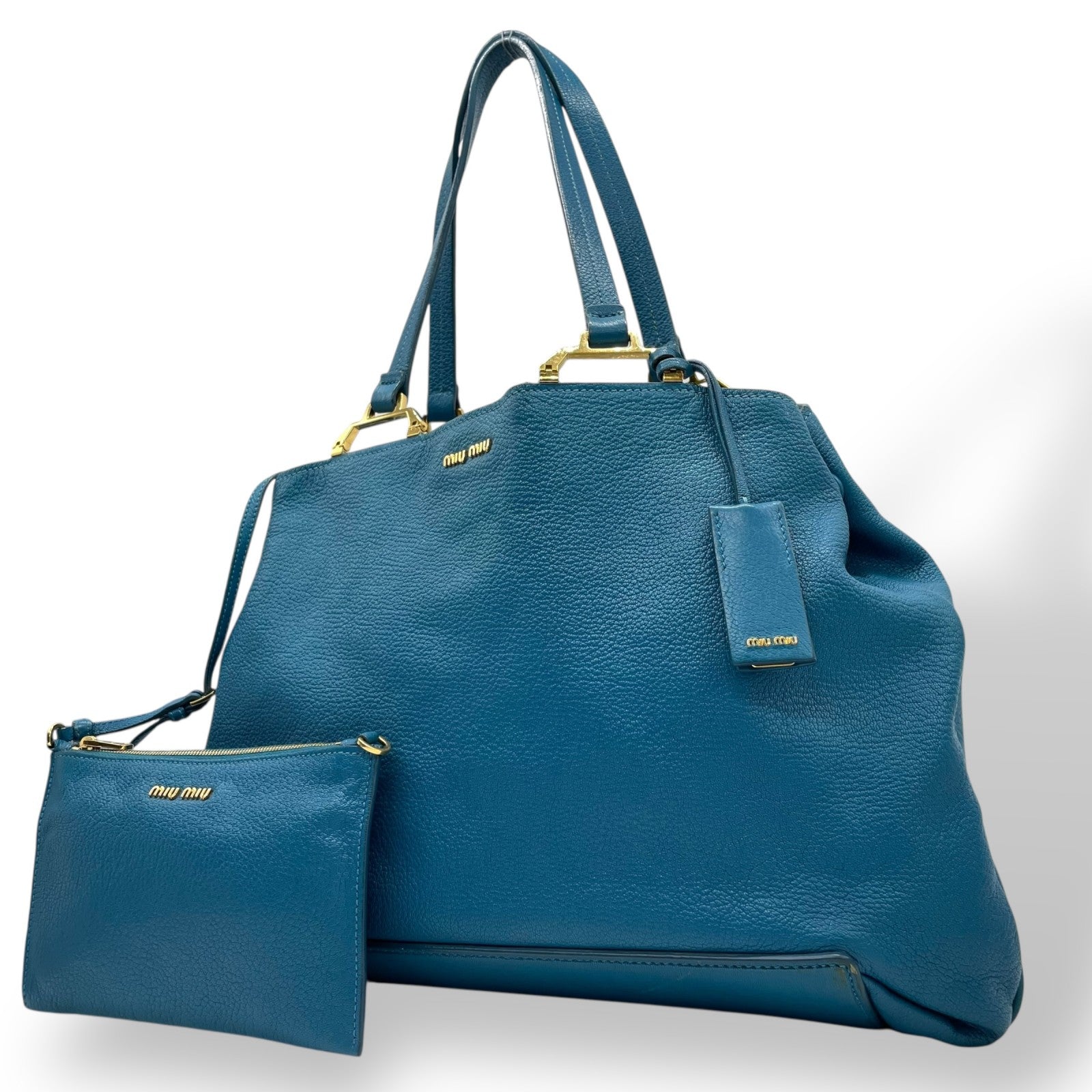 miumiu ミュウミュウ トートバッグ 青 ブルー 本革 レザー シボ革 大容量 肩掛け可能 A4収納 ゴールド金具 ポーチ付き レディース C4