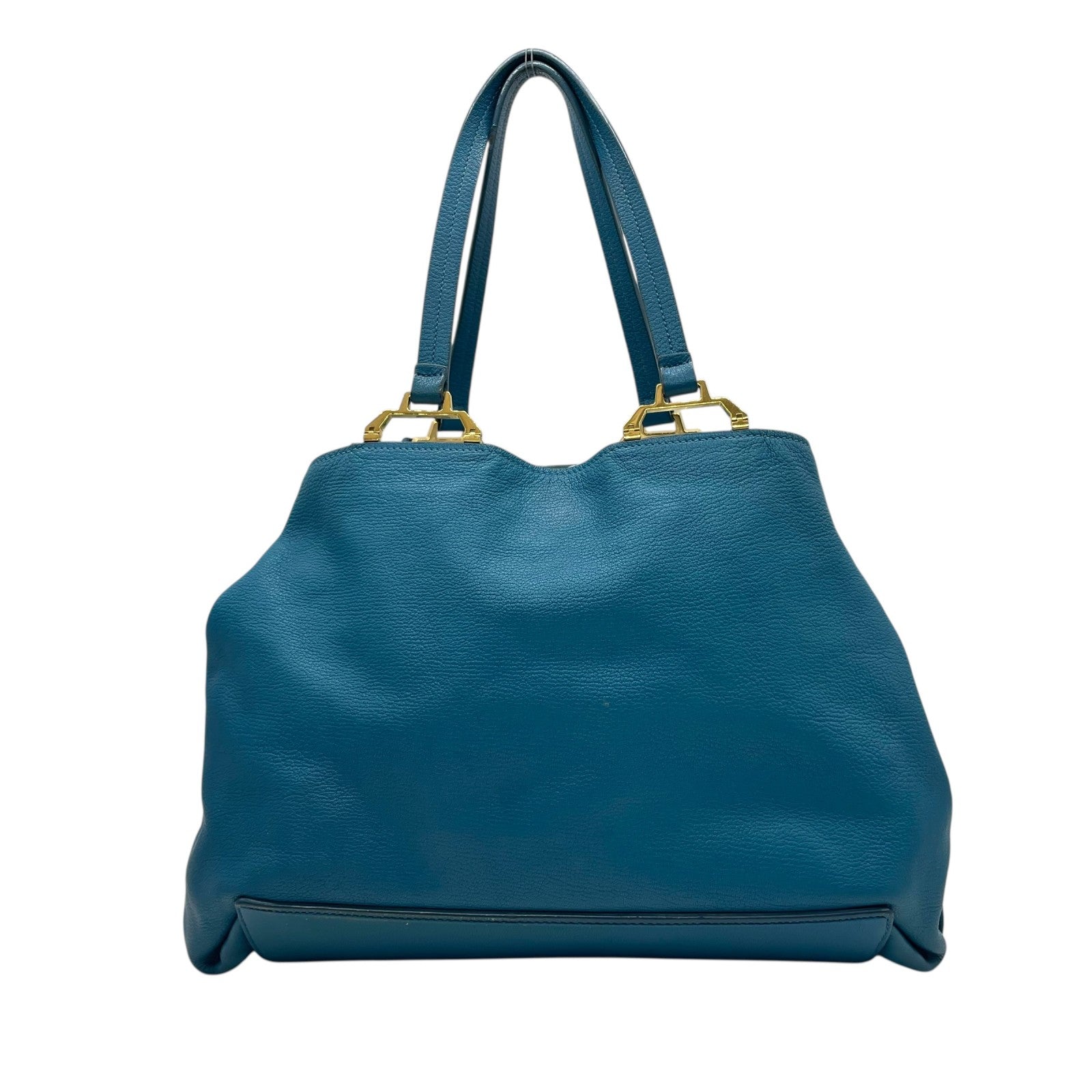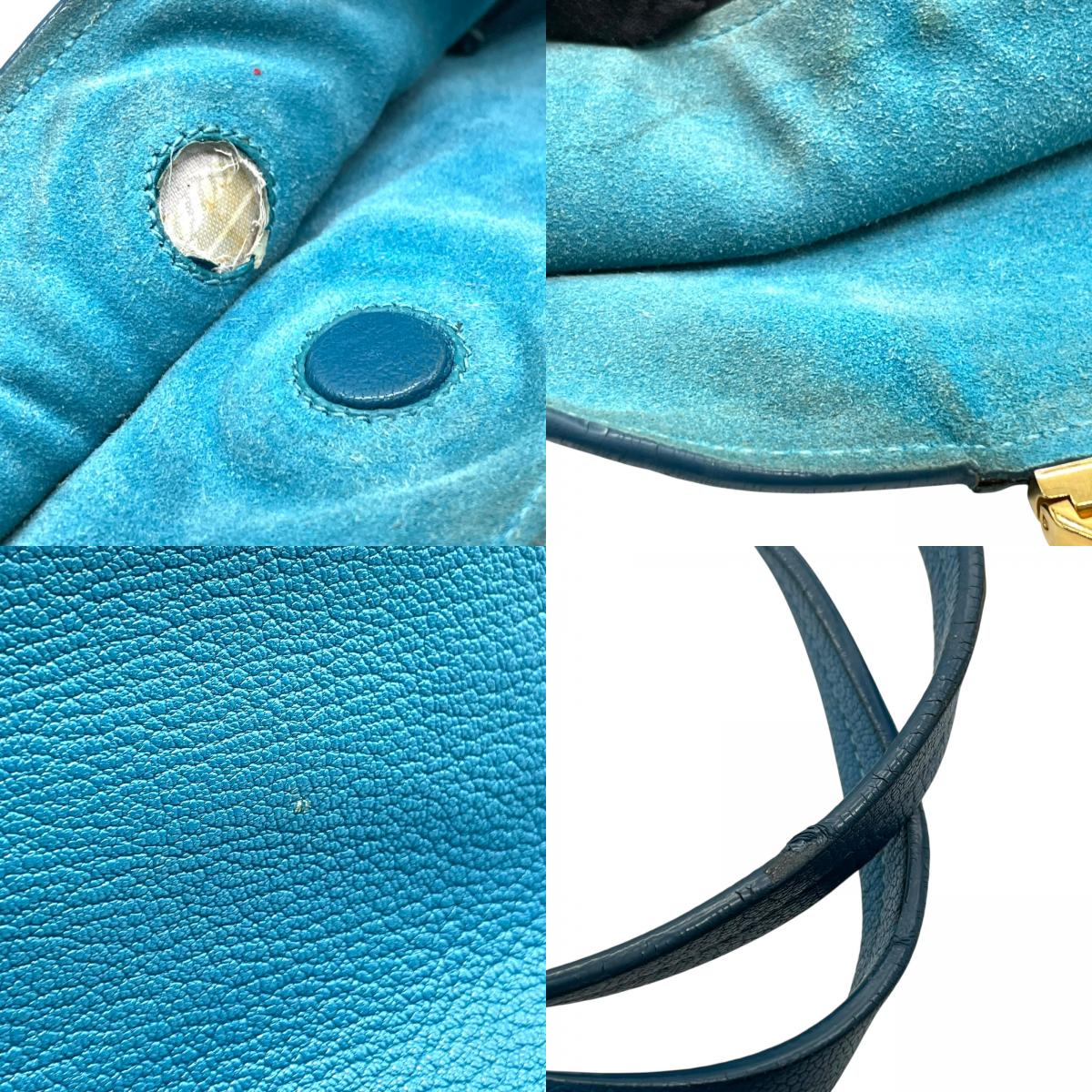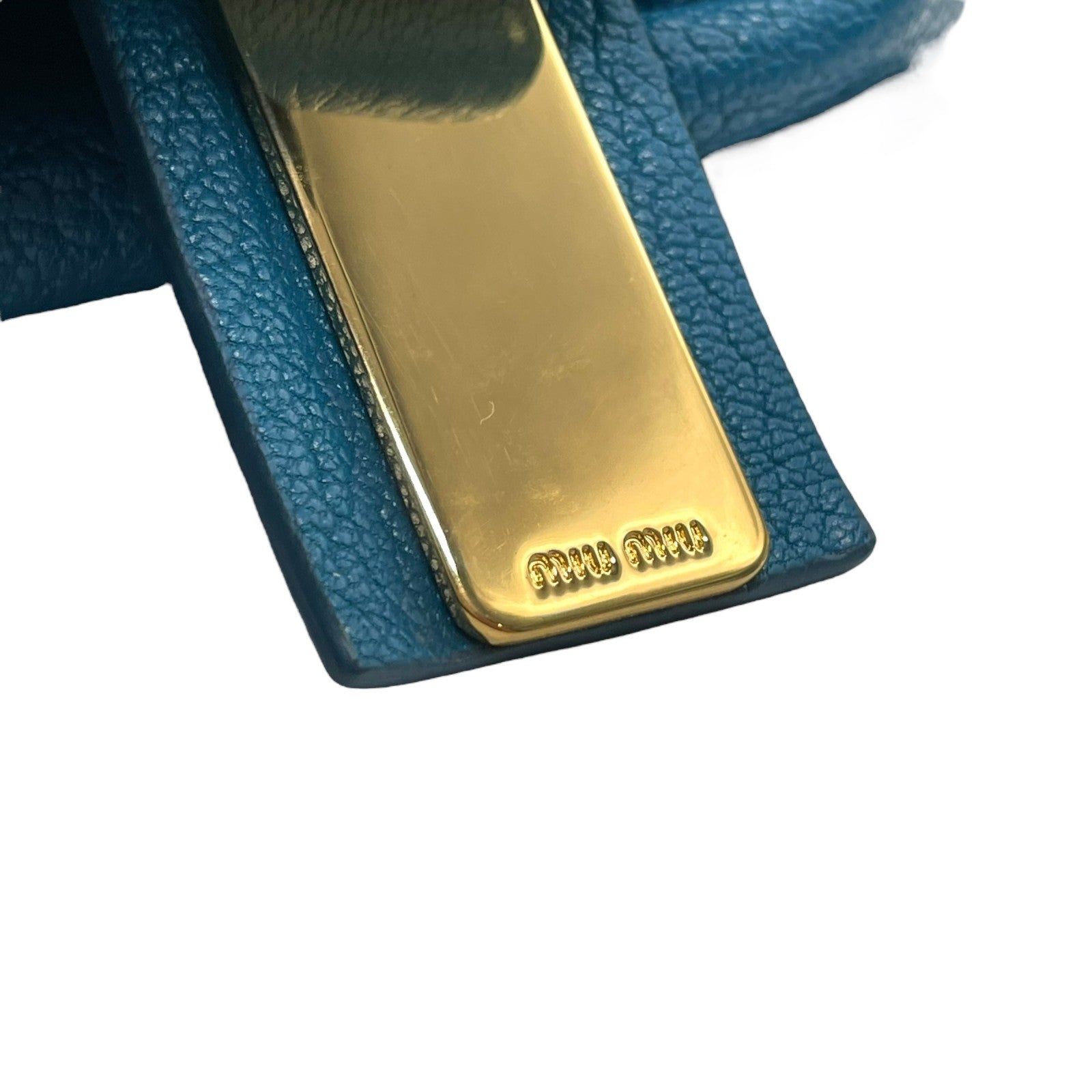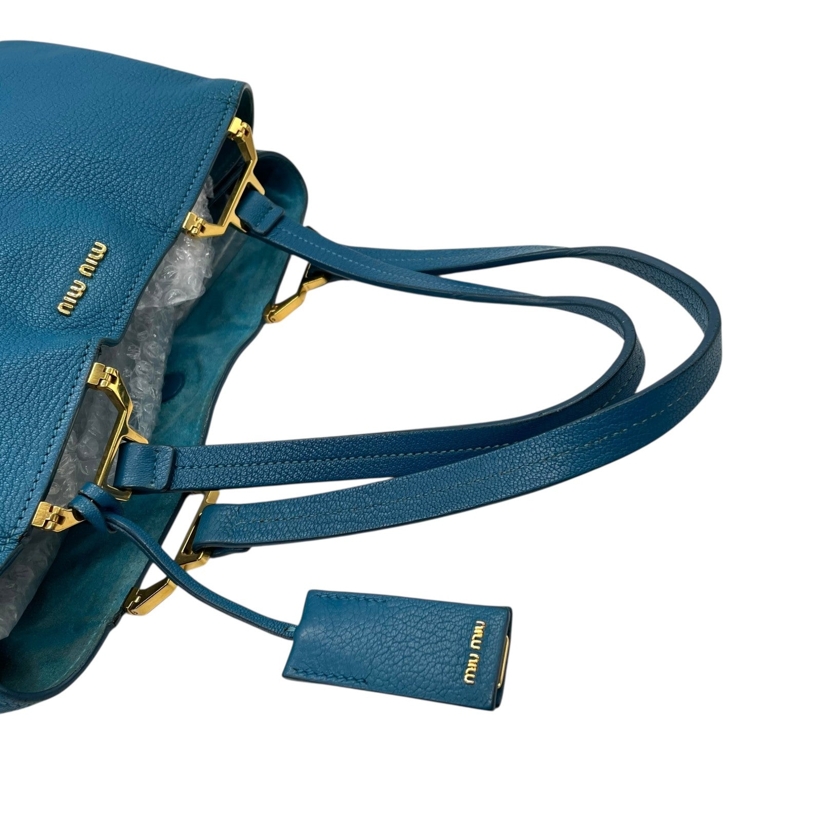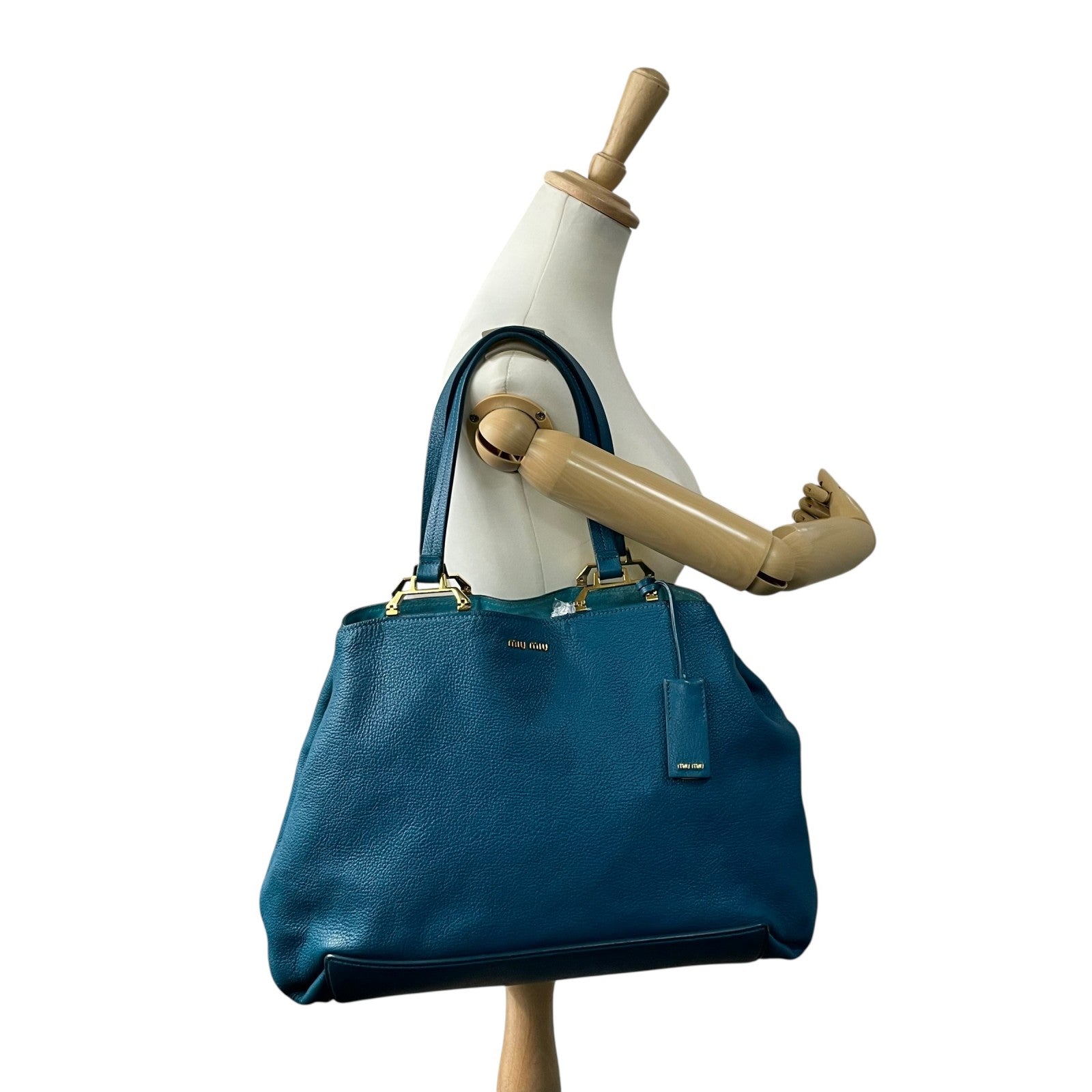 miumiu ミュウミュウ トートバッグ 青 ブルー 本革 レザー シボ革 大容量 肩掛け可能 A4収納 ゴールド金具 ポーチ付き レディース C4