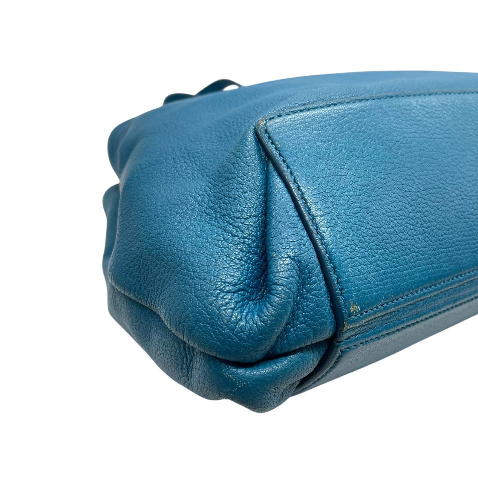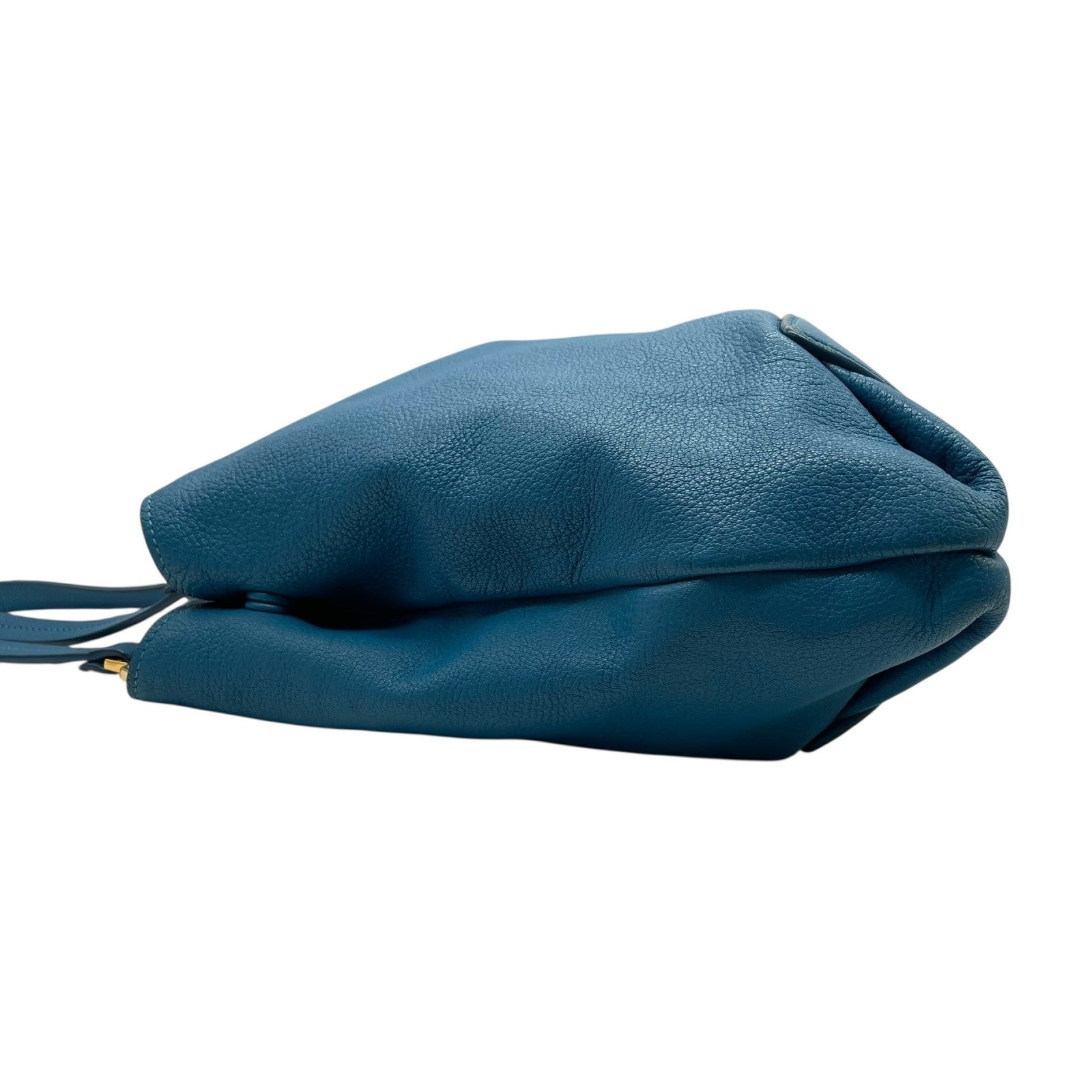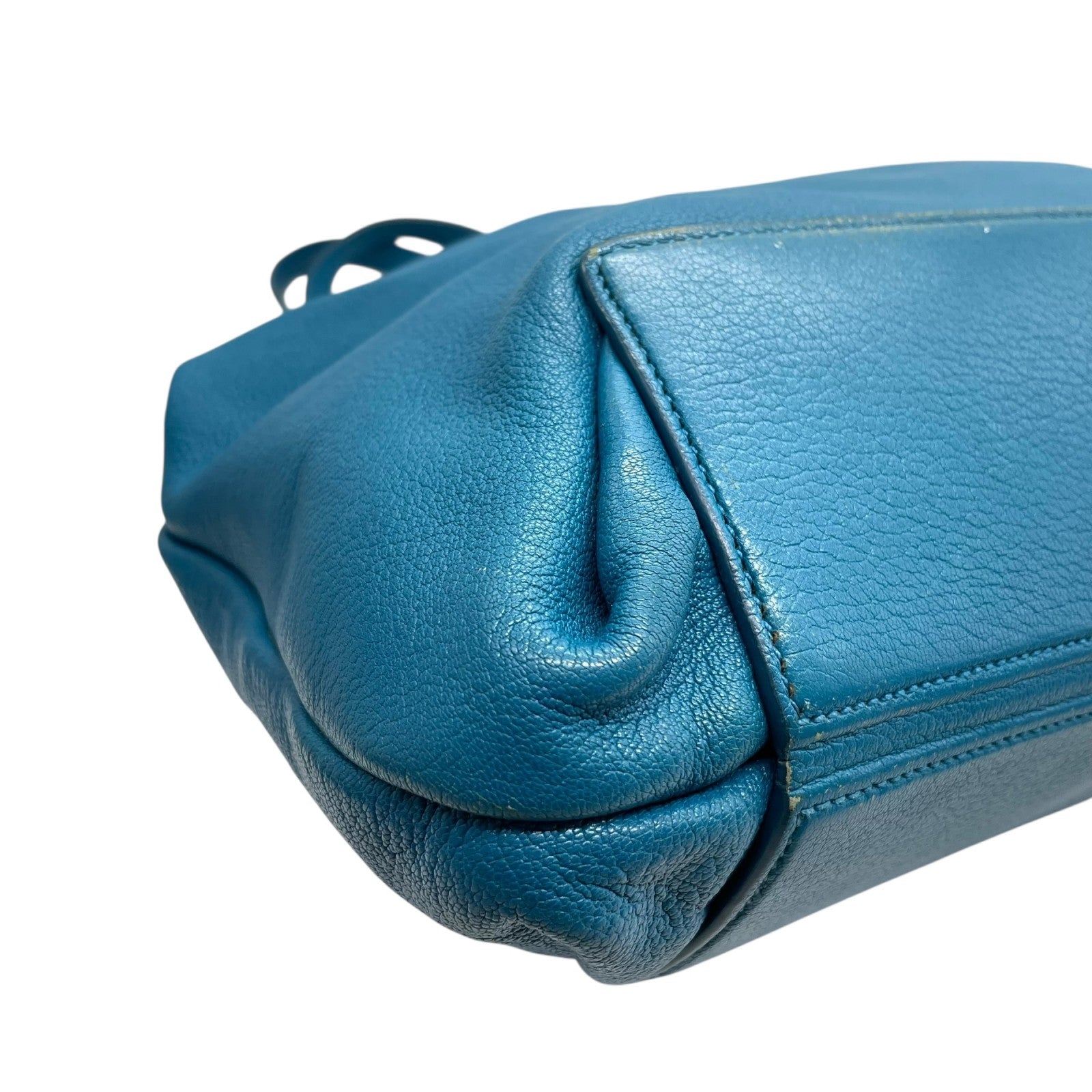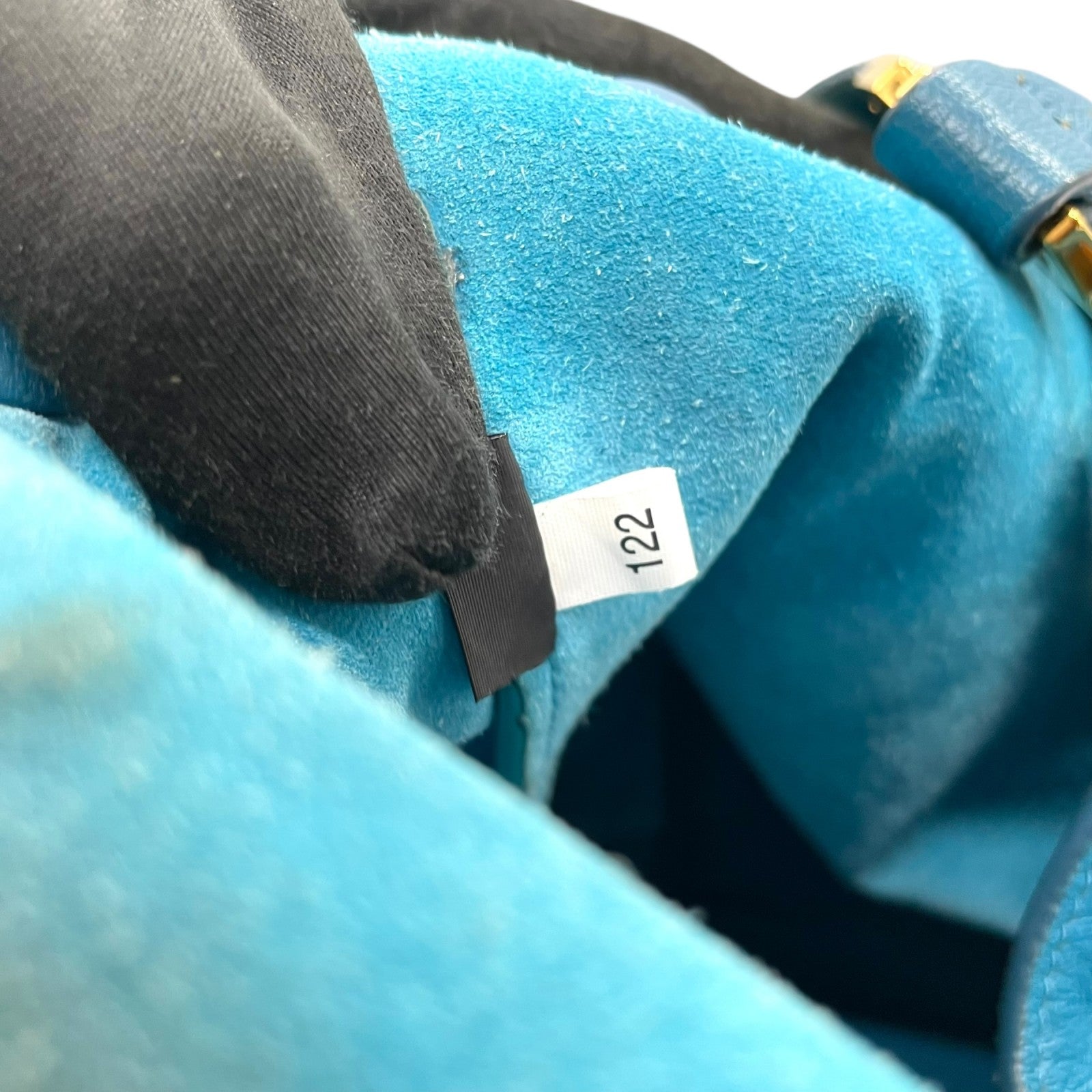 miumiu ミュウミュウ トートバッグ 青 ブルー 本革 レザー シボ革 大容量 肩掛け可能 A4収納 ゴールド金具 ポーチ付き レディース C4