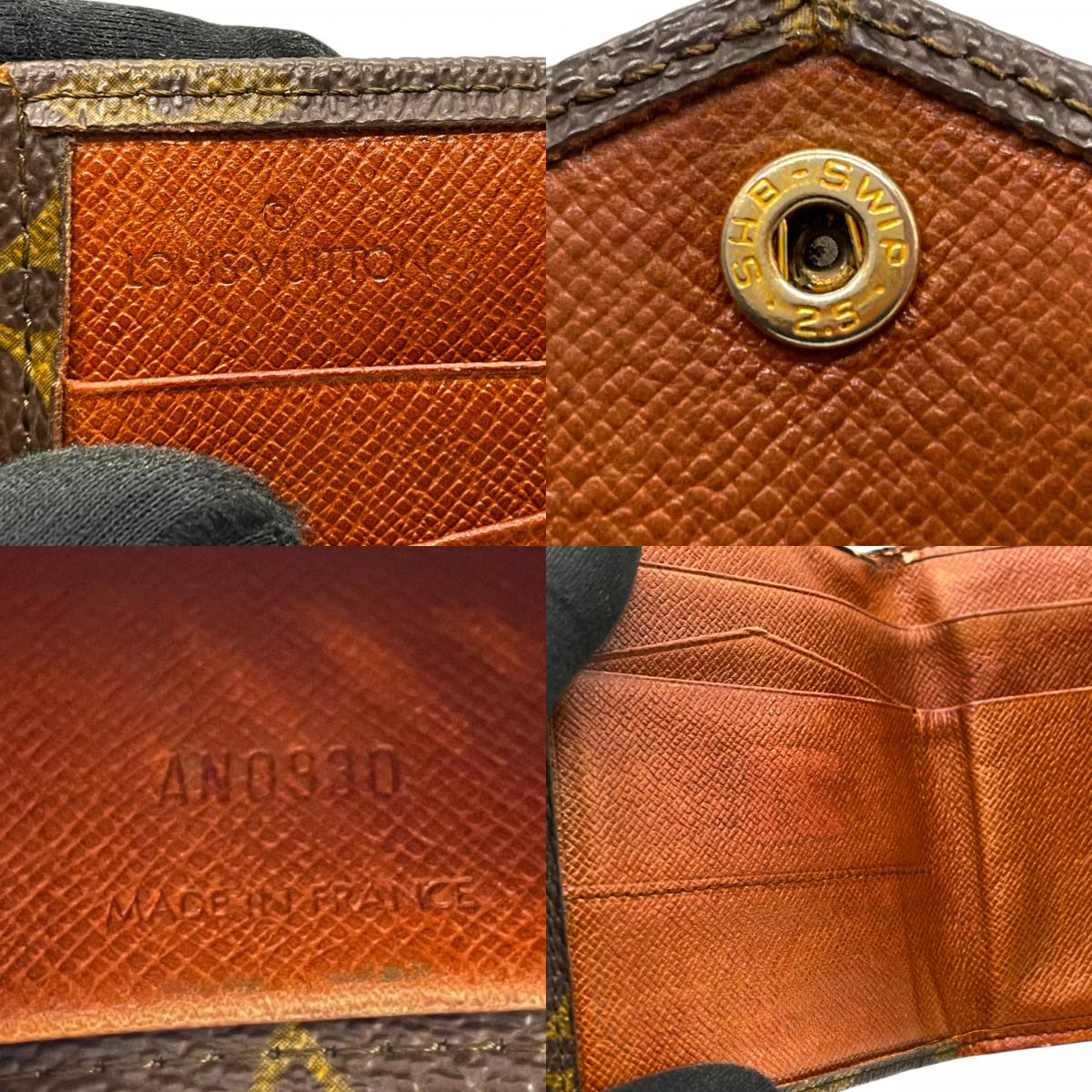 LOUIS VUITTON ルイヴィトン モノグラム コンパクトウォレット 三つ折り財布 Wホック ポルトモネビエ M61660 茶 ブラウン PVC レザー メンズ レディース M2