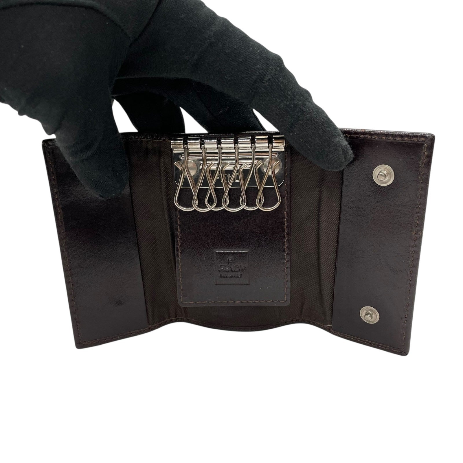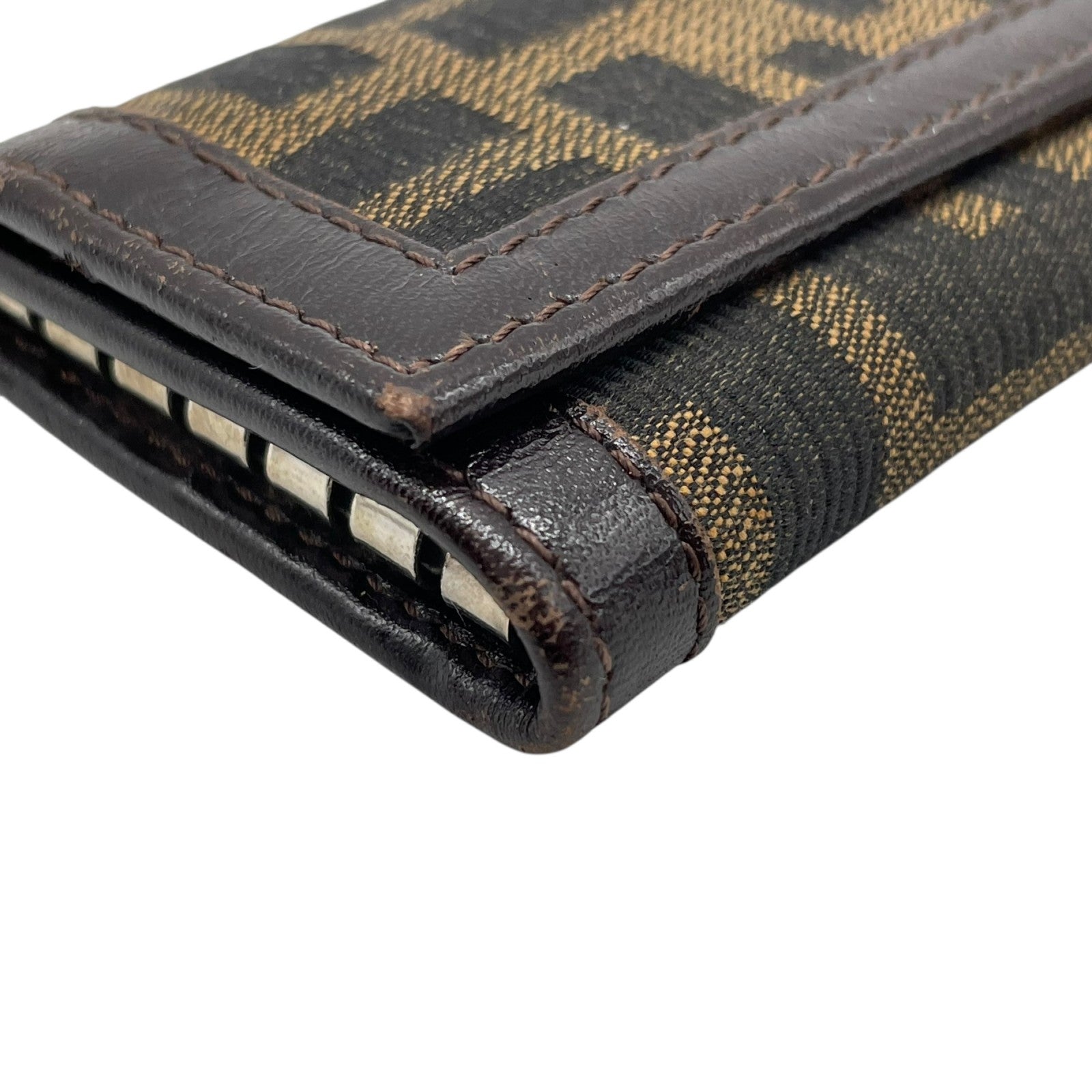 FENDI フェンディ ズッカ柄 6連キーケース キャンバス レザー 茶 ブラウン シルバー金具 FF柄 ヴィンテージ メンズ レディース M2