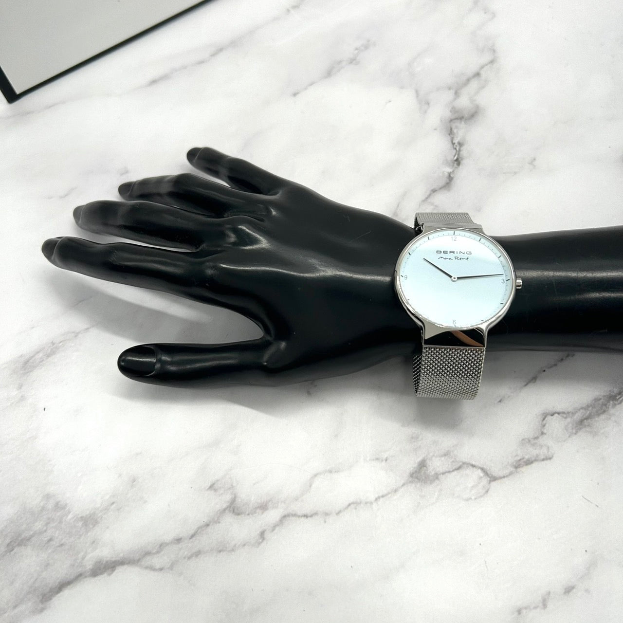 Bering Max Renée CA891 Quartz Watch, Silver, White Dial, Mesh Strap, Men's/Women's, Unisex, Scandinavian Minimalist Design, Sapphire Crystal, Stylish, Cleaned, Battery Replaced, BERING i4
