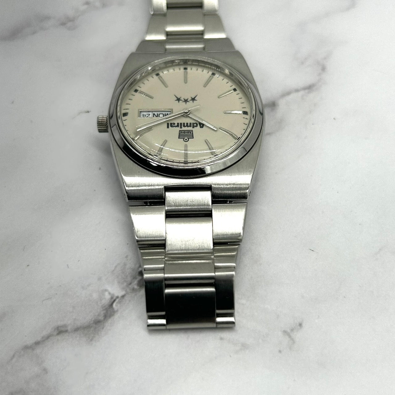 Battery replaced. Excellent condition. Admiral ADM 400 Men's Quartz Watch with Day/Date, Silver Ivory Dial, Three Star Display, Analog, Classic Vintage-Style Dress Watch, Stainless Steel, Cleaned. Fashion Watch i3.