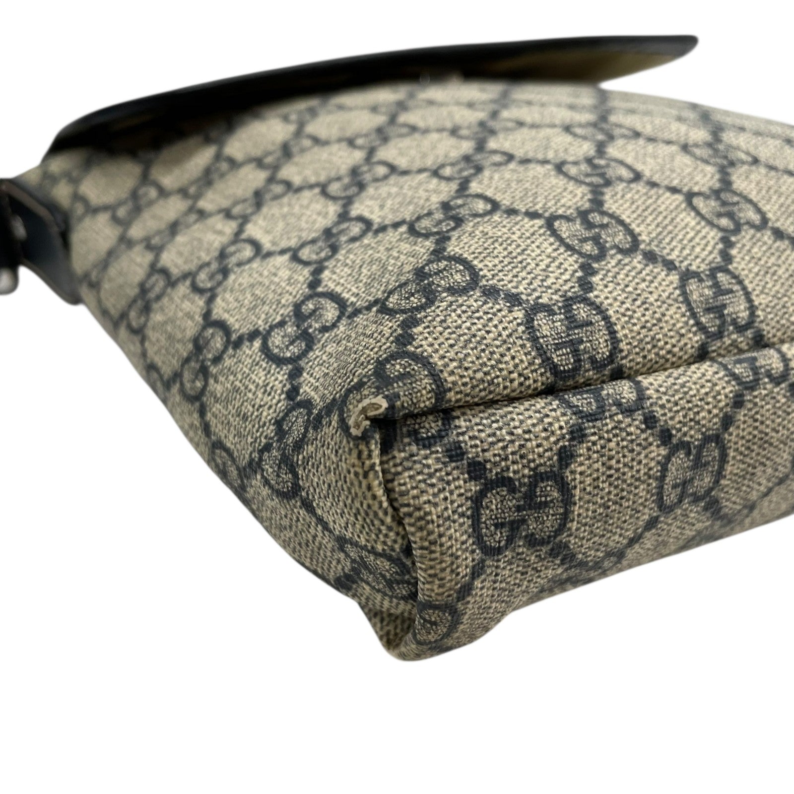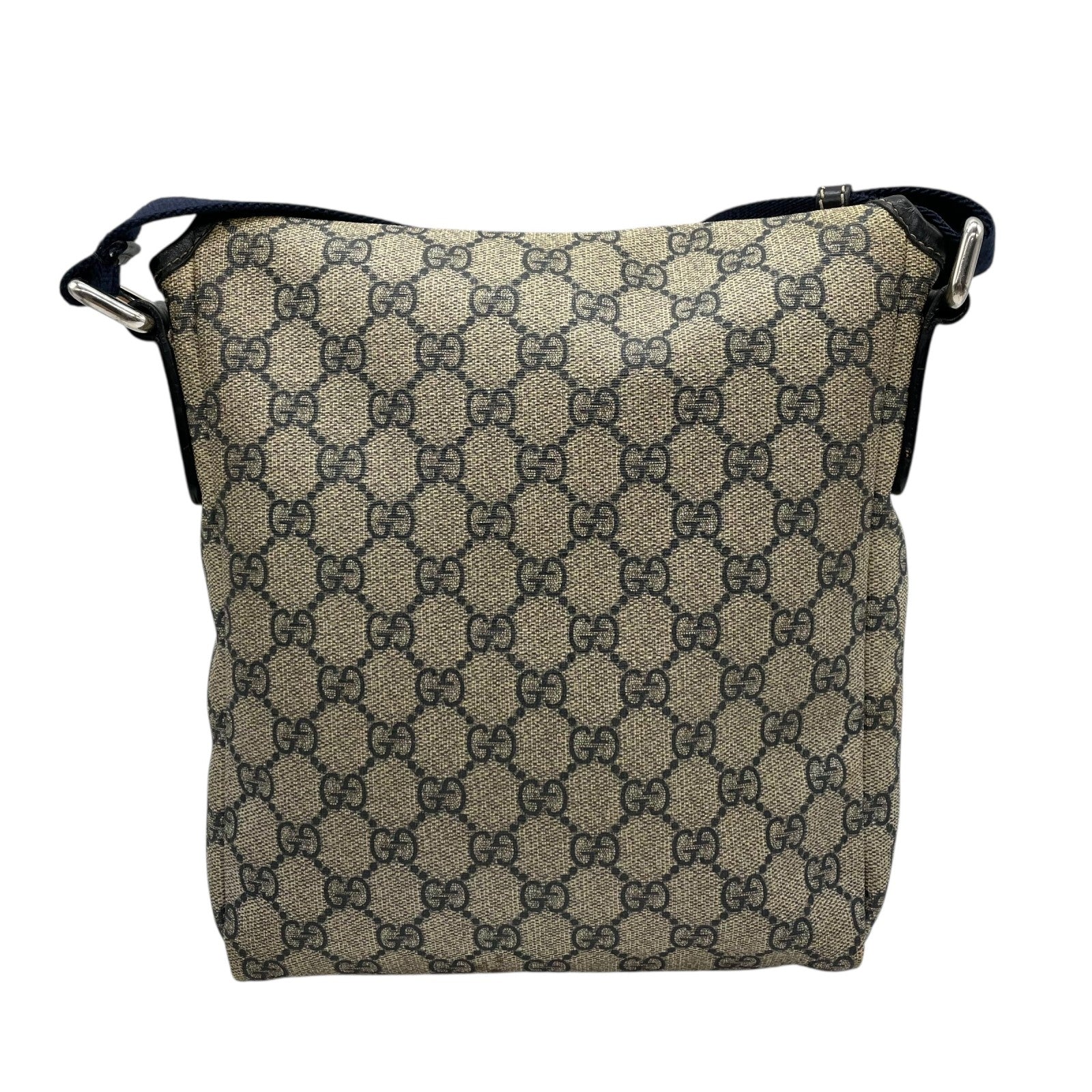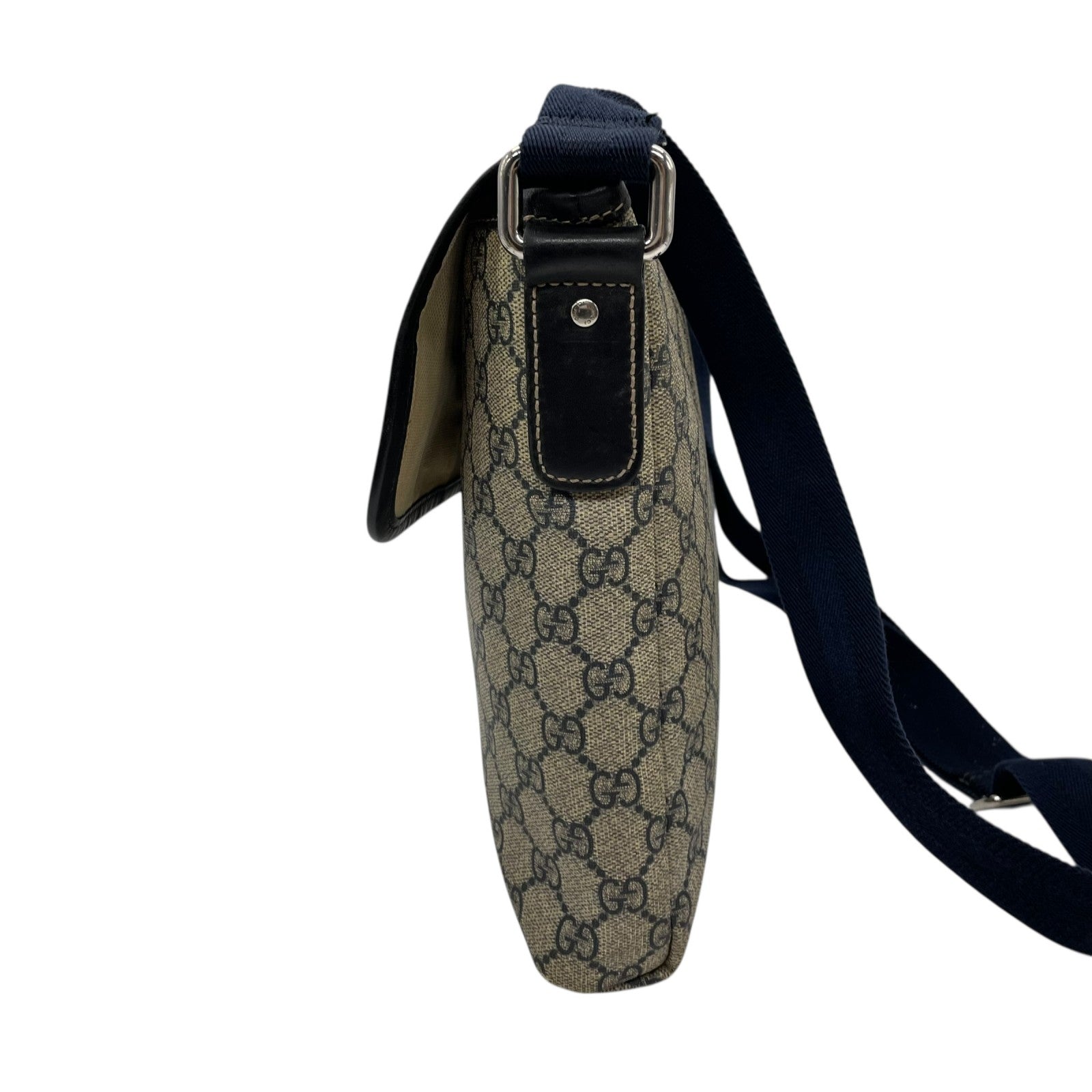GUCCI グッチ GGスプリーム ショルダーバッグ 223666 紺 ネイビー グレー PVC レザー シルバー金具 斜め掛け可 フラップ開閉 メンズ レディース K2