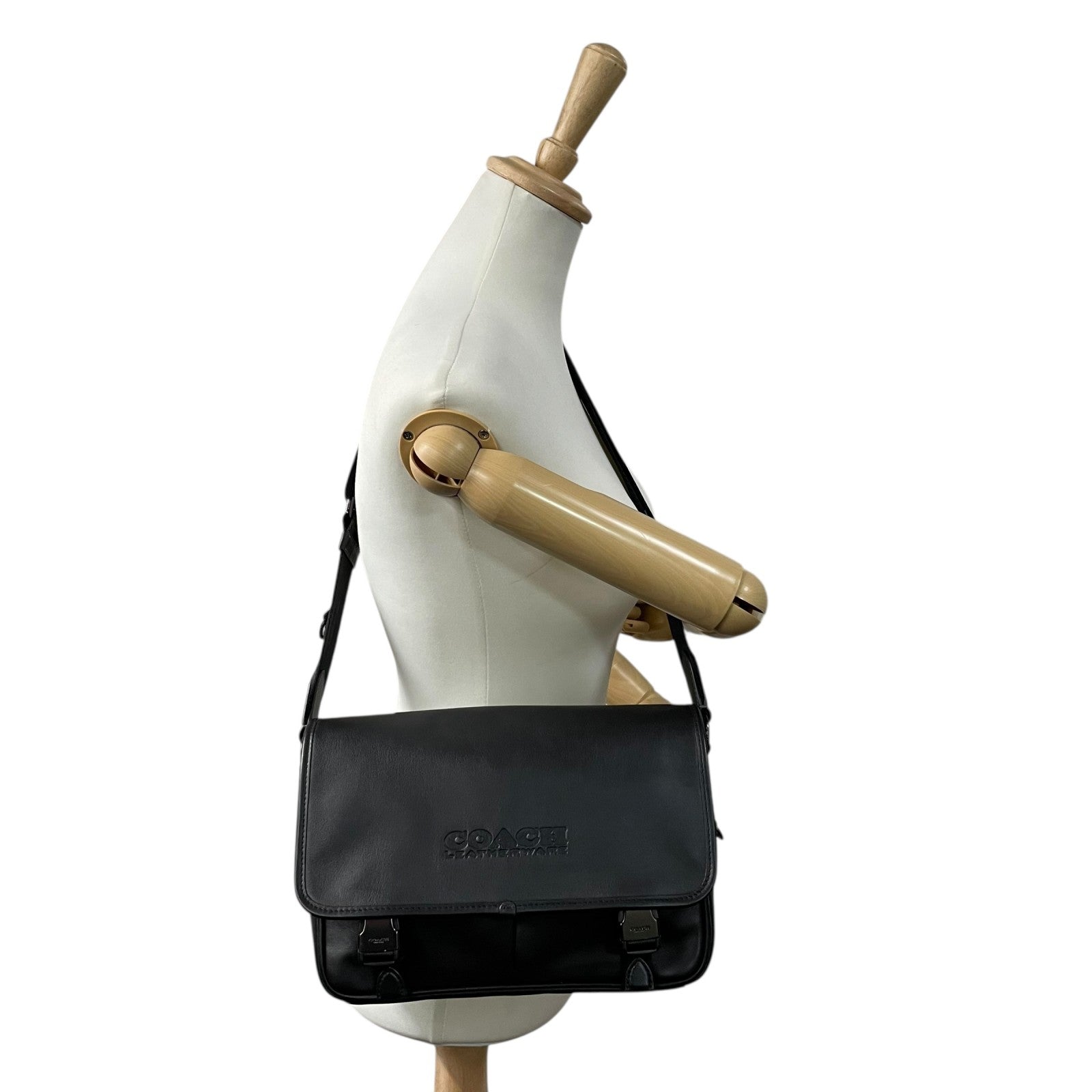 極美品 COACH コーチ League リーグ メッセンジャーバッグ C9157 ショルダーバッグ ボディバッグ レザー 黒 ブラック 斜め掛け可 メンズ レディース K5