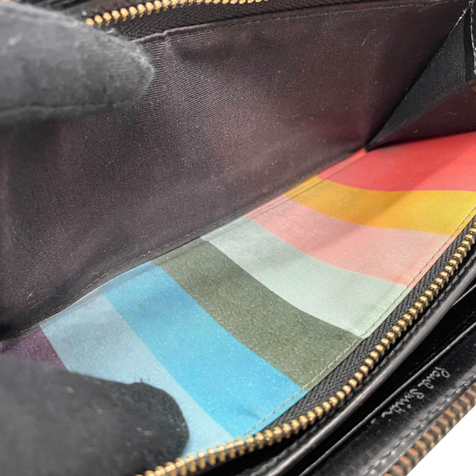 Paul Smith ポールスミス 長財布 ラウンドファスナー 紺 ネイビー レザー 本革 ゴールド金具 マルチカラー メンズ W1