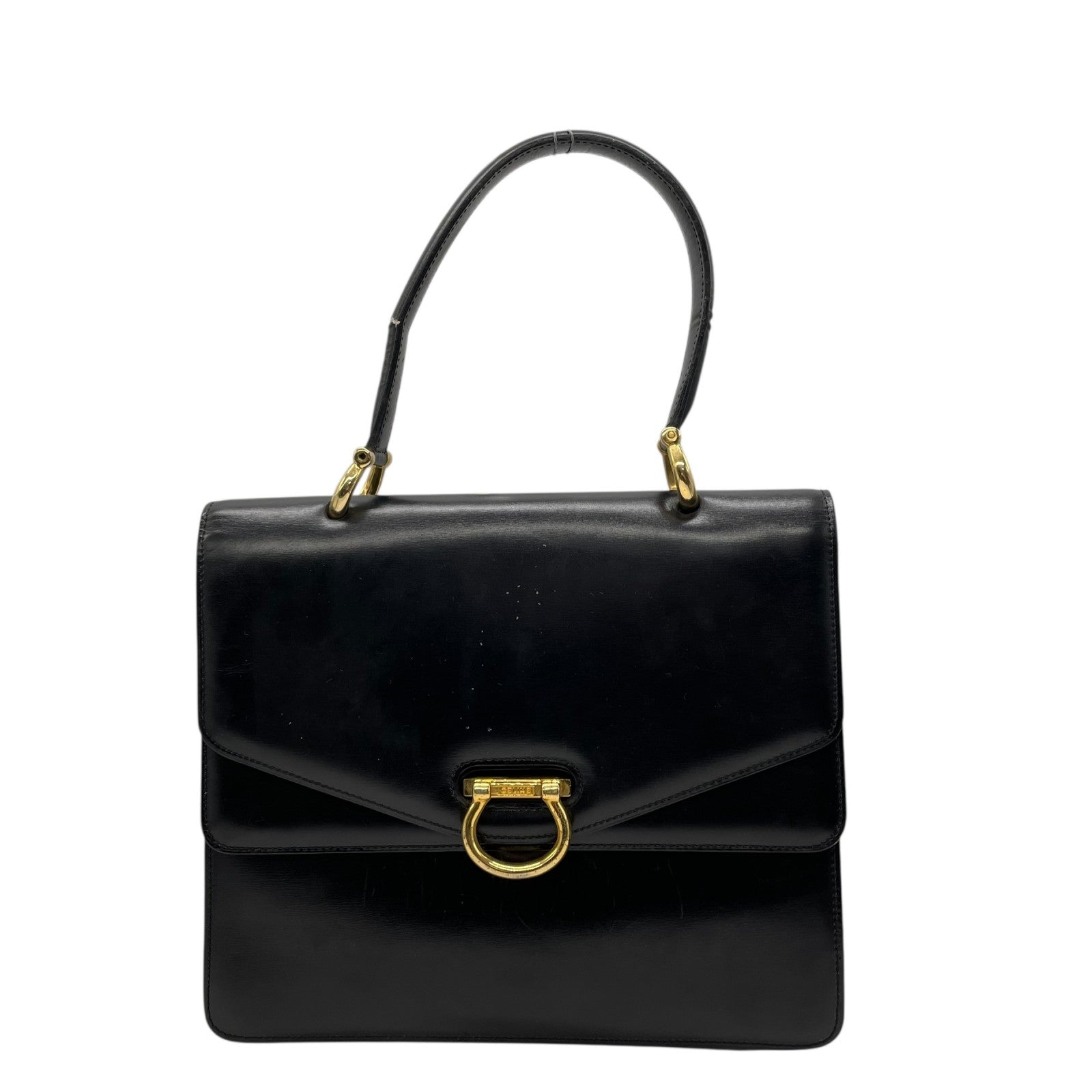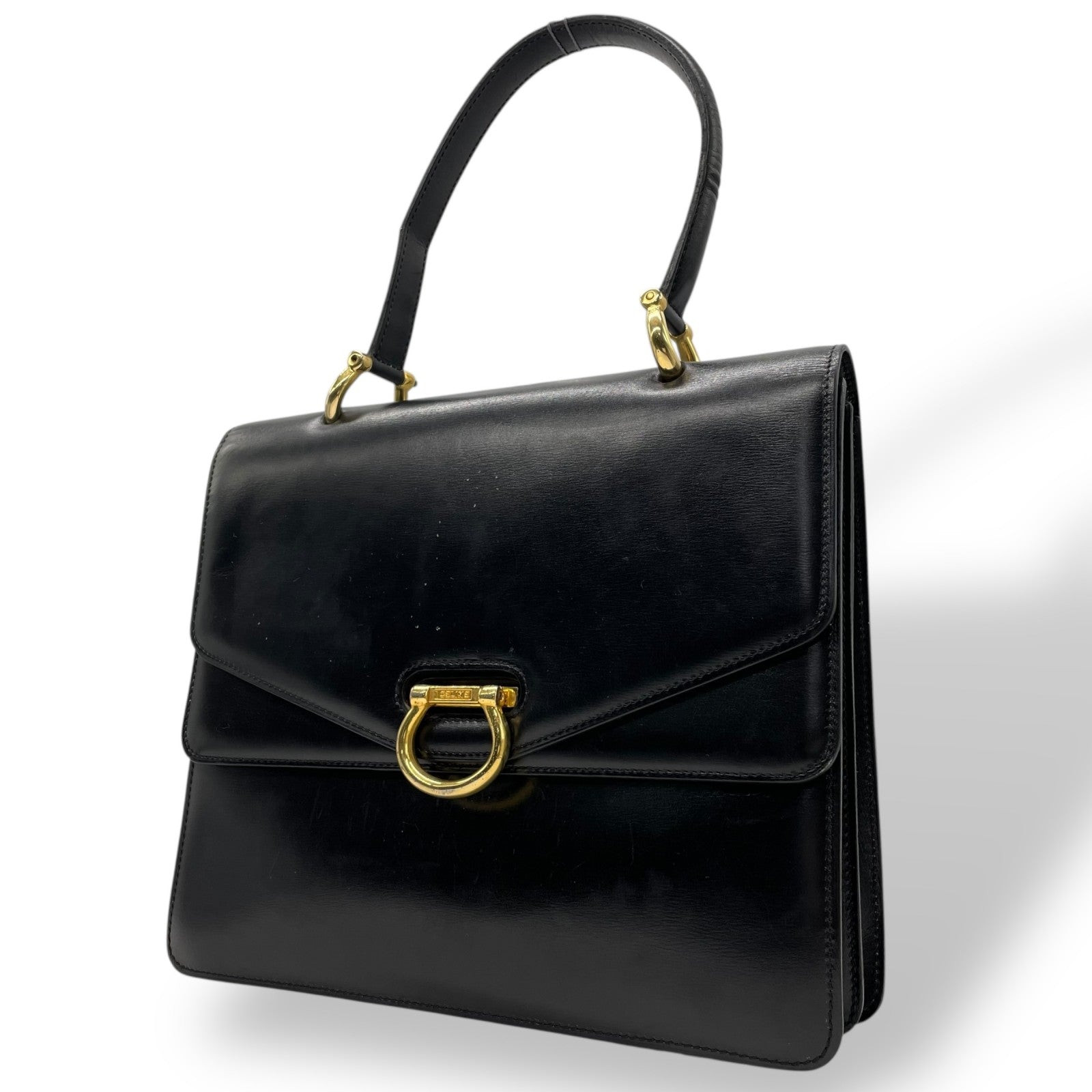 CELINE セリーヌ ハンドバッグ レザー 黒 ブラック ゴールド金具 トップハンドル 手提げ ヴィンテージ オールドセリーヌ レディース J