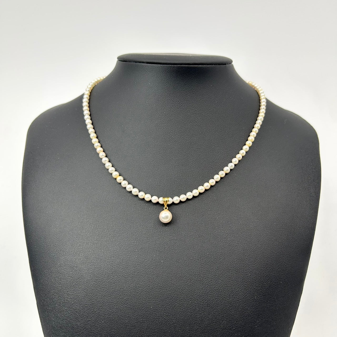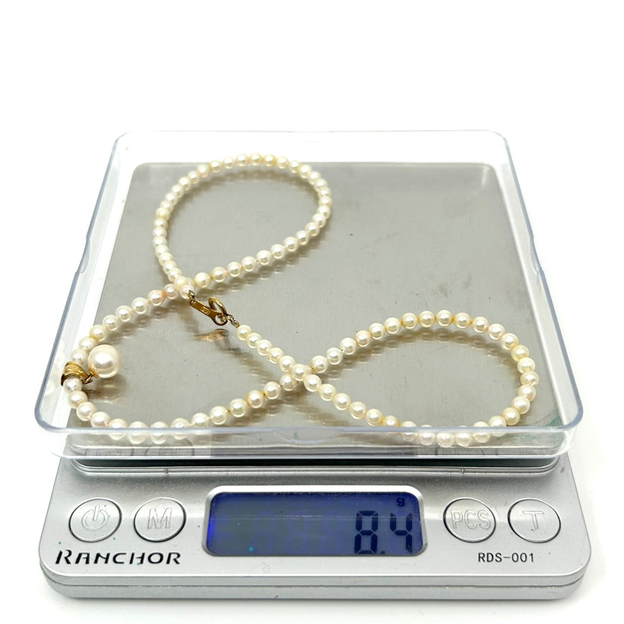 美品 本真珠 パール ネックレス あこや真珠 日本 留め具K18 ゴールド留め具 養殖パール 白 ホワイト ペンダント 冠婚葬祭 首飾り 3.5mm-3.7mm トップ7.1mm 全長約45cm I4