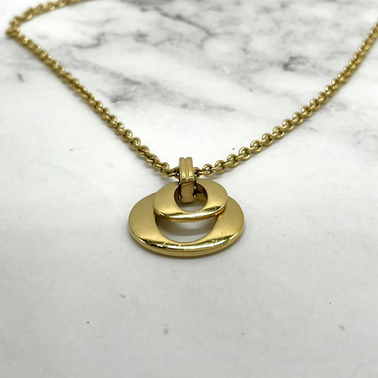 美品 Christian Dior クリスチャンディオール ヴィンテージ ネックレス ダブルサークル CDロゴ アジャスター ペンダント ゴールドカラー アクセサリー ジュエリー レディース I1