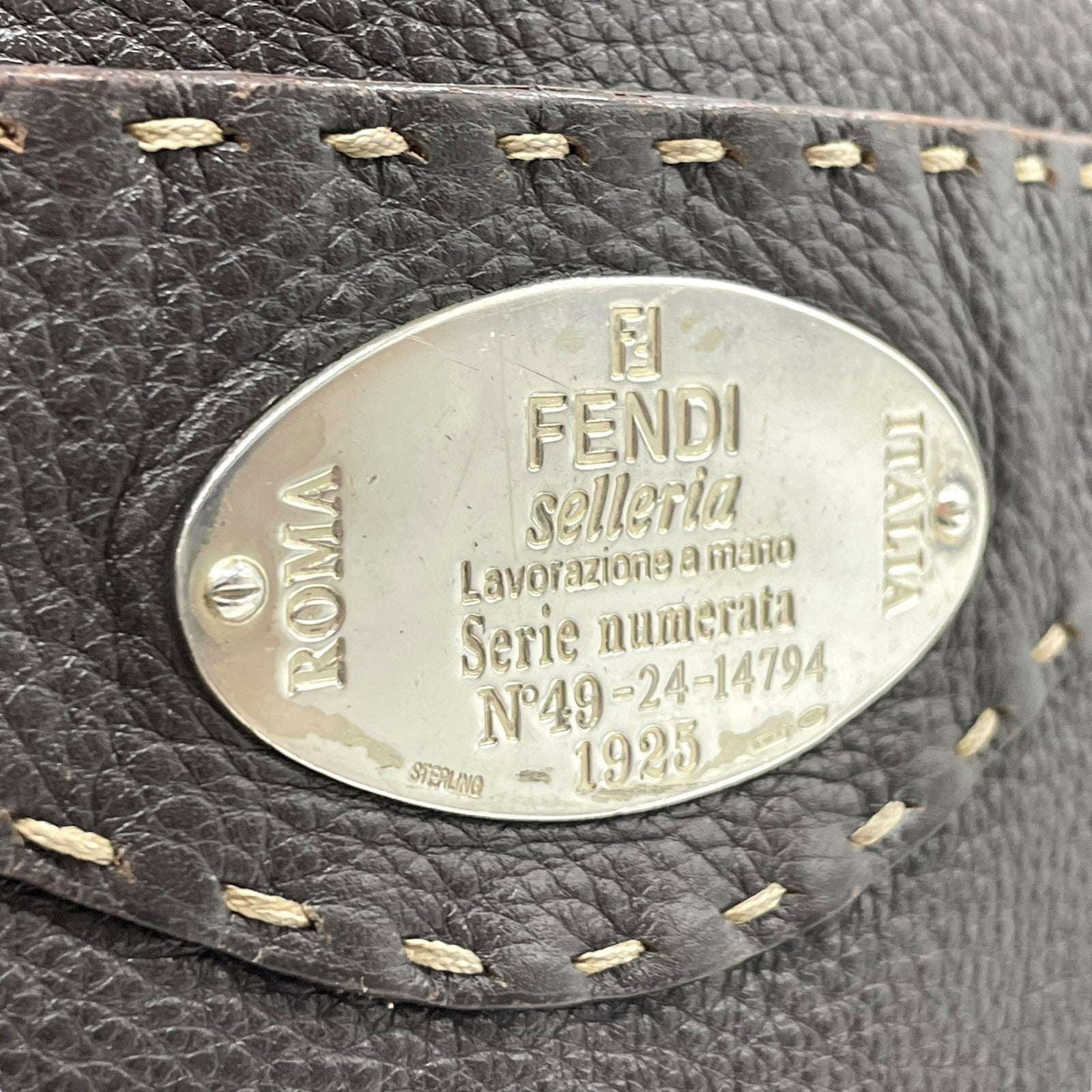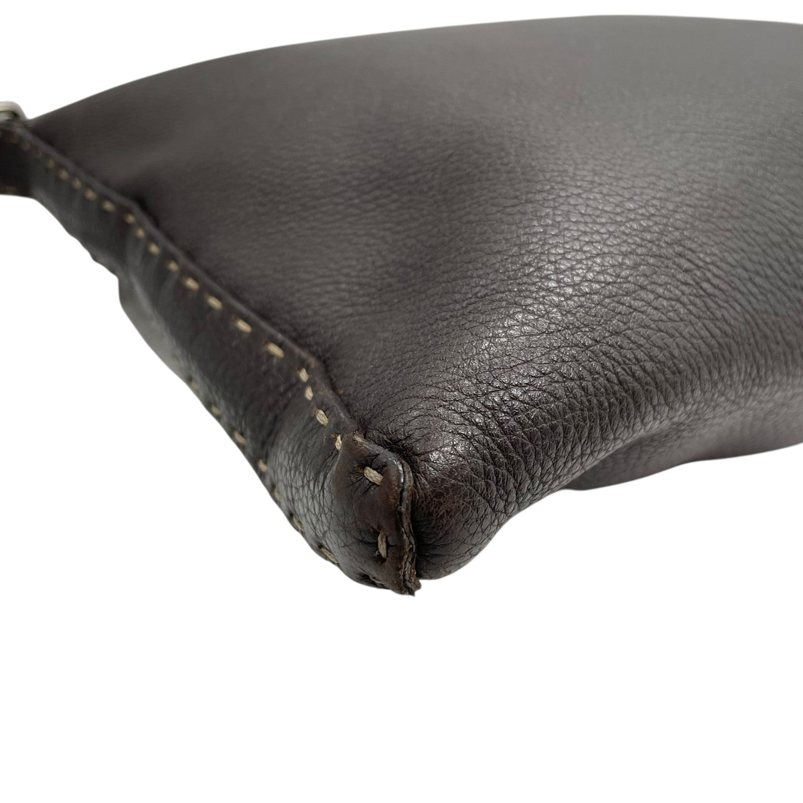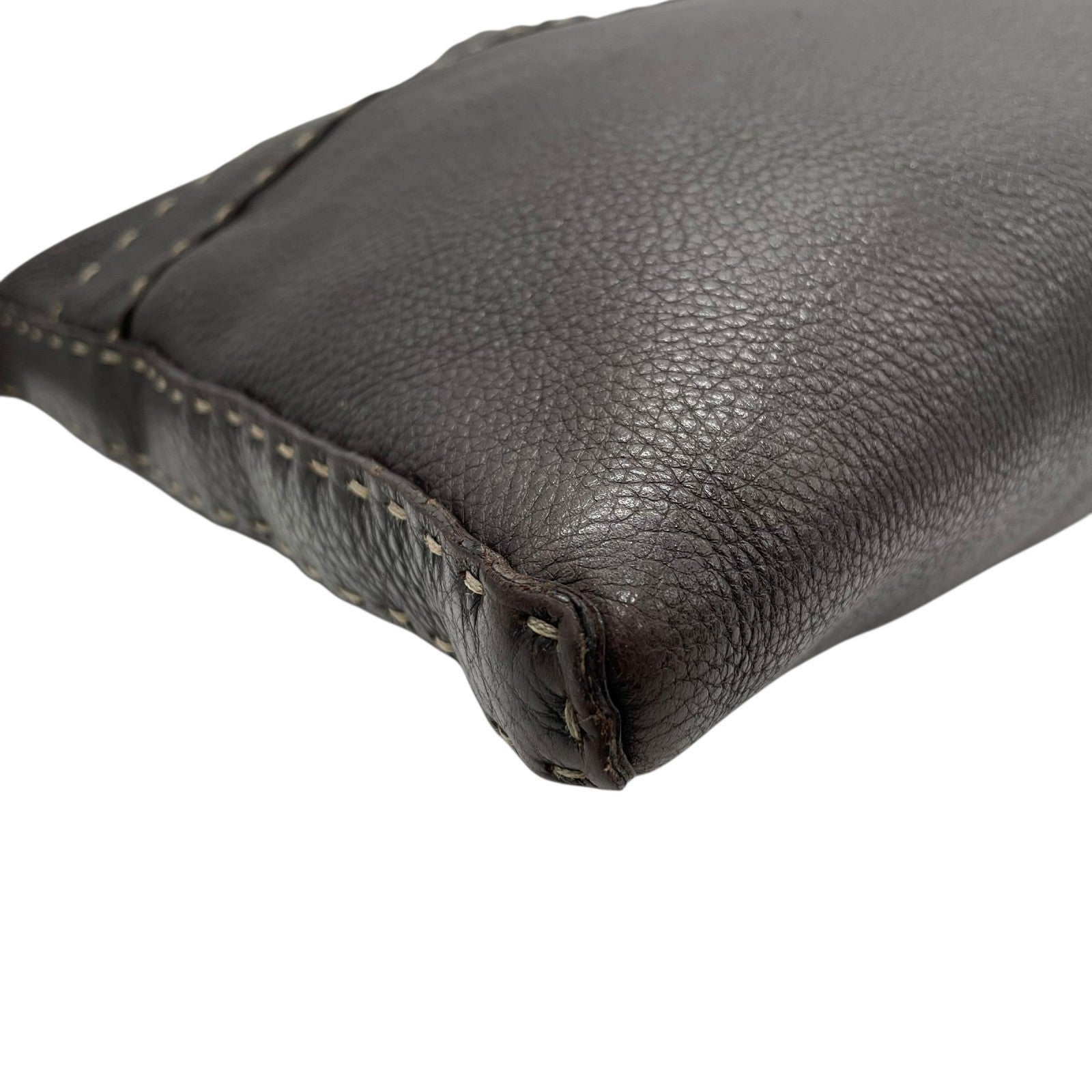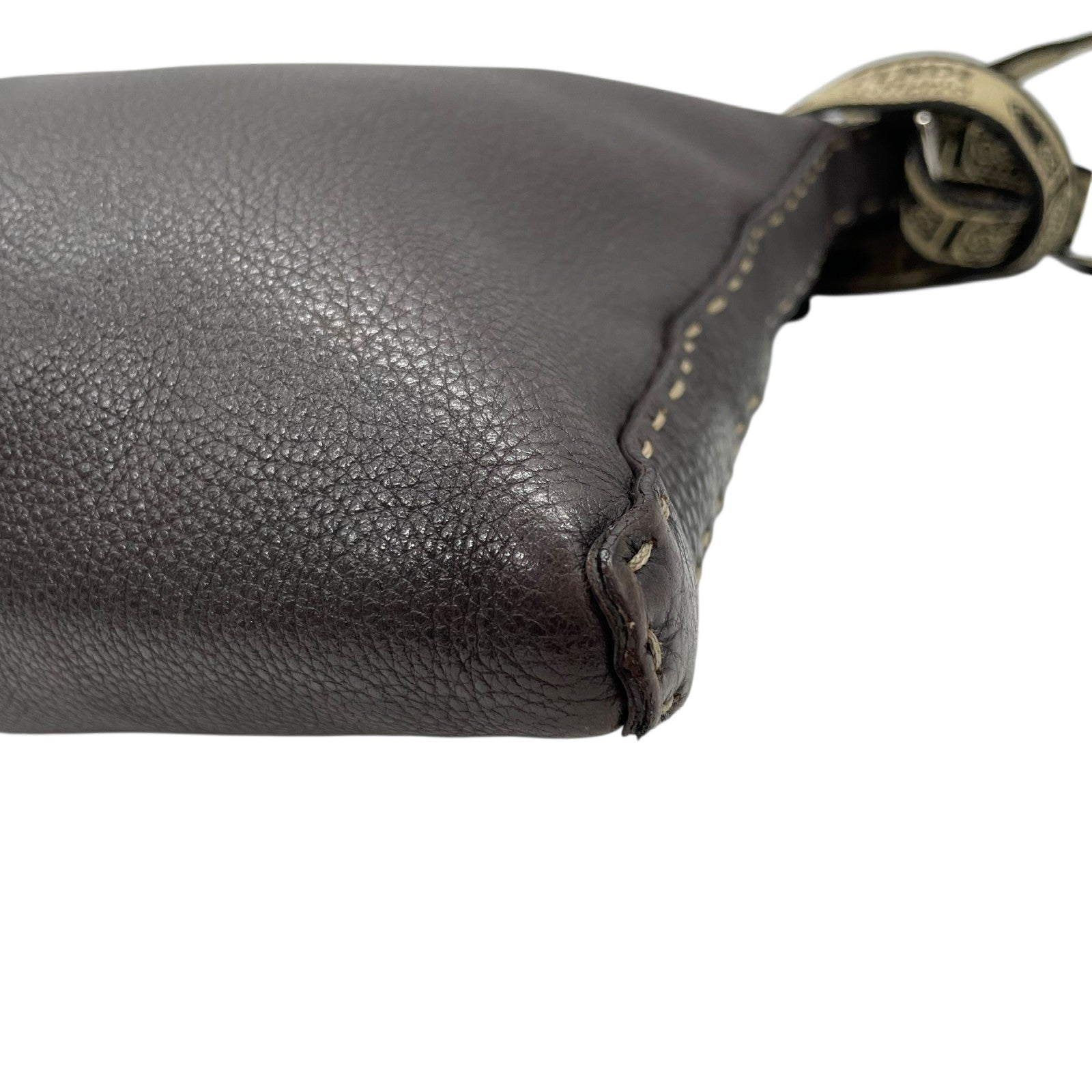 美品 FENDI フェンディ セレリア ショルダーバッグ ステッチ レザー 茶 ブラウン シルバー金具 斜め掛け可 ロゴストラップ ヴィンテージ レディース K3