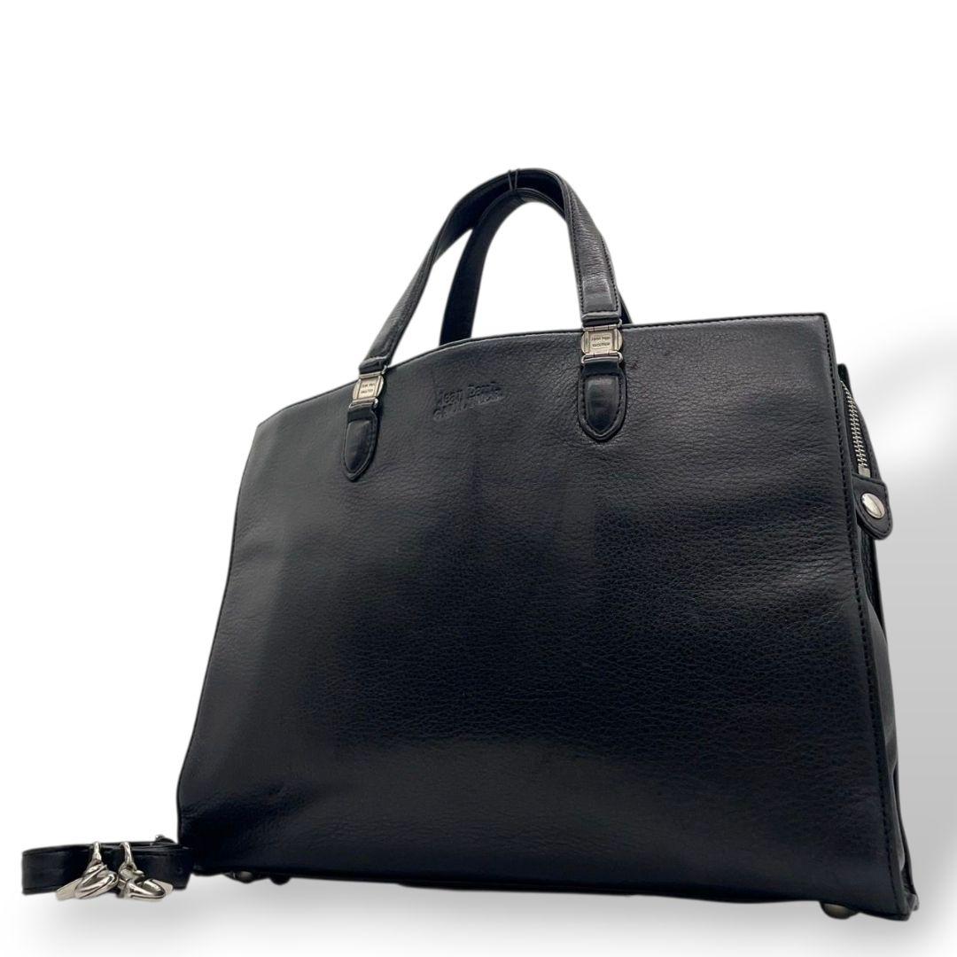 ジャンポールゴルチエ Jean Paul GAULTIER ビジネスバッグ ブラック 黒 ロゴ 2way レザー 本革 A4収納可 ショルダーバッグ トートバッグ ハンドバッグ 型押し シルバー金具 S4