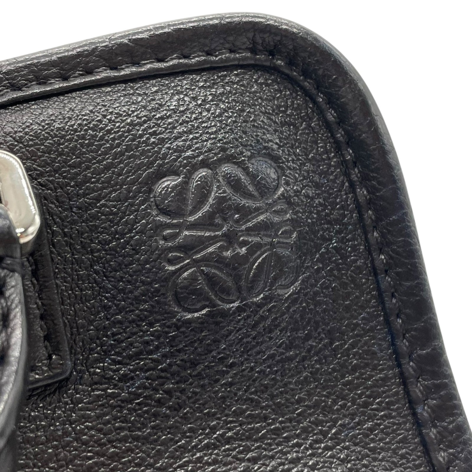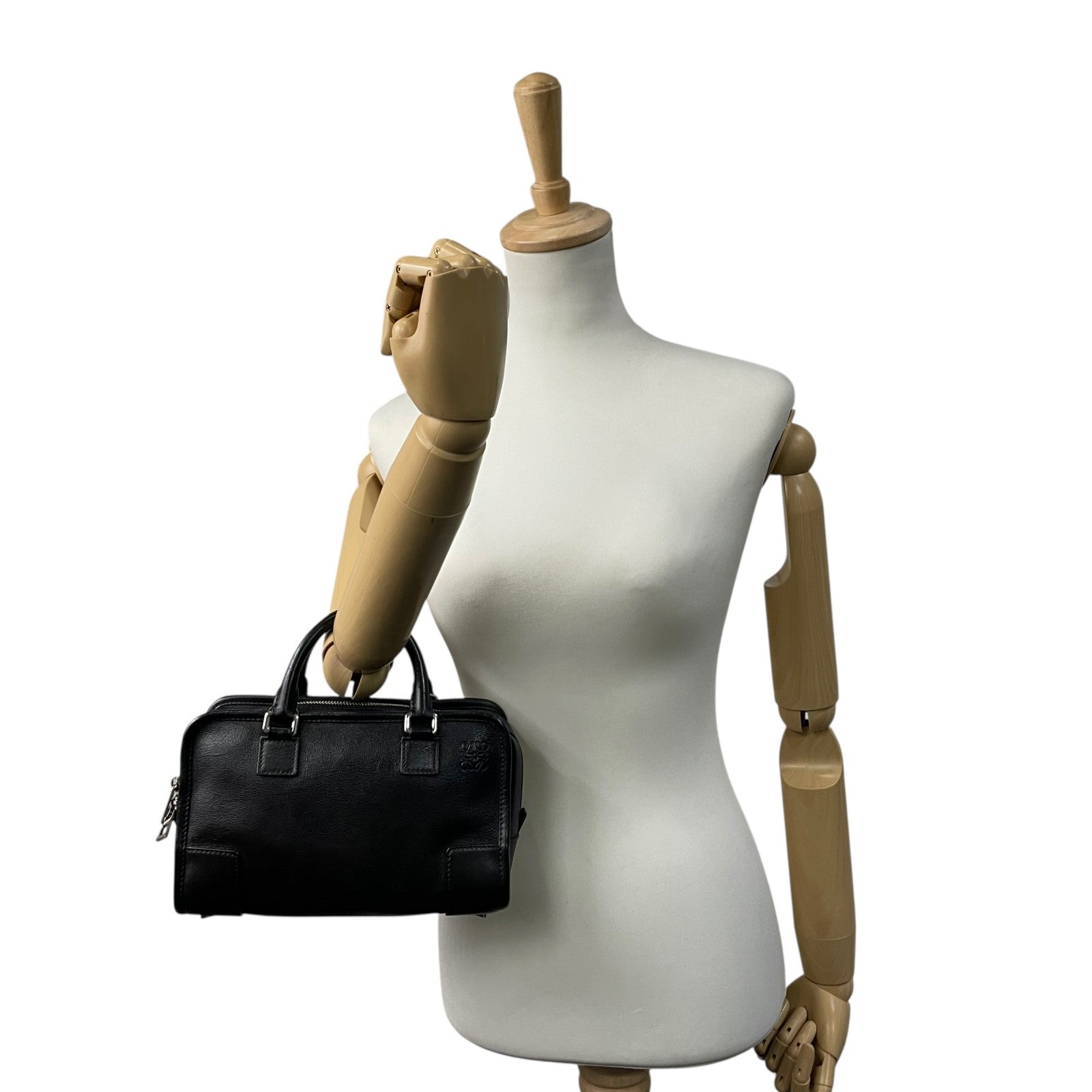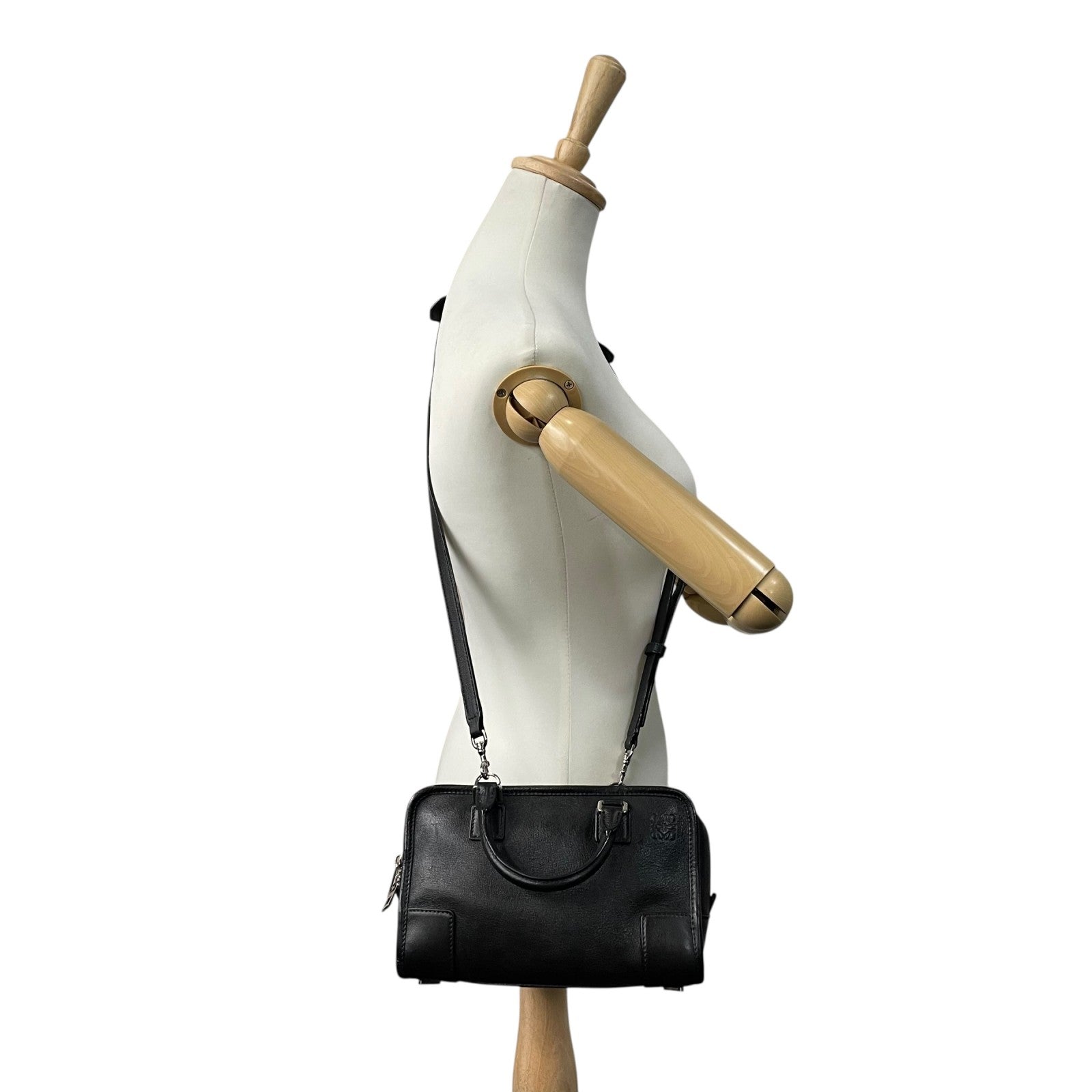 Authentic LOEWE Amazona 2WAY Handbag Shoulder Bag Black Leather Anagram