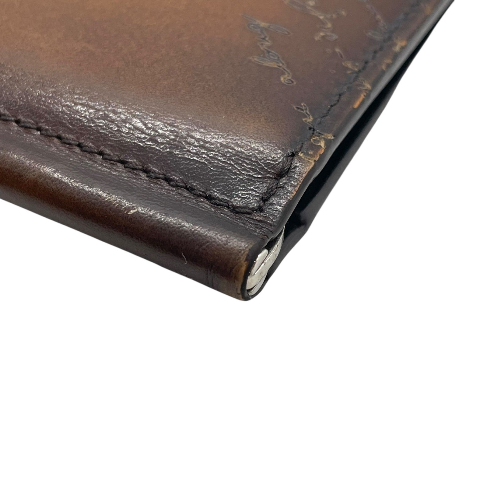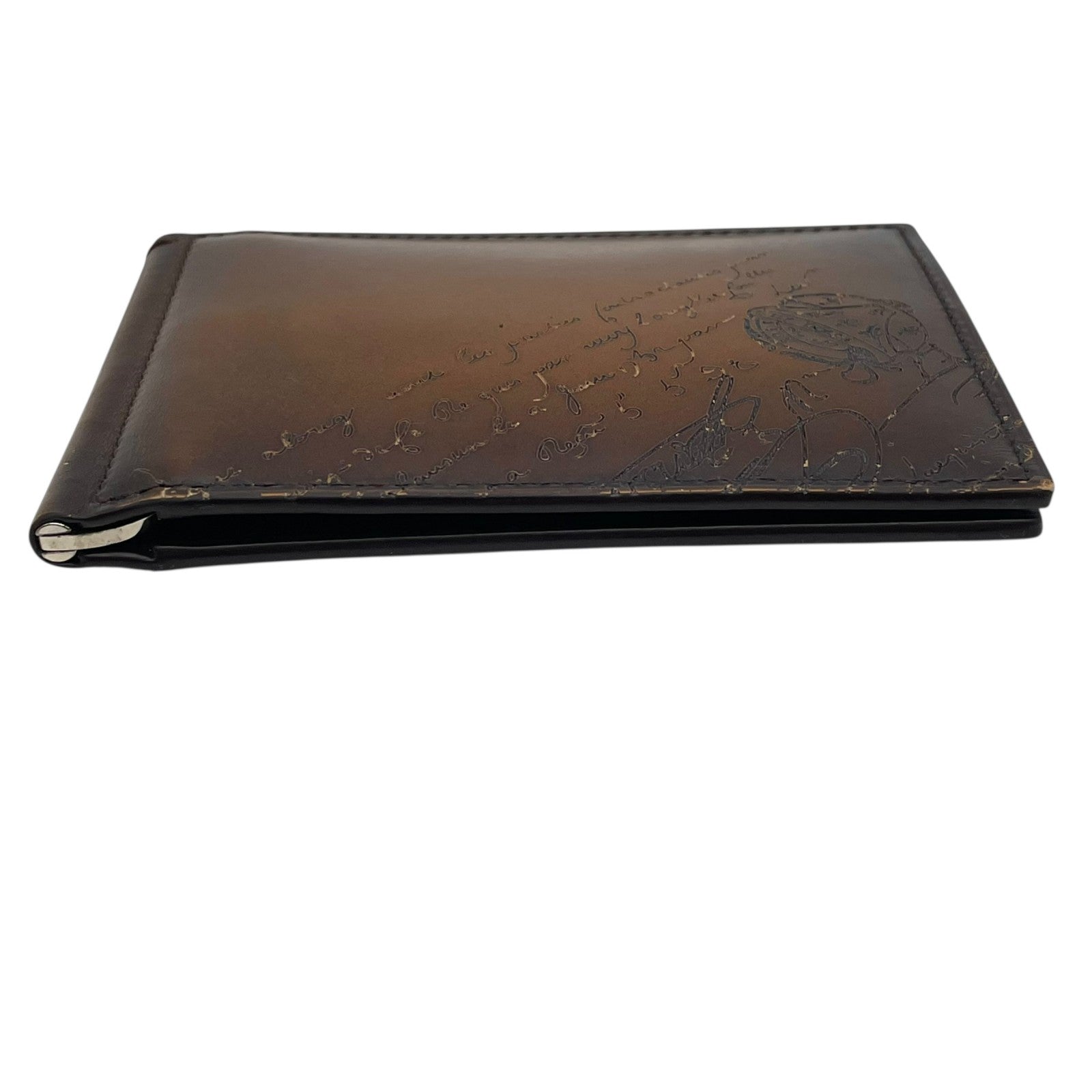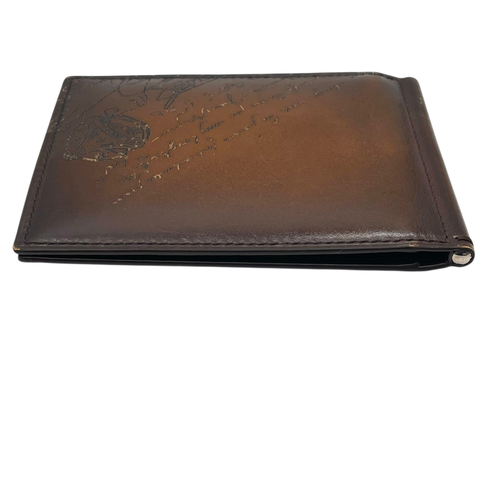 美品 BERLUTI ベルルッティ カリグラフィ マネークリップ 二つ折り フィギュア スクリットレザー コンパクトウォレット 茶 カカオ ブラウン メンズ スタンプ付き W2