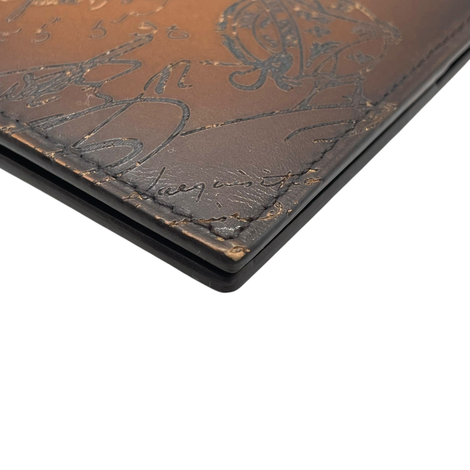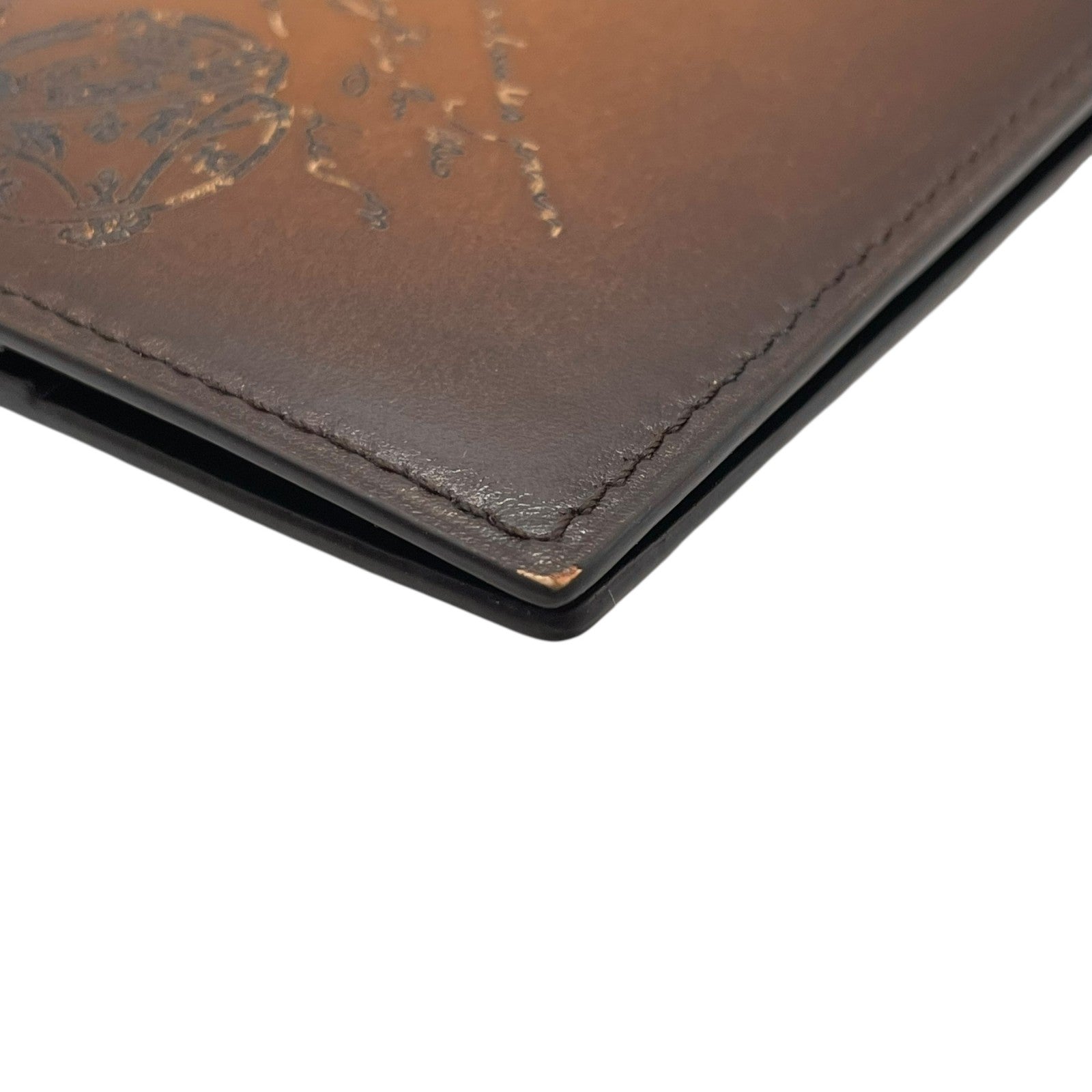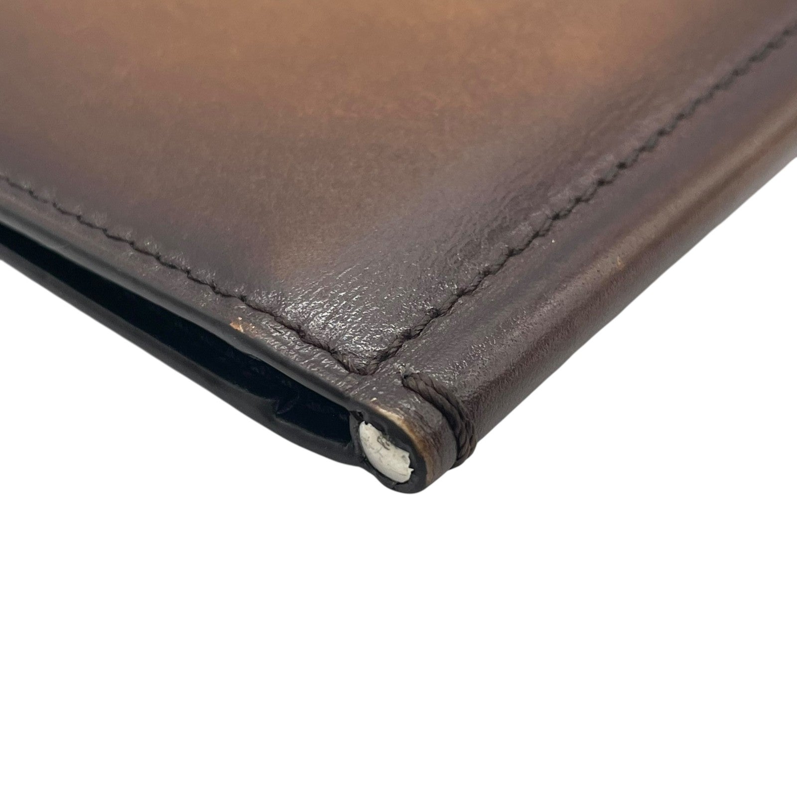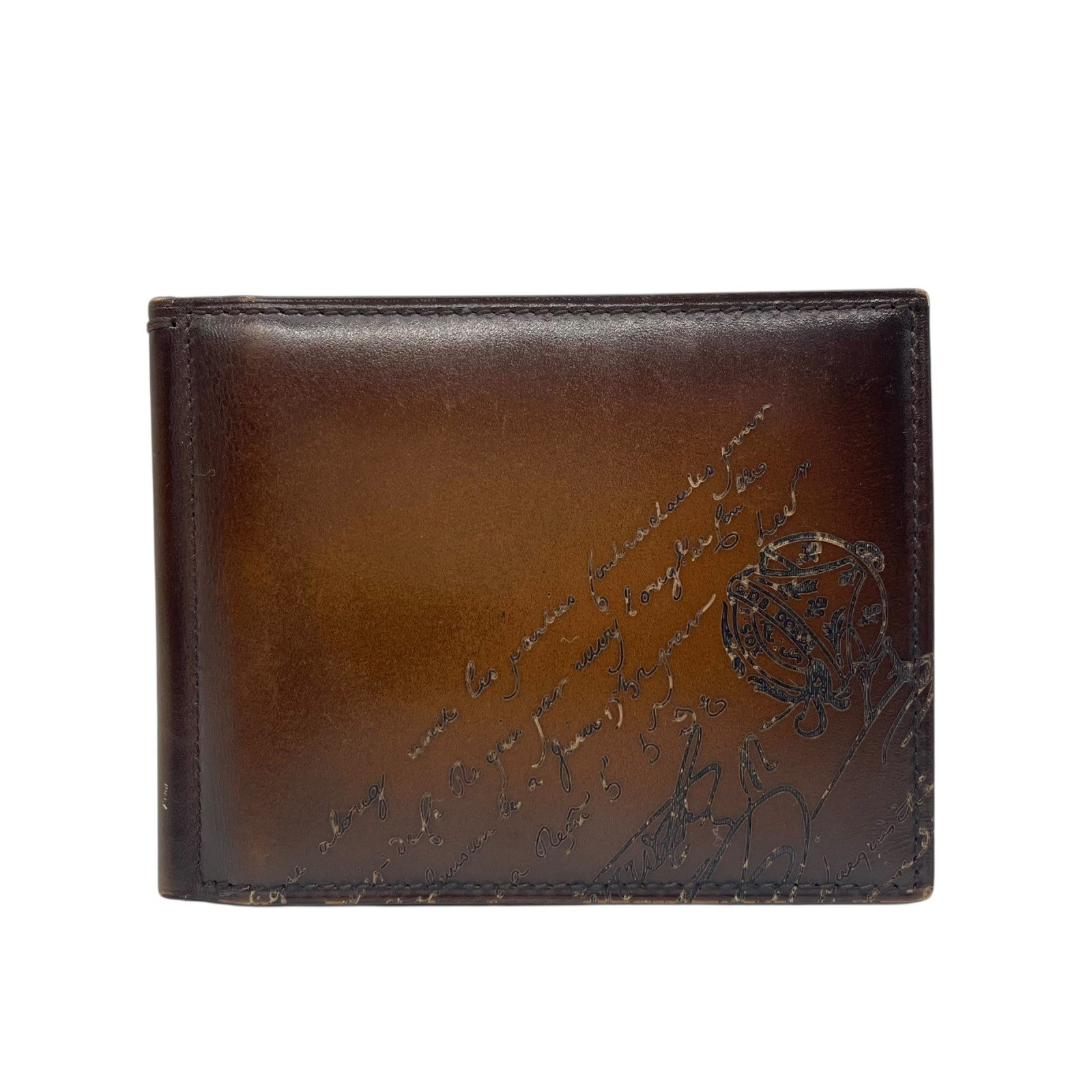 美品 BERLUTI ベルルッティ カリグラフィ マネークリップ 二つ折り フィギュア スクリットレザー コンパクトウォレット 茶 カカオ ブラウン メンズ スタンプ付き W2