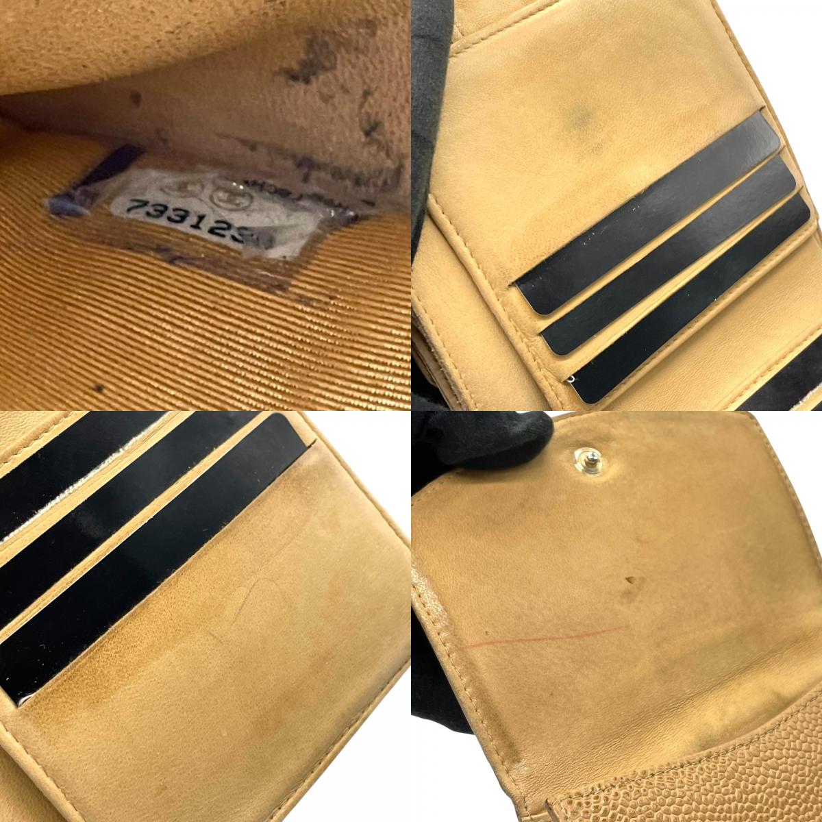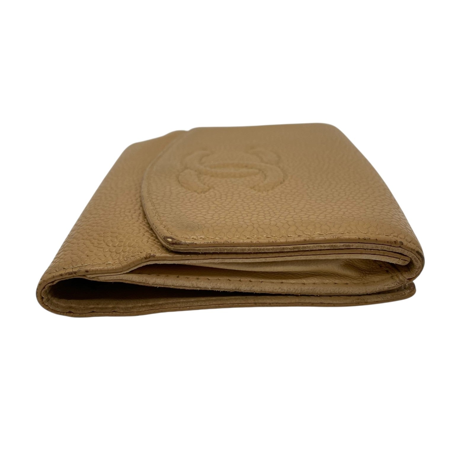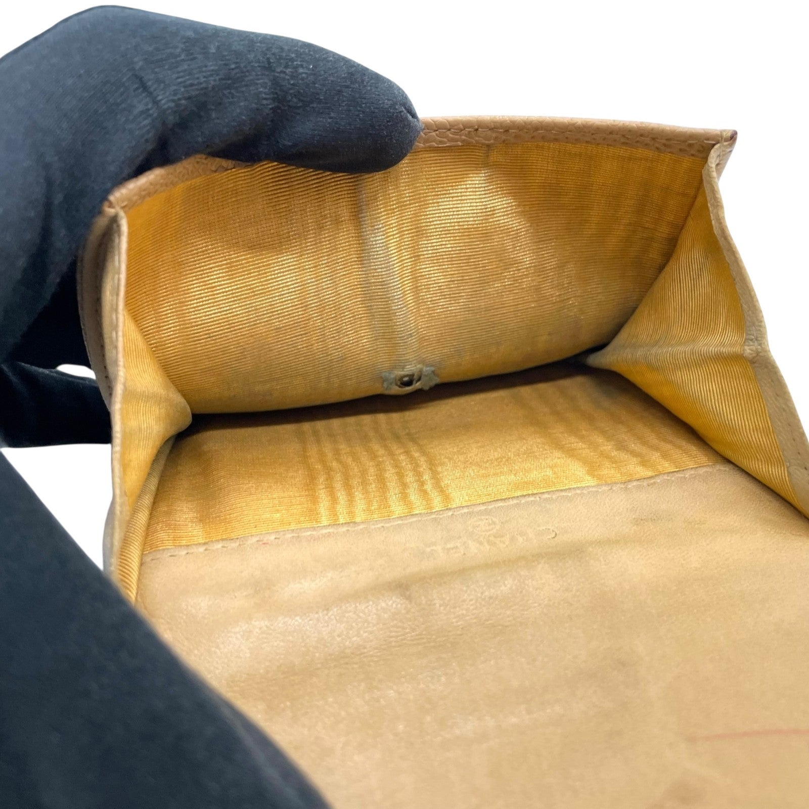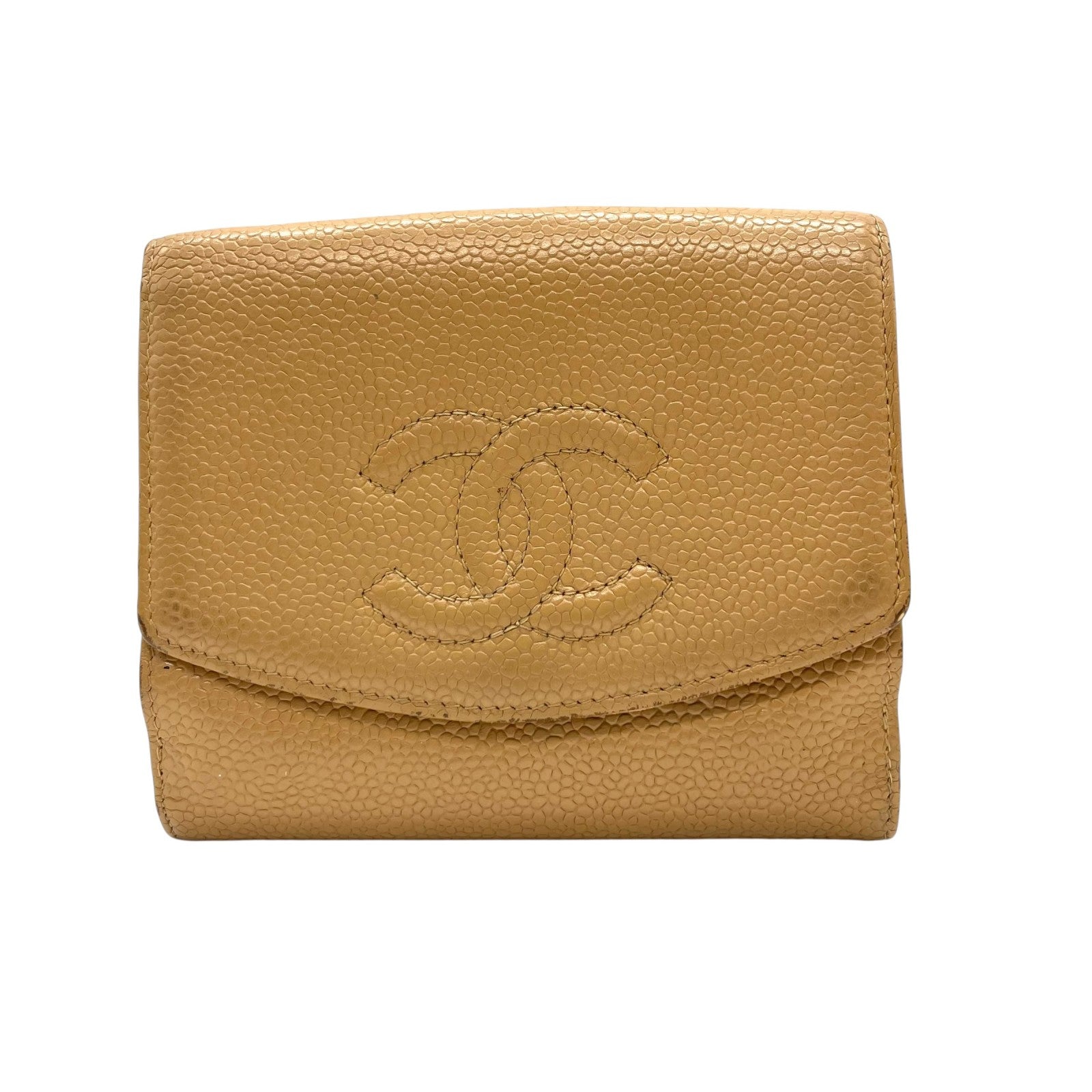 シャネル CHANEL 三つ折り財布 キャビアスキン調 レザー ココマーク 型押し キャメル ゴールド金具 金金具 箱・カード付 シール付 W2
