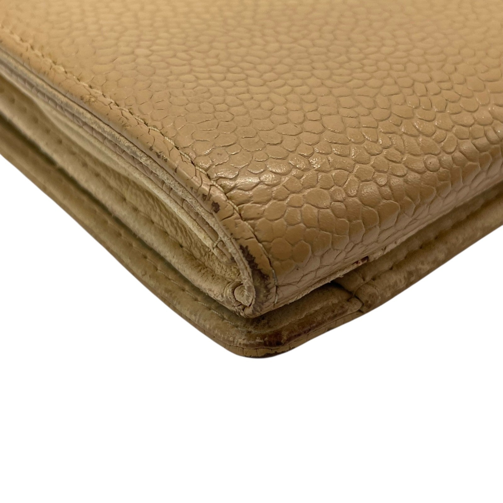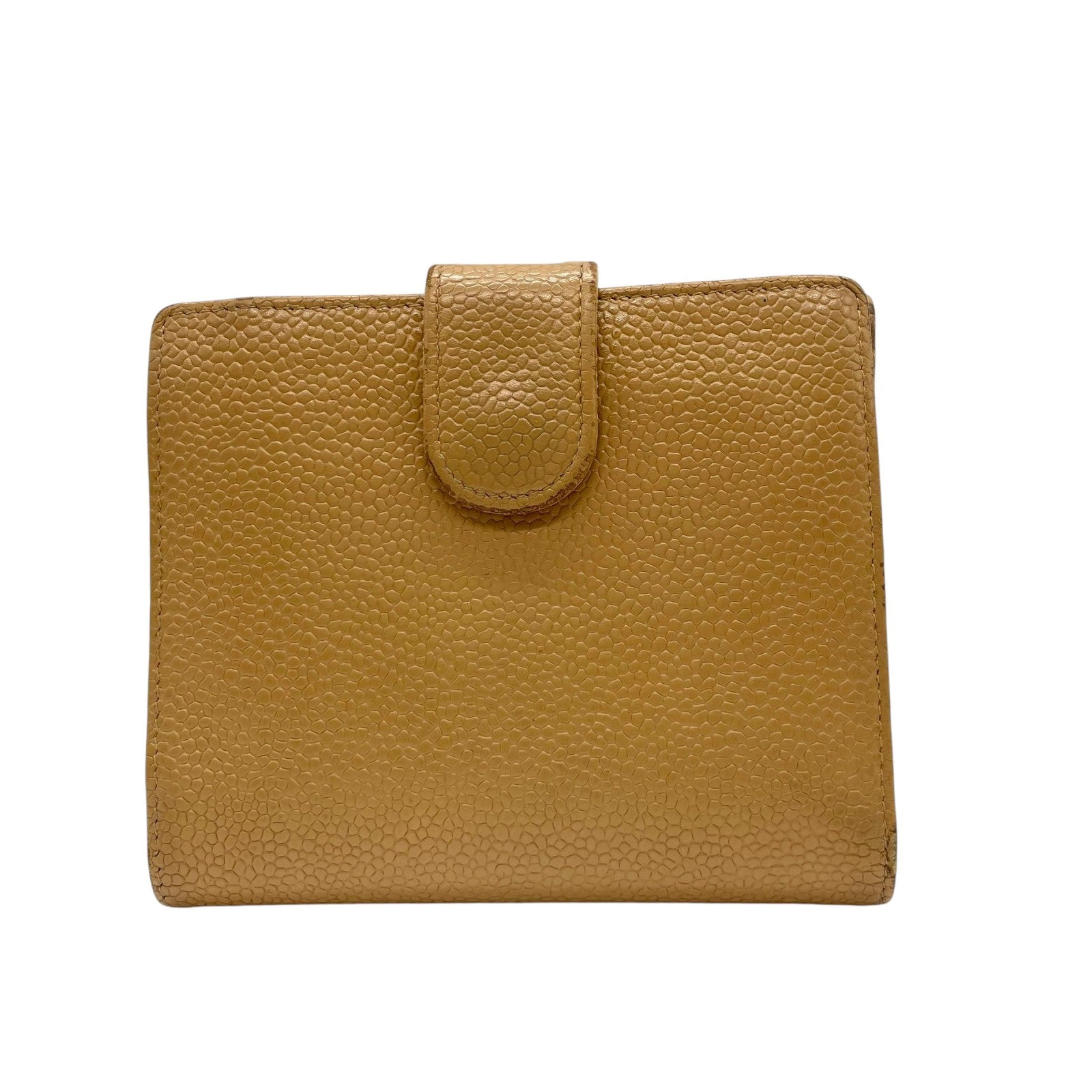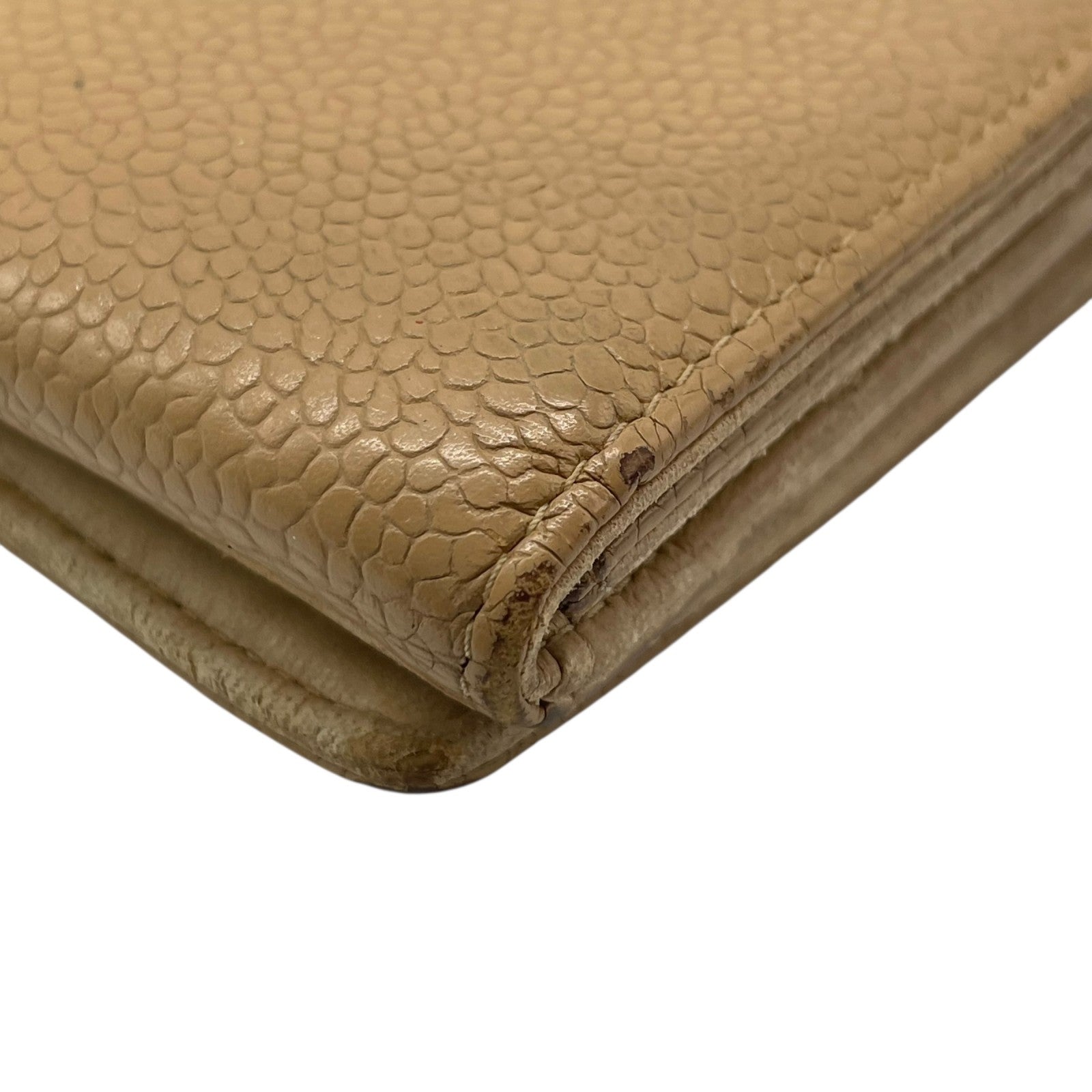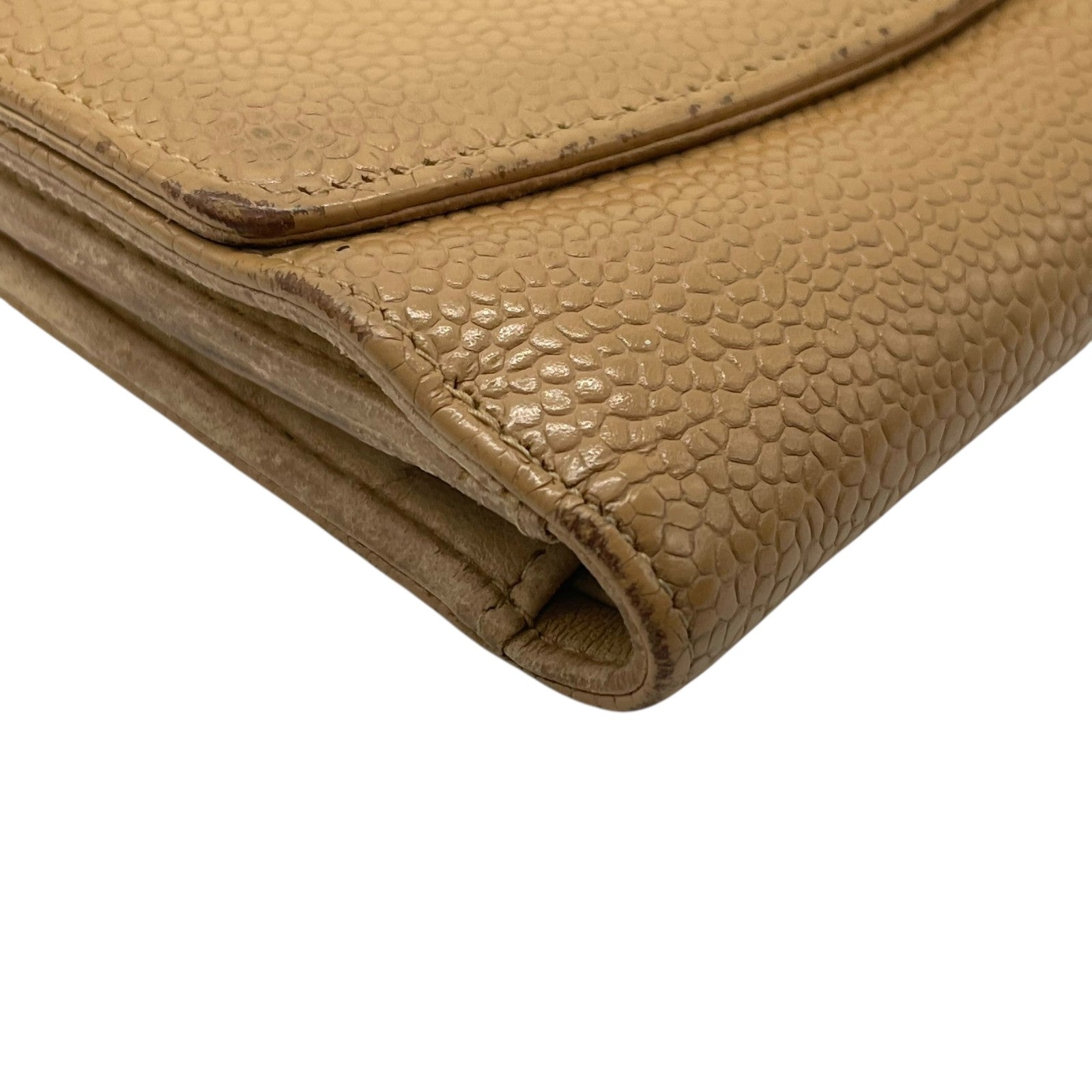 シャネル CHANEL 三つ折り財布 キャビアスキン調 レザー ココマーク 型押し キャメル ゴールド金具 金金具 箱・カード付 シール付 W2