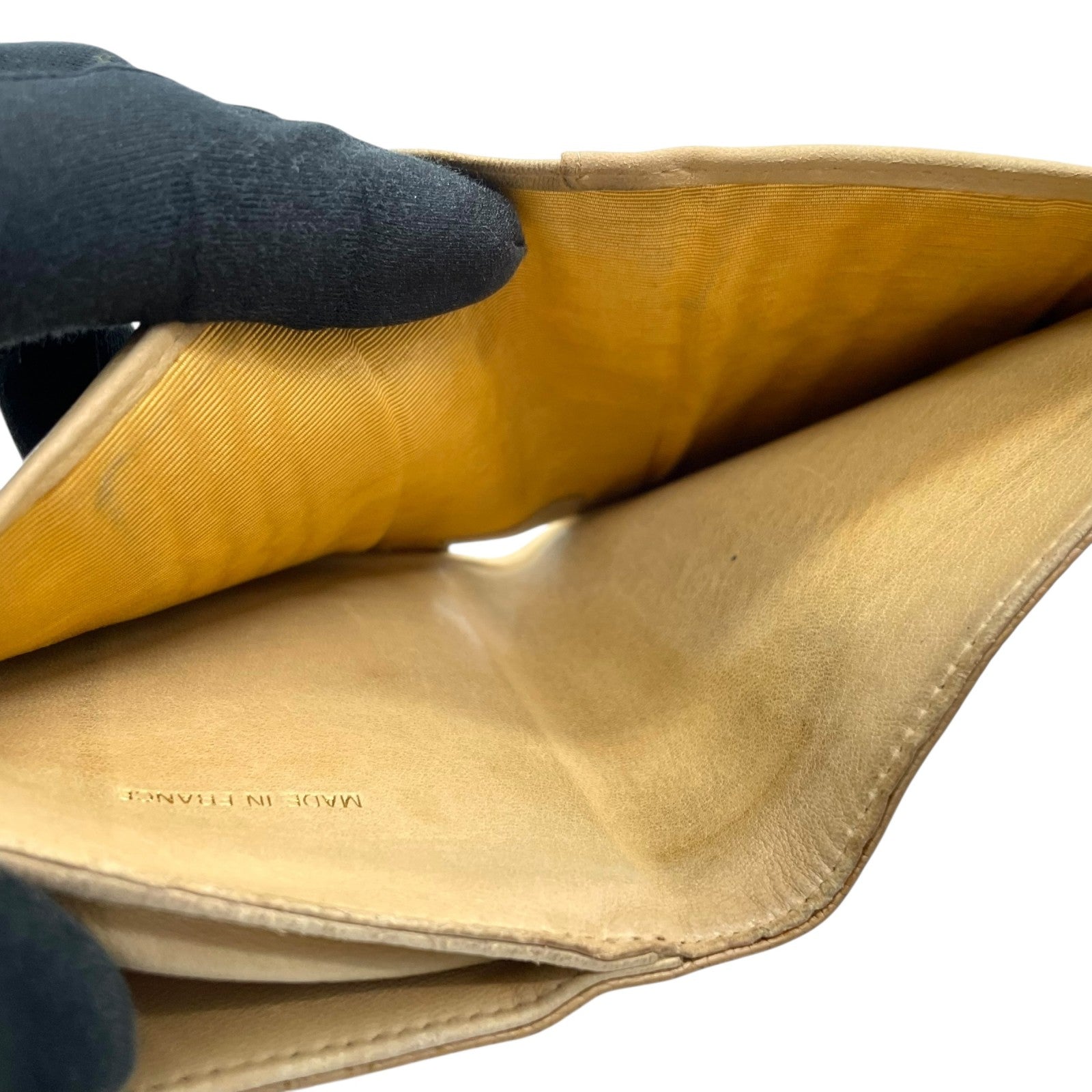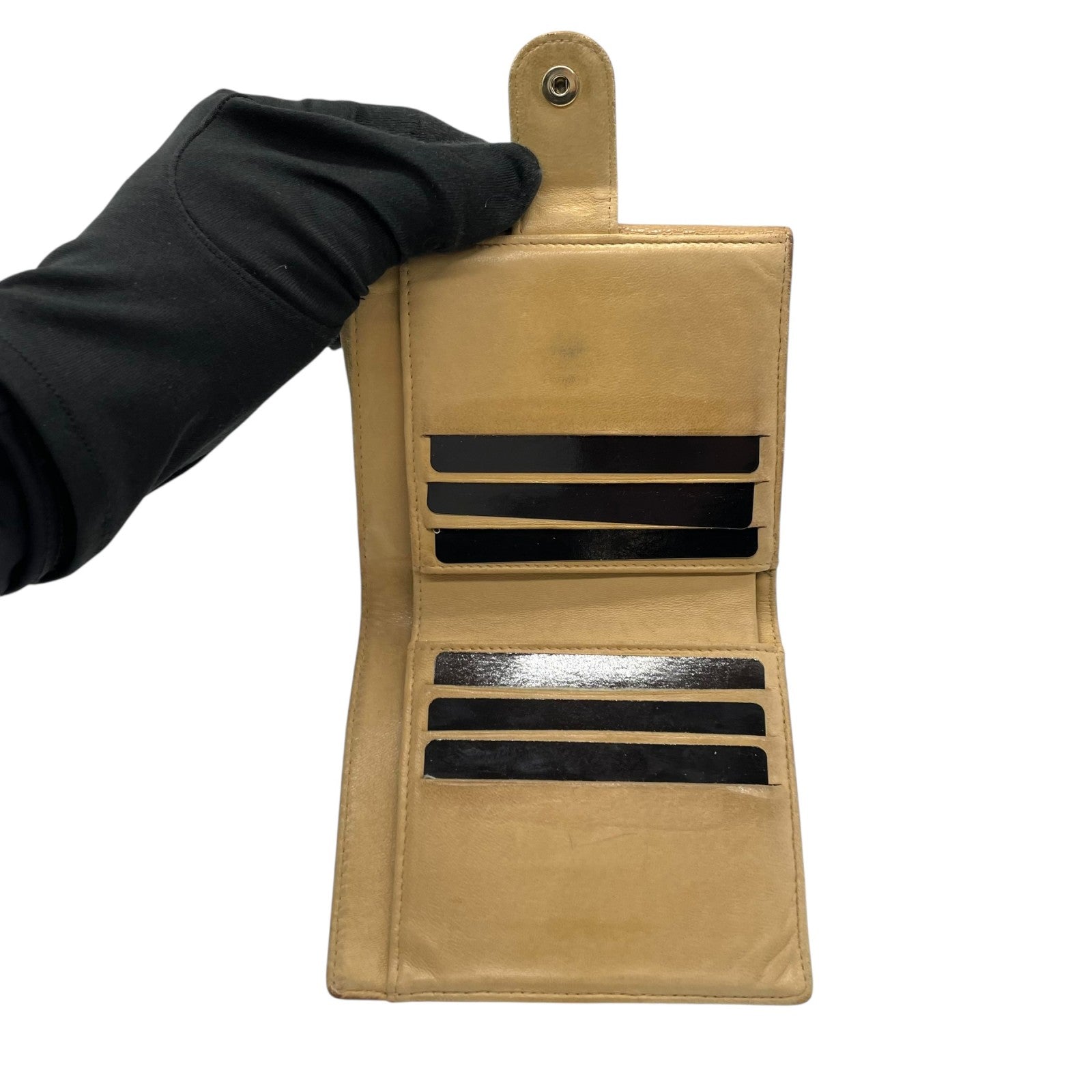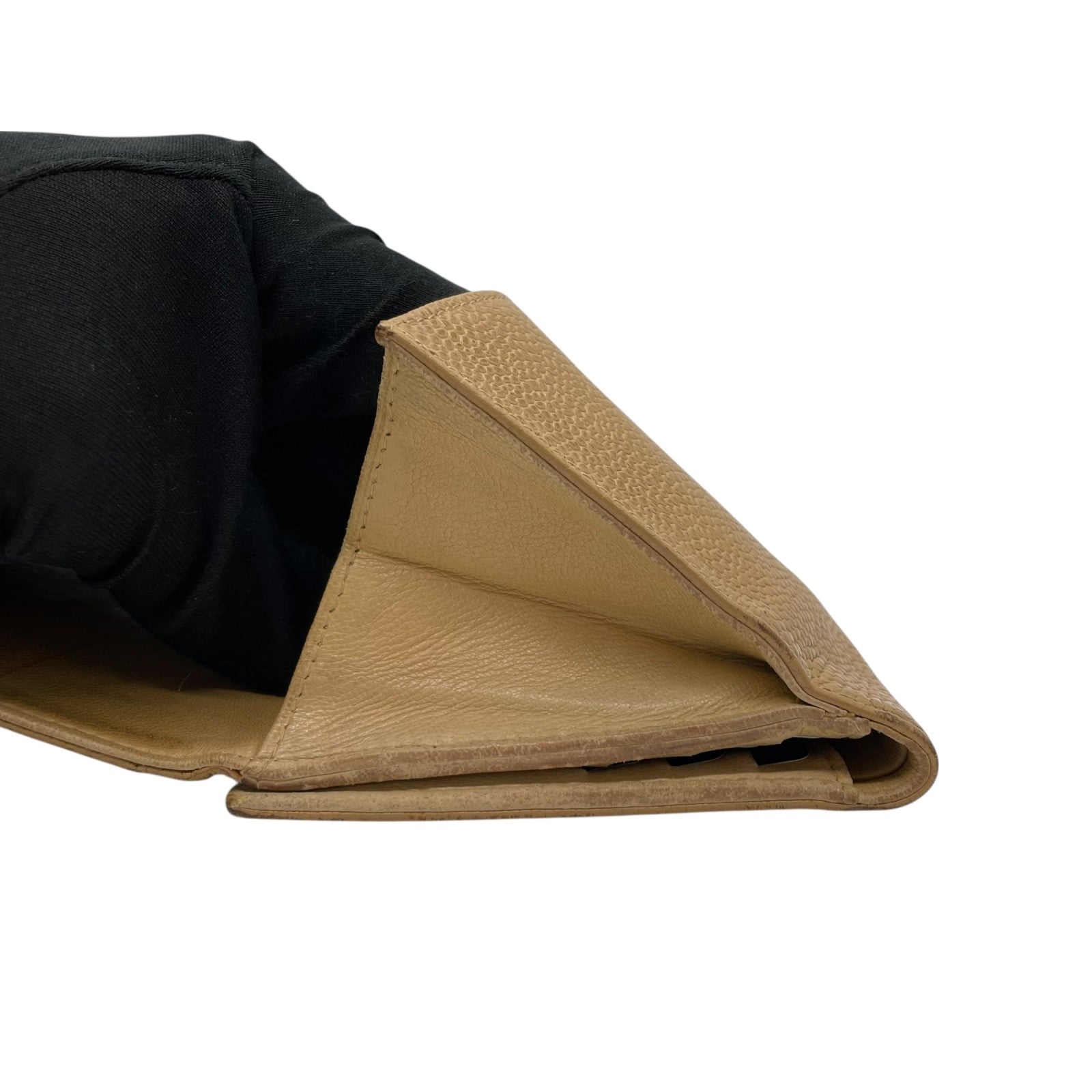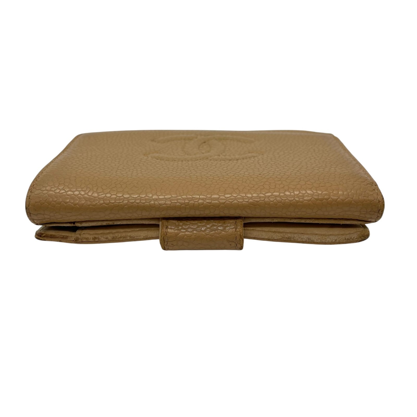シャネル CHANEL 三つ折り財布 キャビアスキン調 レザー ココマーク 型押し キャメル ゴールド金具 金金具 箱・カード付 シール付 W2