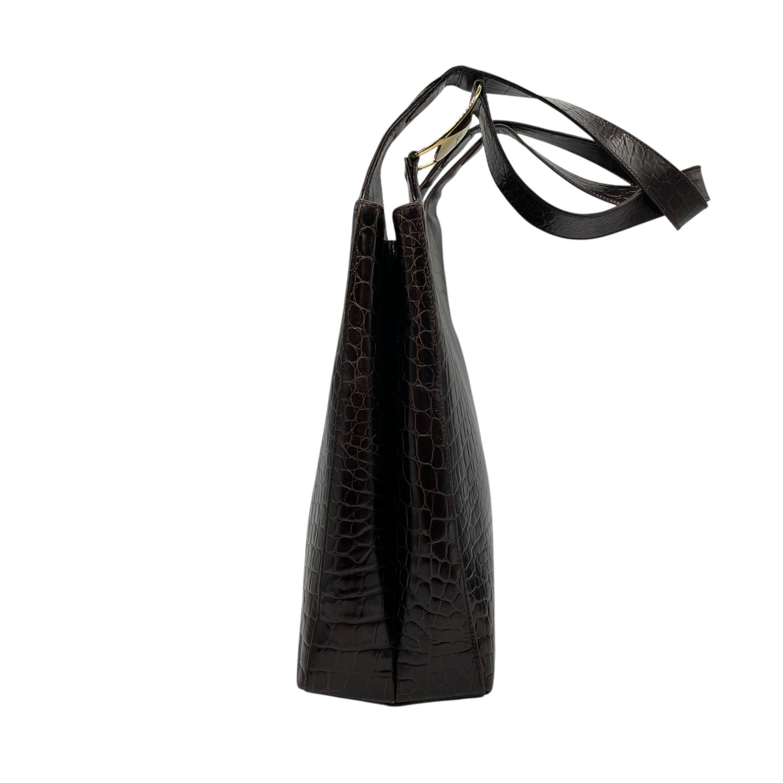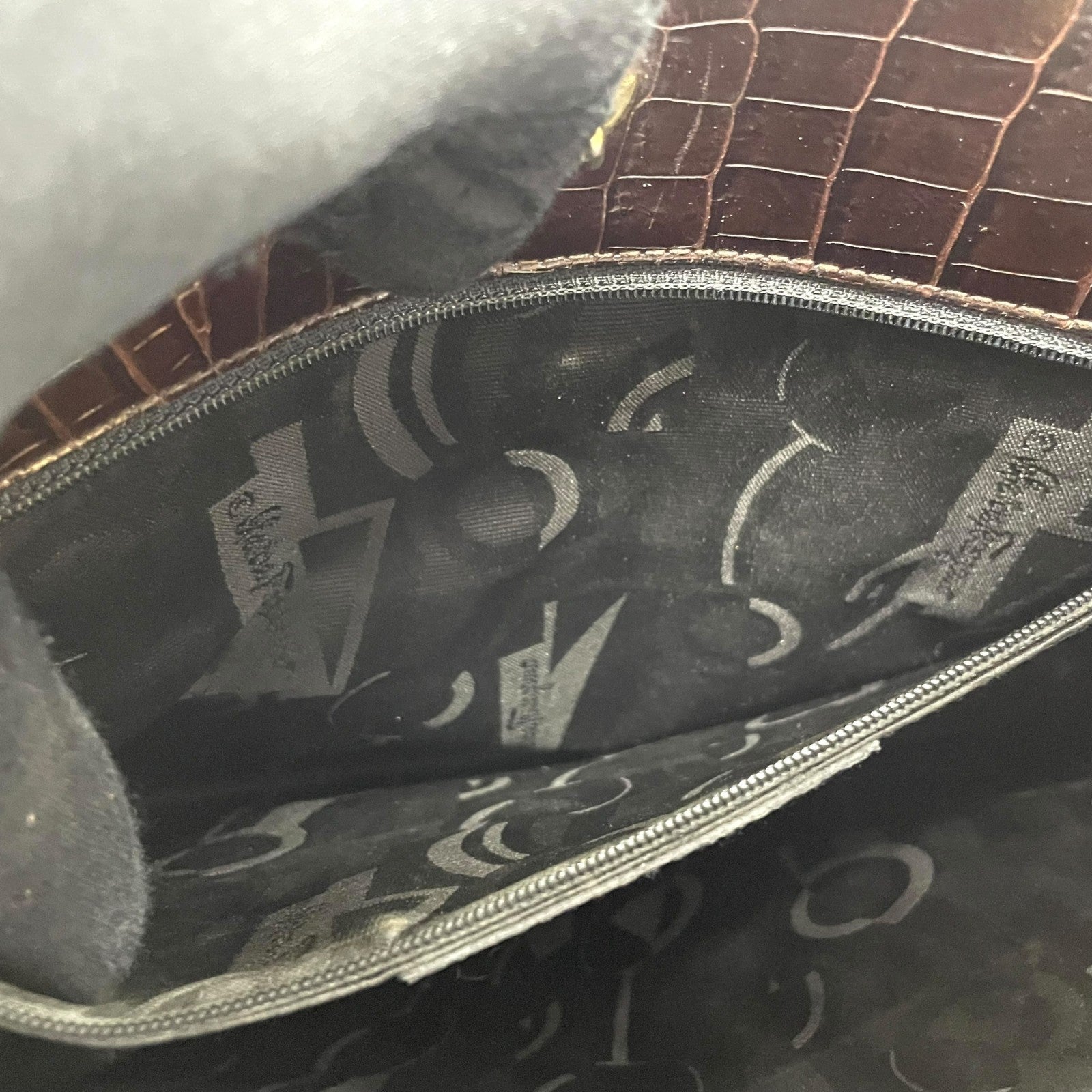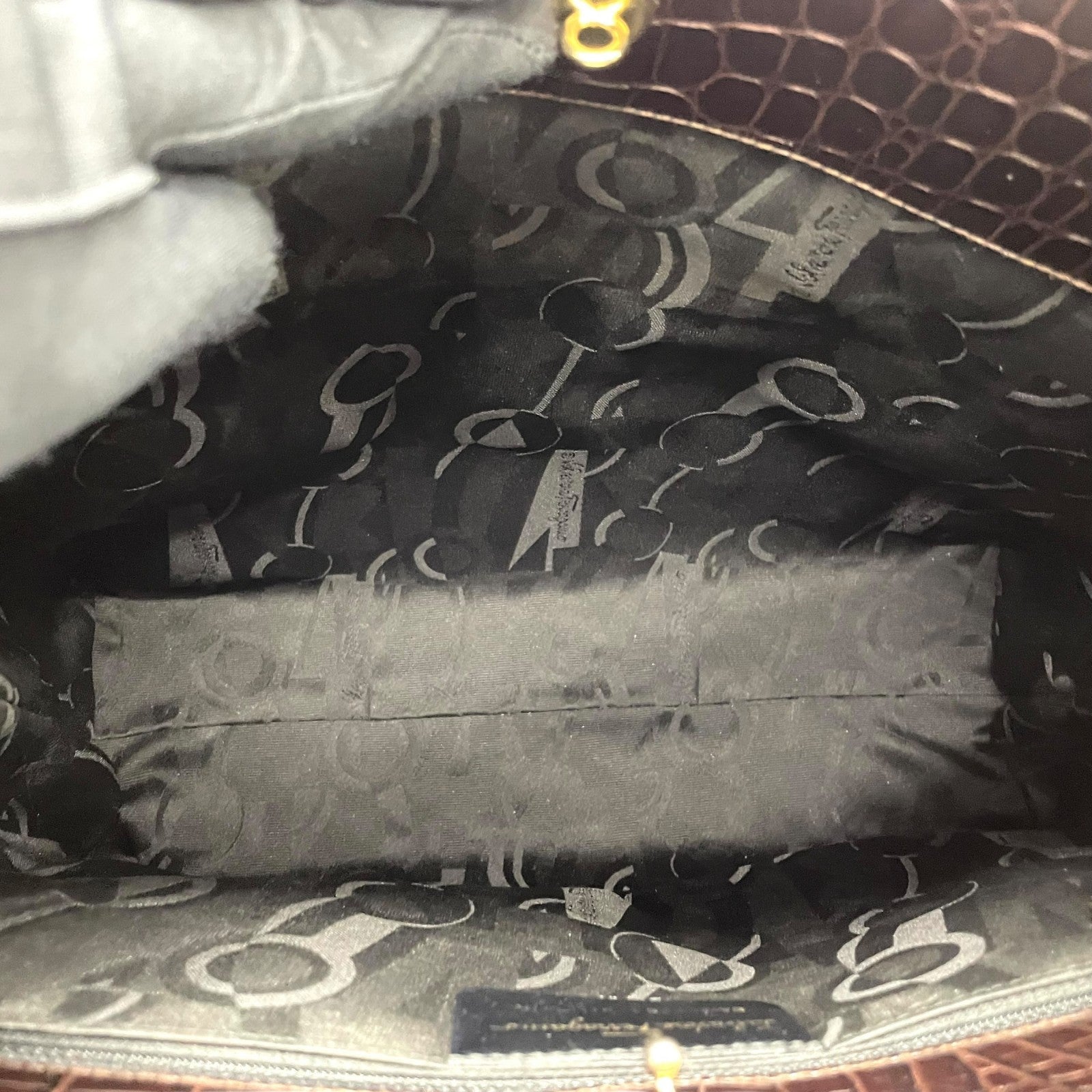 美品 Salvatore Ferragamo サルヴァトーレフェラガモ トートバッグ ハンドバッグ ヴァラ クロコ型押し 茶 ブラウン ゴールド金具 ワンショルダー 肩掛け可 ヴィンテージ レディース B