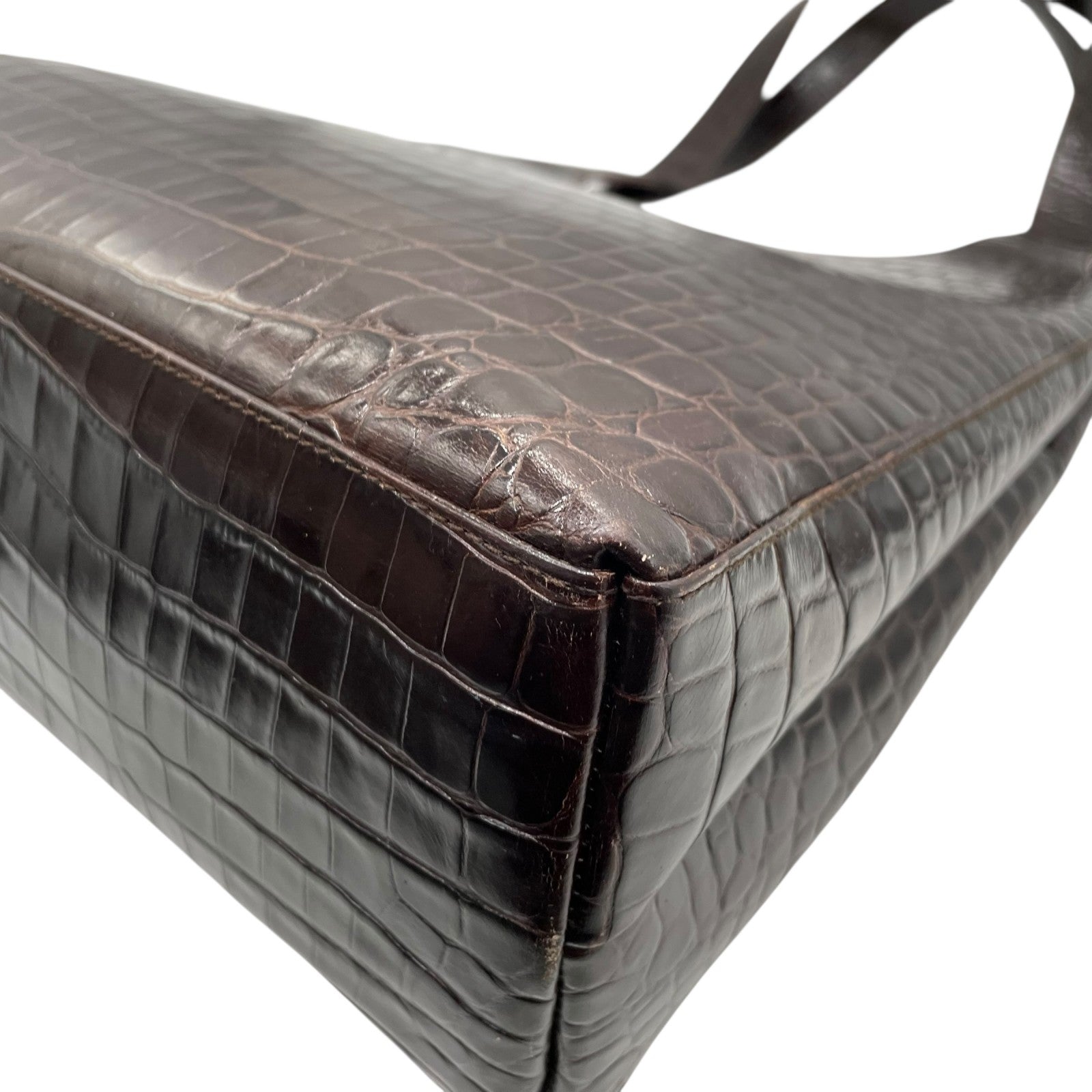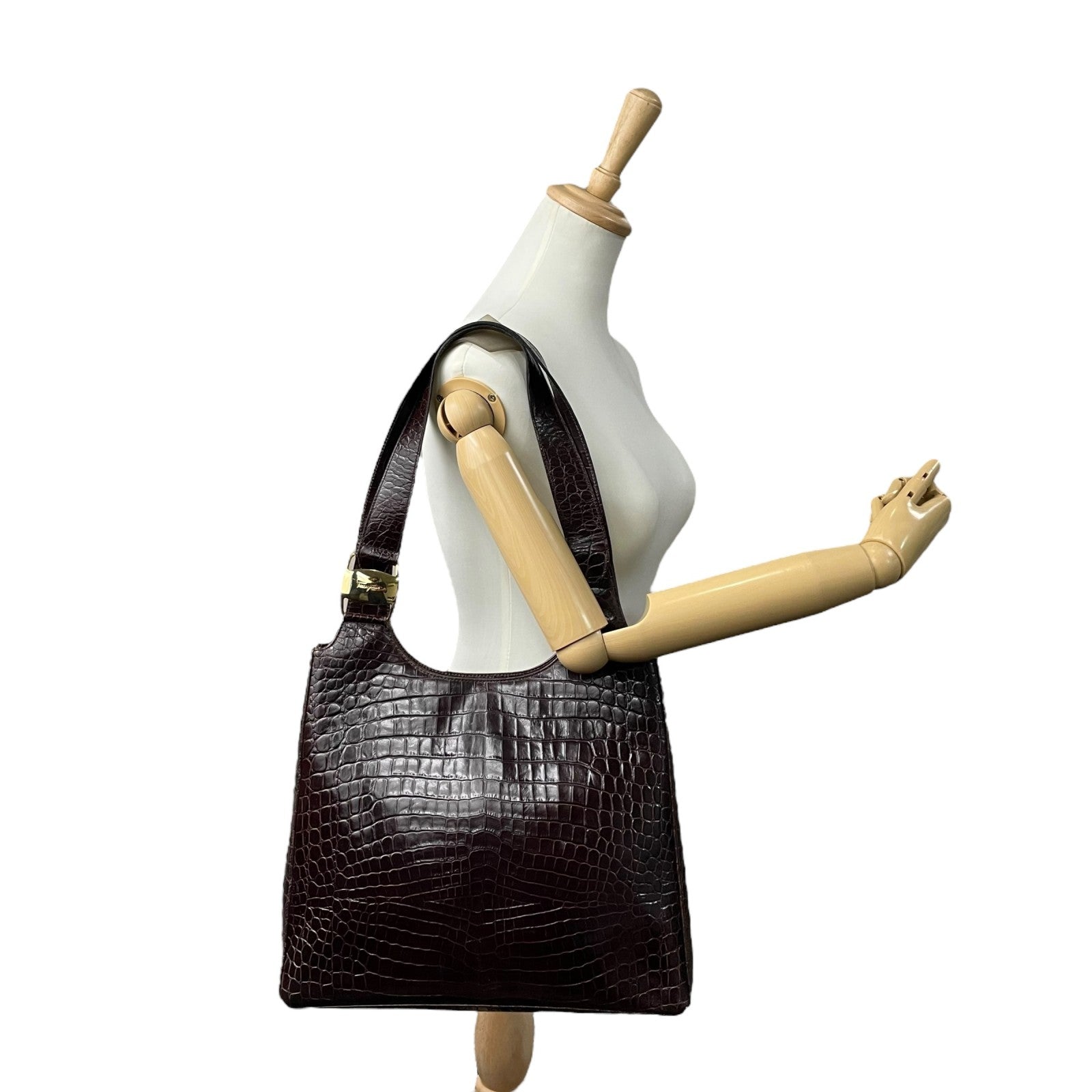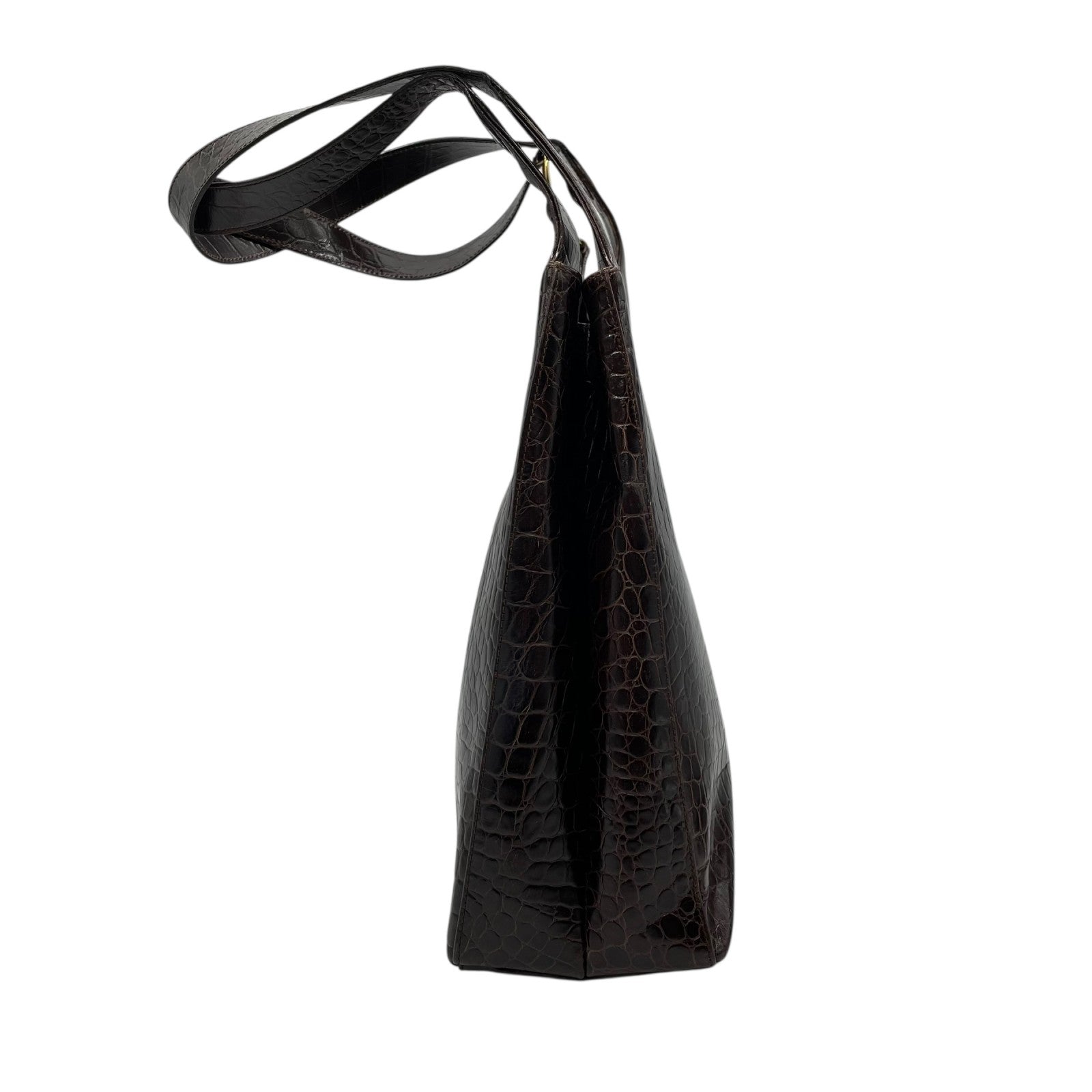 美品 Salvatore Ferragamo サルヴァトーレフェラガモ トートバッグ ハンドバッグ ヴァラ クロコ型押し 茶 ブラウン ゴールド金具 ワンショルダー 肩掛け可 ヴィンテージ レディース B