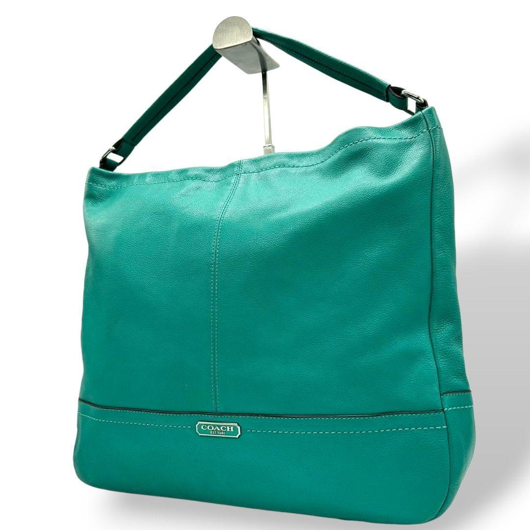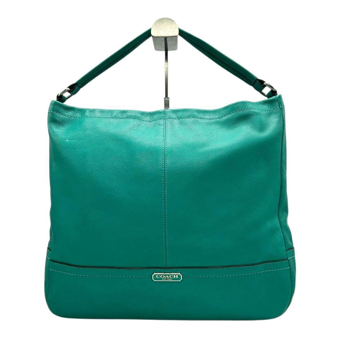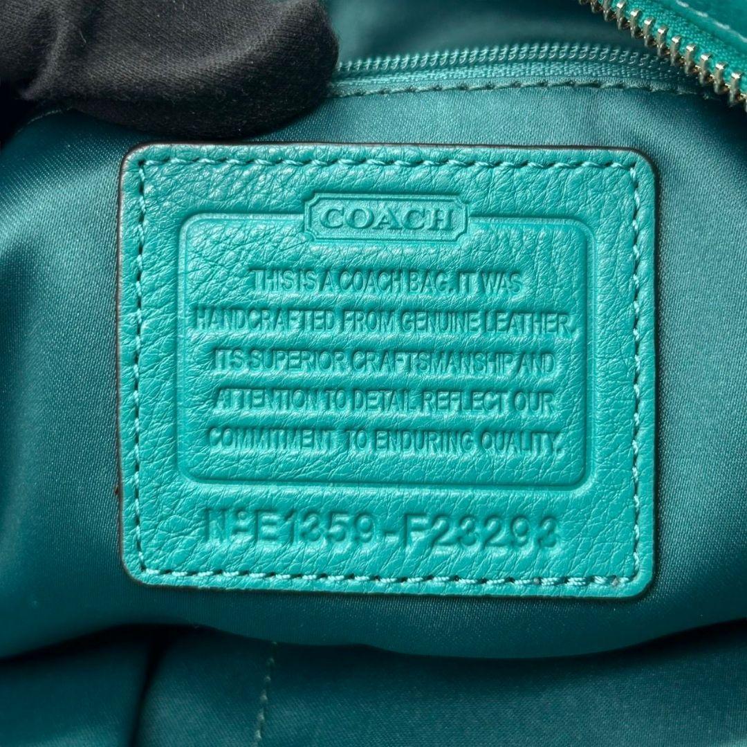 コーチ ハンドバッグ 緑 A4収納 自立可 ロゴプレート レザー トートバッグ 本革 グリーン シルバー金具 F28293
