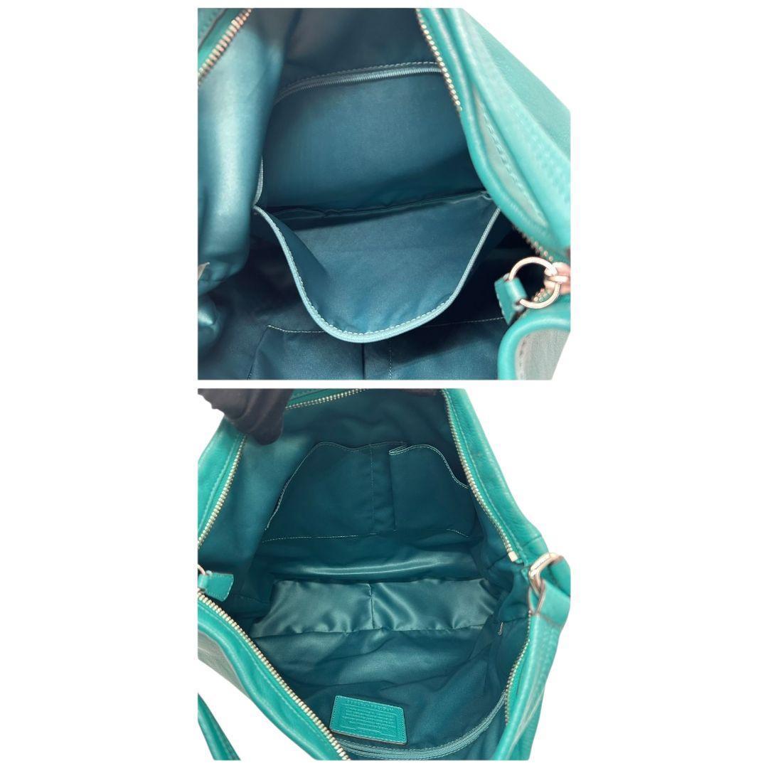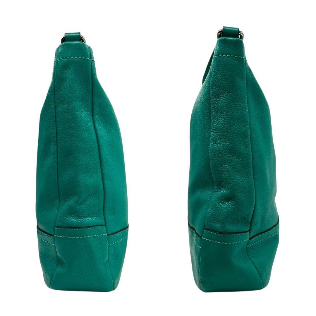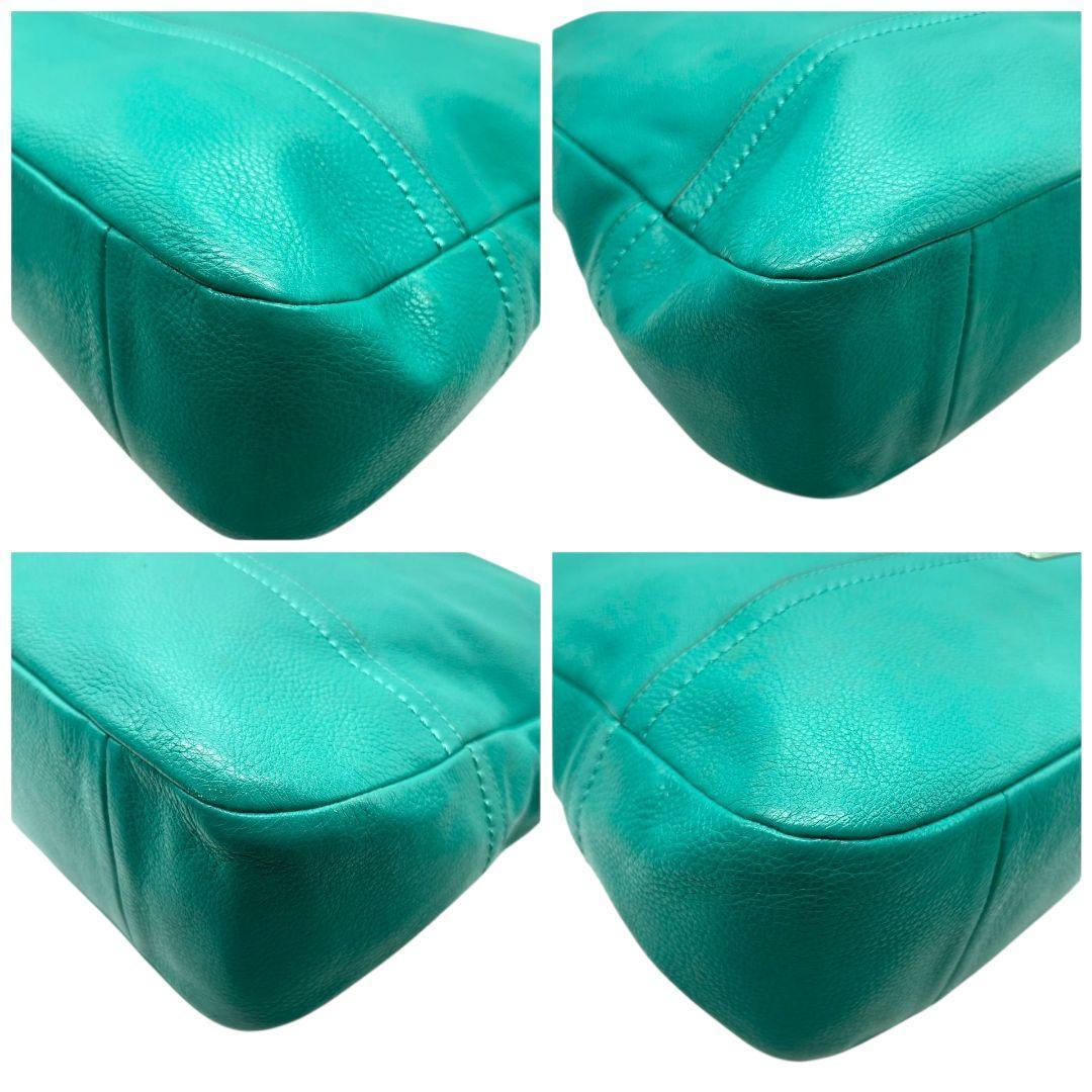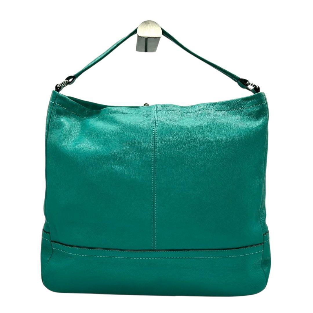 コーチ ハンドバッグ 緑 A4収納 自立可 ロゴプレート レザー トートバッグ 本革 グリーン シルバー金具 F28293