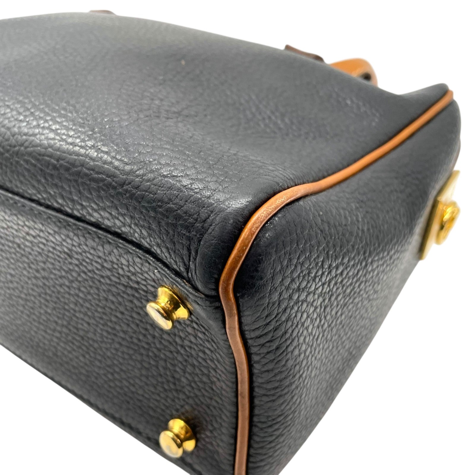 セリーヌ CELINE レザーハンドバッグ ブラック×ブラウン 黒 茶色 ゴールド金具 金金具 ボストンバッグ型 ヴィンテージ K5