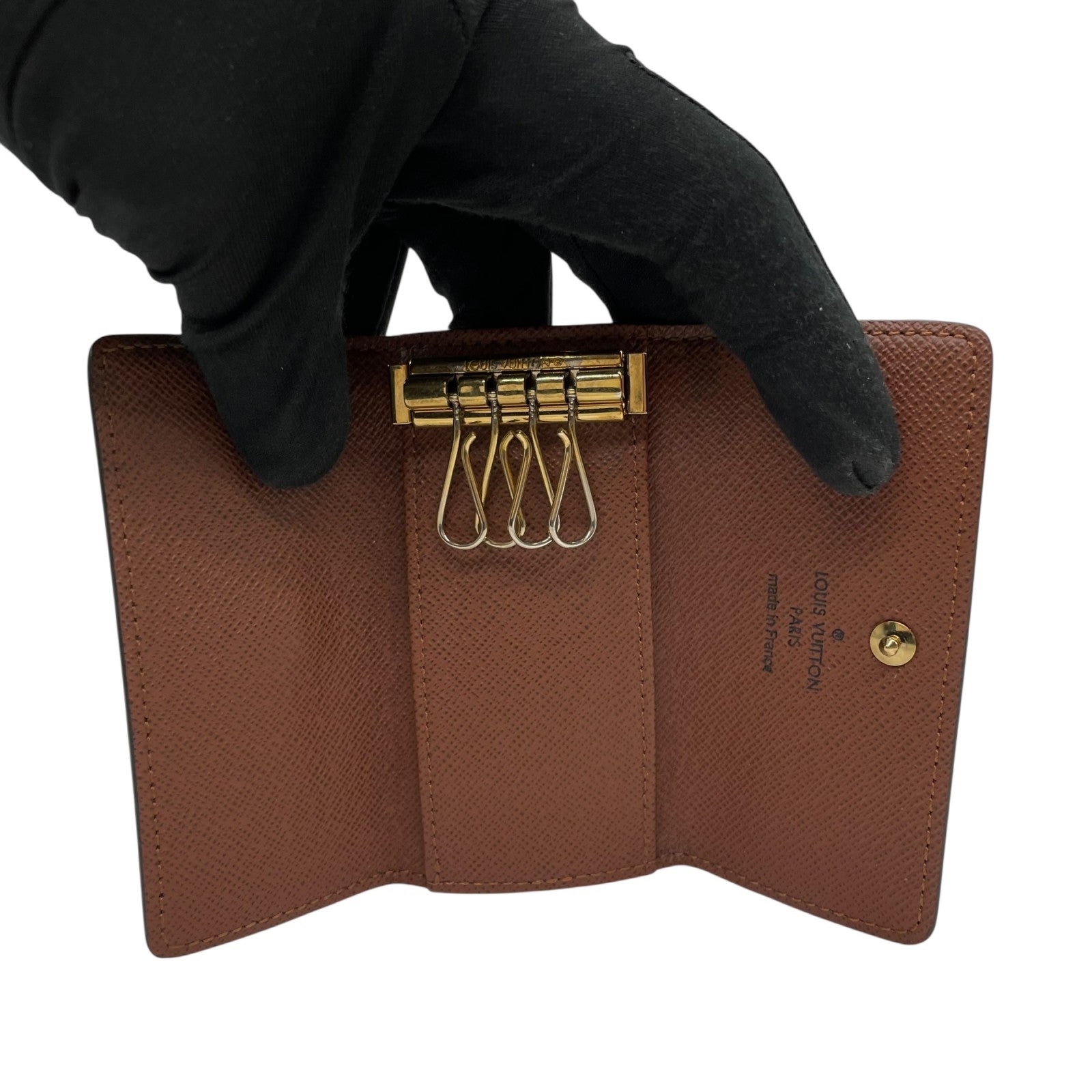 美品 LOUIS VUITTON ルイヴィトン モノグラム 三つ折り 4連キーケース ミュルティクレ4 M69517 茶 ブラウン PVC レザー ゴールド金具 レディース メンズ W3
